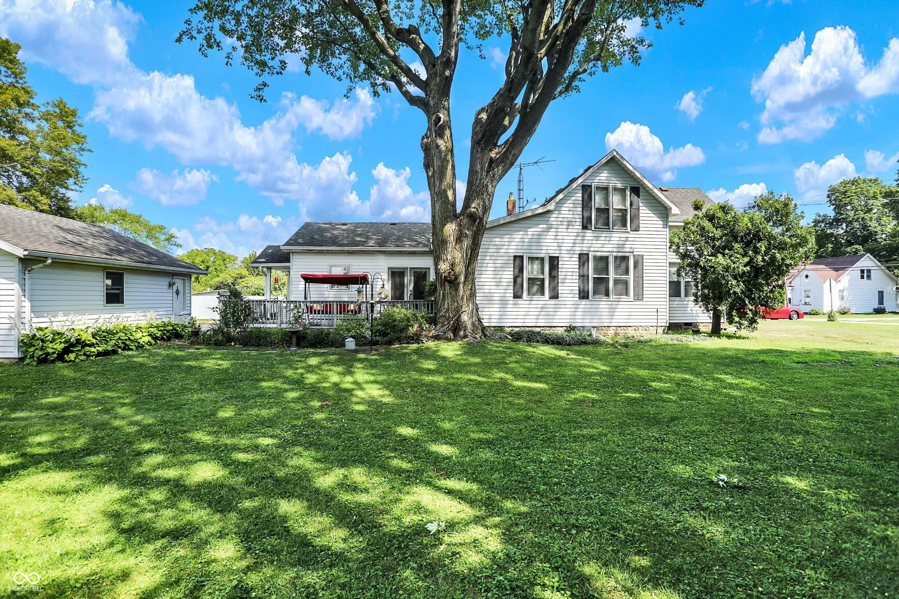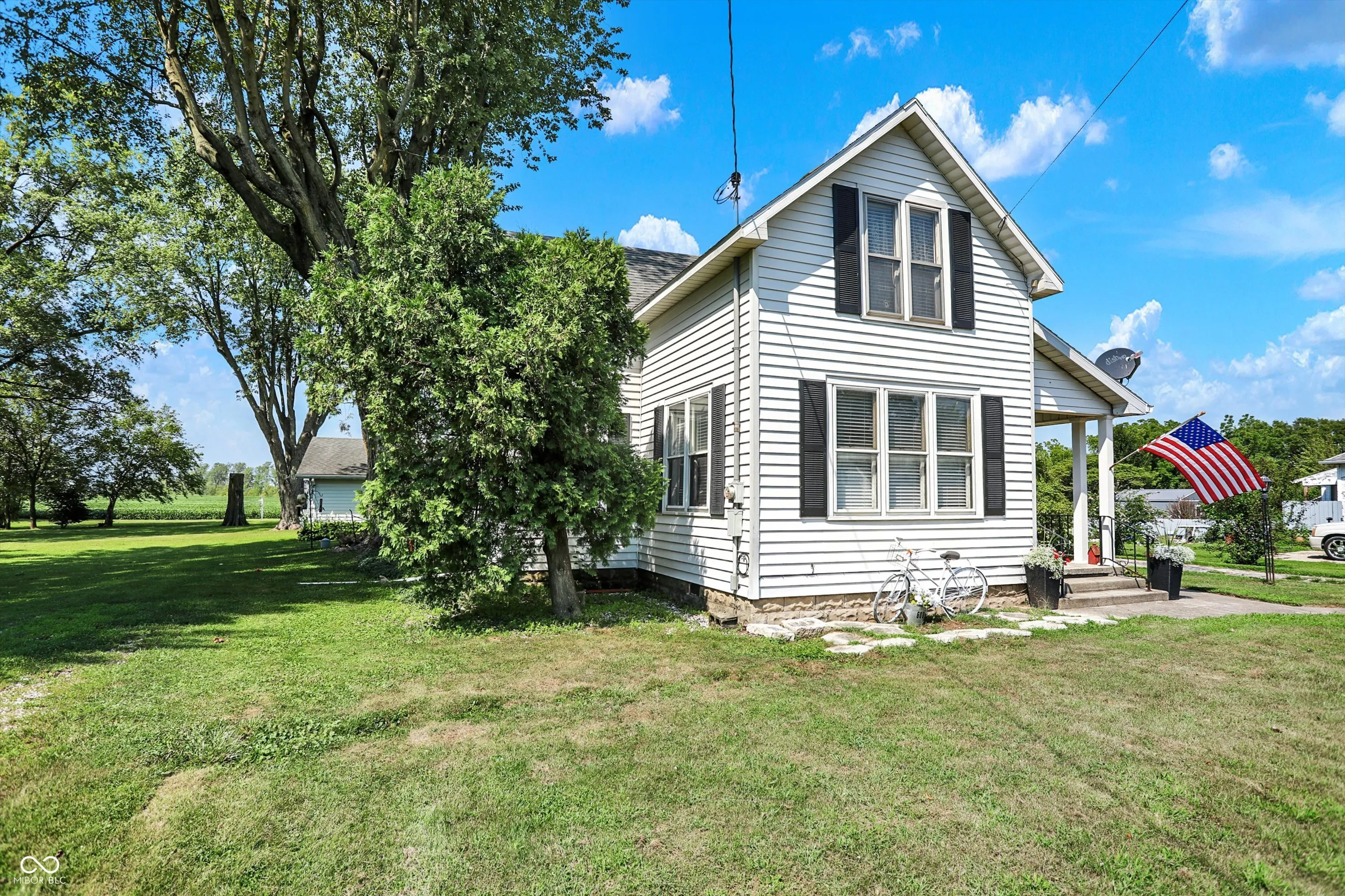 This charming rural retreat offers the perfect blend of peace and country living. Spanning nearly 2,000 square feet, this inviting home has three bedrooms, 1.5 bathrooms, and ample living space throughout. The property features two detached garages, providing plenty of room for storage and projects. Surrounded by serene landscapes and open skies, this home is a perfect escape from the commotion of daily life, offering tranquility and comfort in every corner. Enjoy the outside space on a wrap-around patio shaded by mature trees or on the covered front porch. Rough in for a tub/shower in the half bathroom upstairs.