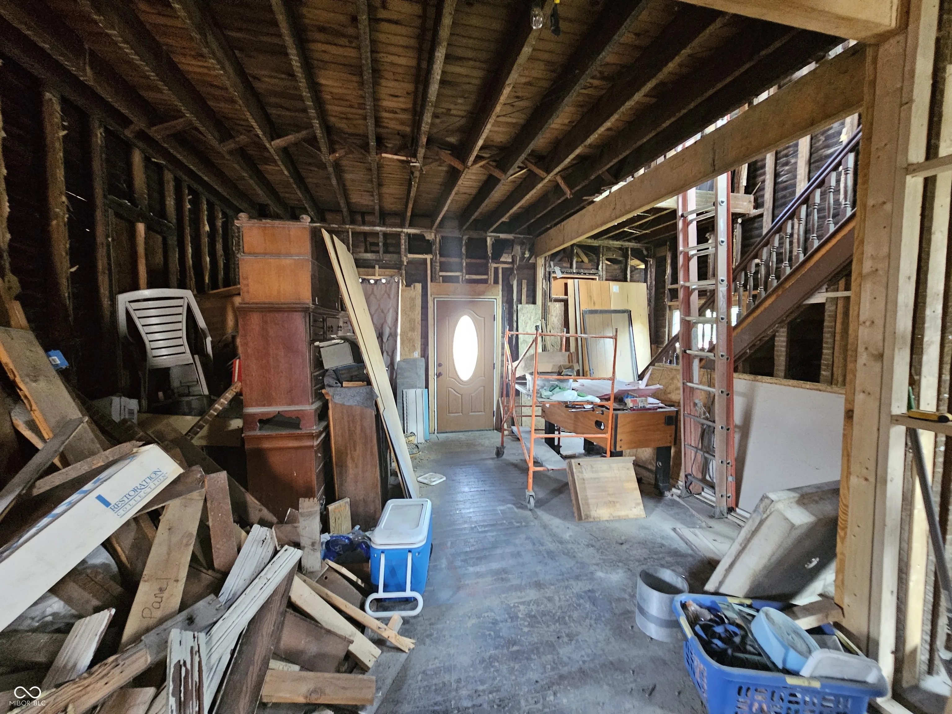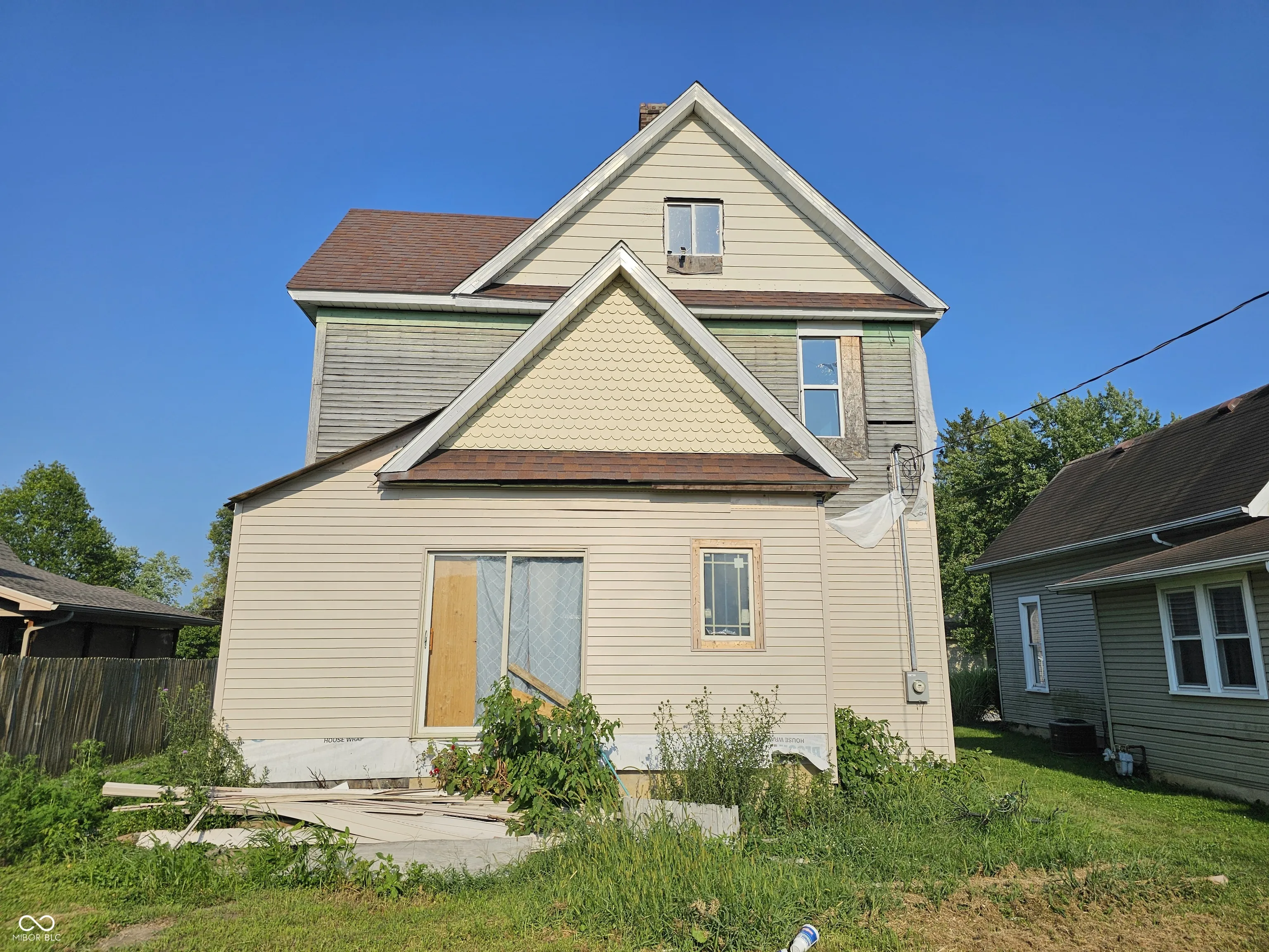 This fixer upper has a lot of potential. It is a 2 1.2 story 3 bedroom 1 bath home with room to add a 2nd floor bath to potentially be a 2 bath home. The home has a 2 year old roof, most of the windows are new, there is new 200 amp electrical service, and the vinyl siding is partially installed with the remaining vinyl to finish the exterior to be left with the home. A new floor has been added to create the third bedroom in the attic area. This home is an open palette for the finishing! It could be a great rehab project. The old lath and plaster has already been removed and the home interior is down to the studs.