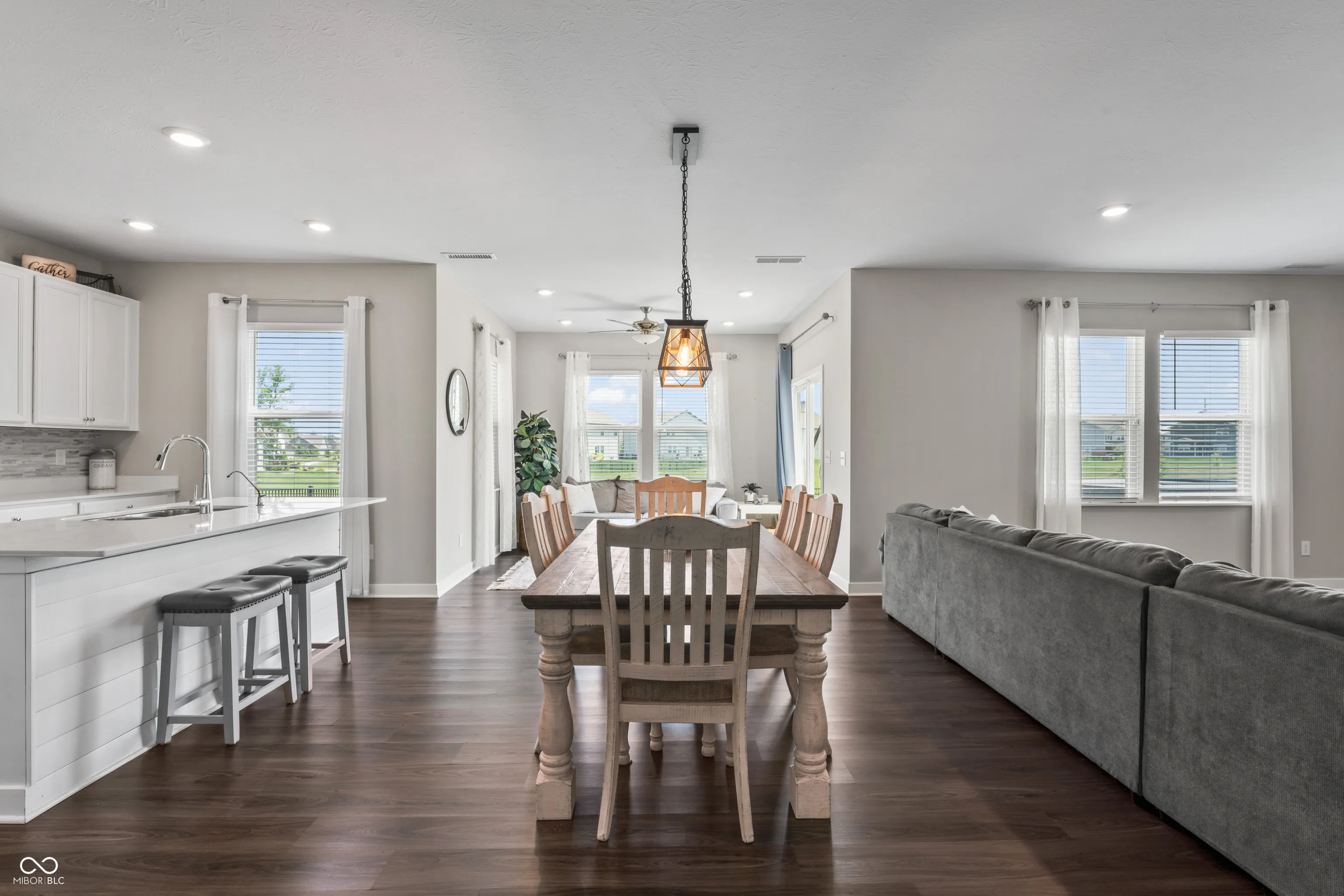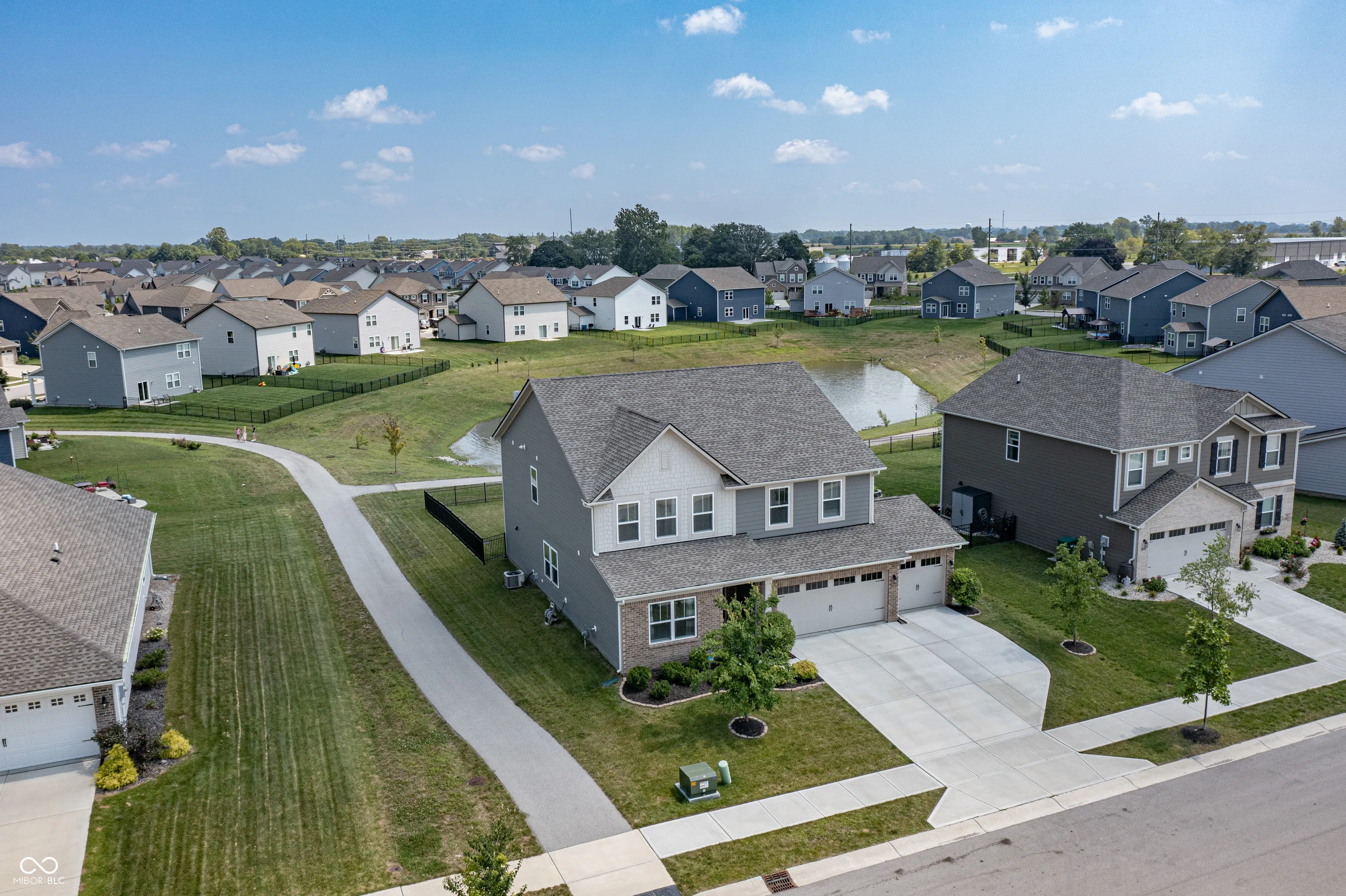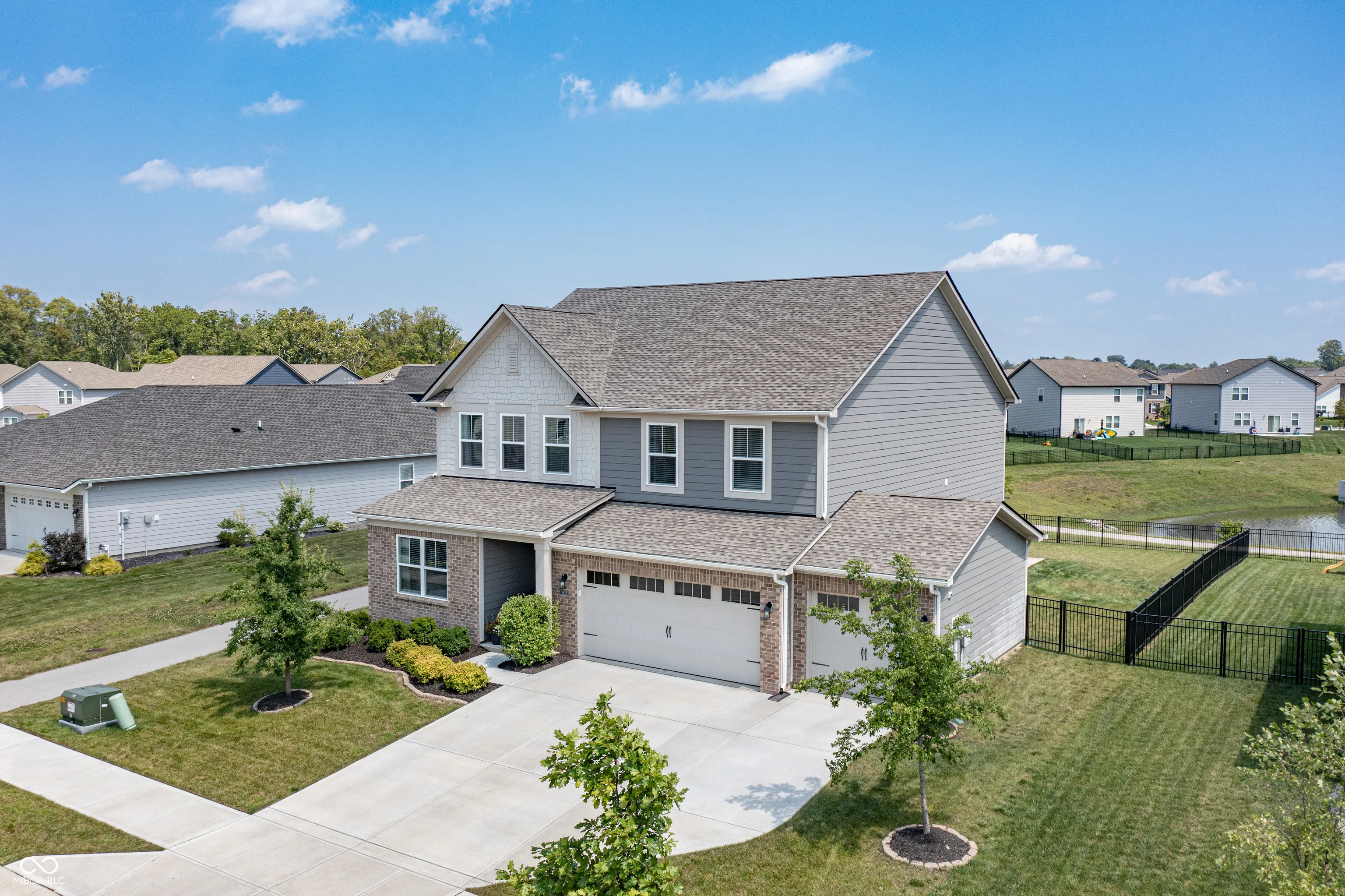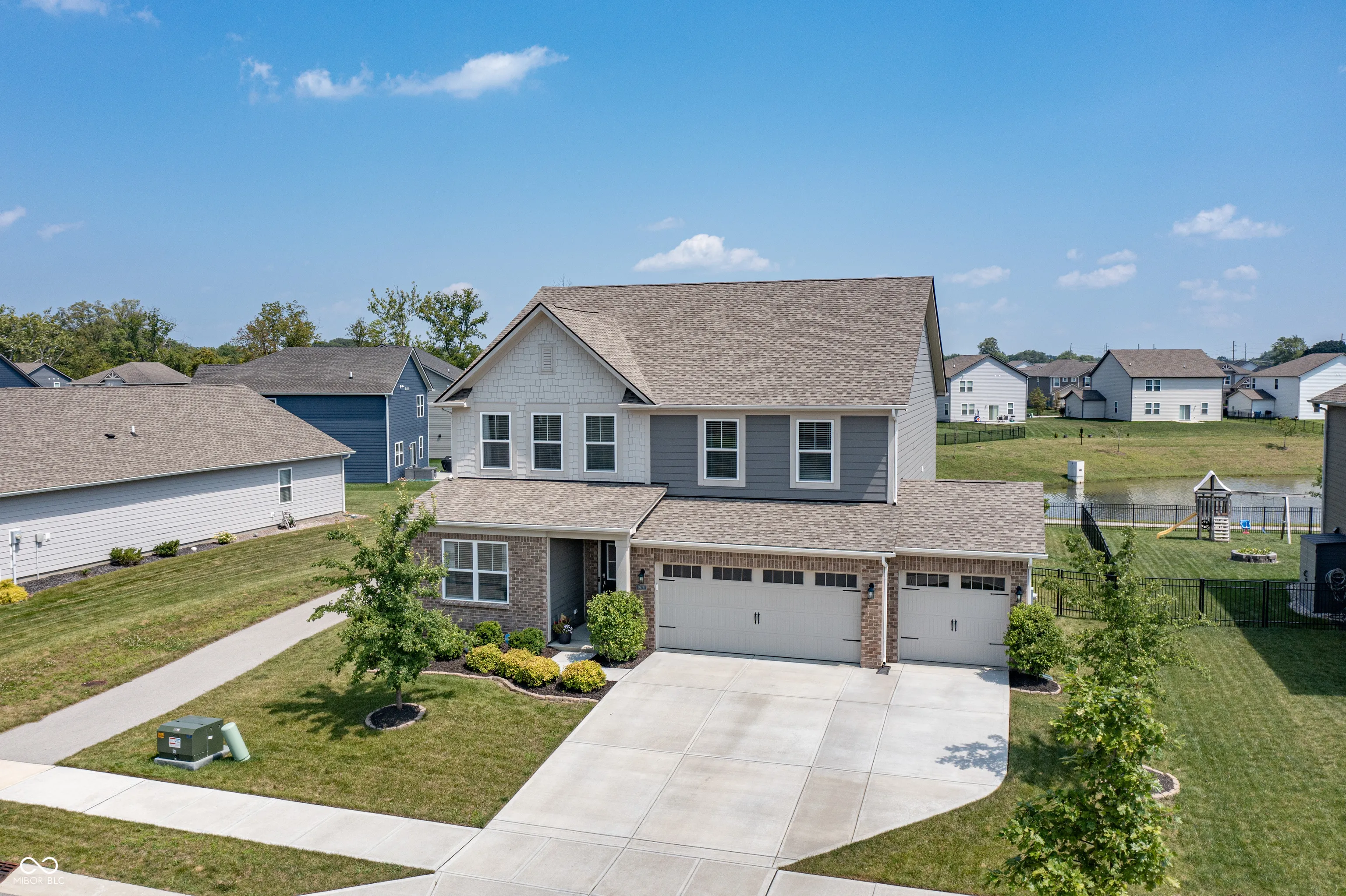 A complete show-stopper. This 5 bedroom home features 3.5 bathrooms, a sunroom, fireplace, open floor plan, formal dining, eat-in kitchen, 3 car garage, fully fenced, and walking distance to Flat Fork Creek Park. Over 3,200 square feet impeccably laid out to enjoy every room in the home. Entering the open foyer you’ll notice the in-law suite equipped with it’s own full bathroom. Down the hall you’ll pass the flex space/formal dining area, before you reach the massive open kitchen and great room – which features an added sunroom. This floorplan includes so many upgrades, you couldn’t possibly price out a better option. Upstairs includes not only 4 bedrooms, but an included loft for extra space and lounging. Outside is a poured concrete patio, fully fenced backyard, and is draped by a huge pond. A peaceful background to enjoy those backyard getaways. This home is built on a premium lot, and it will not disappoint. Close to all the amenities Fishers has to offer – shopping, parks, trails, schools, Geist Waterfront park, restaurants, and more.