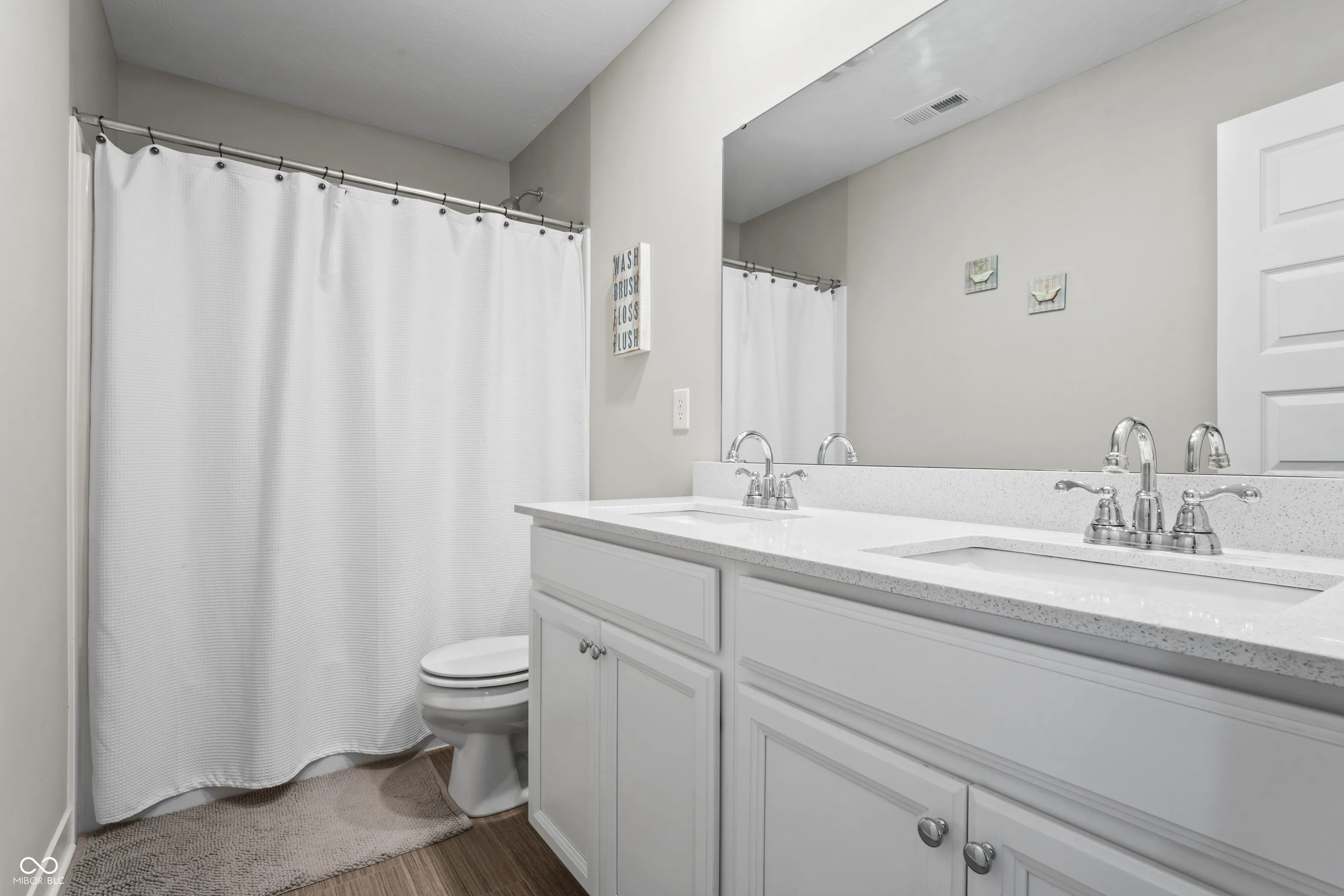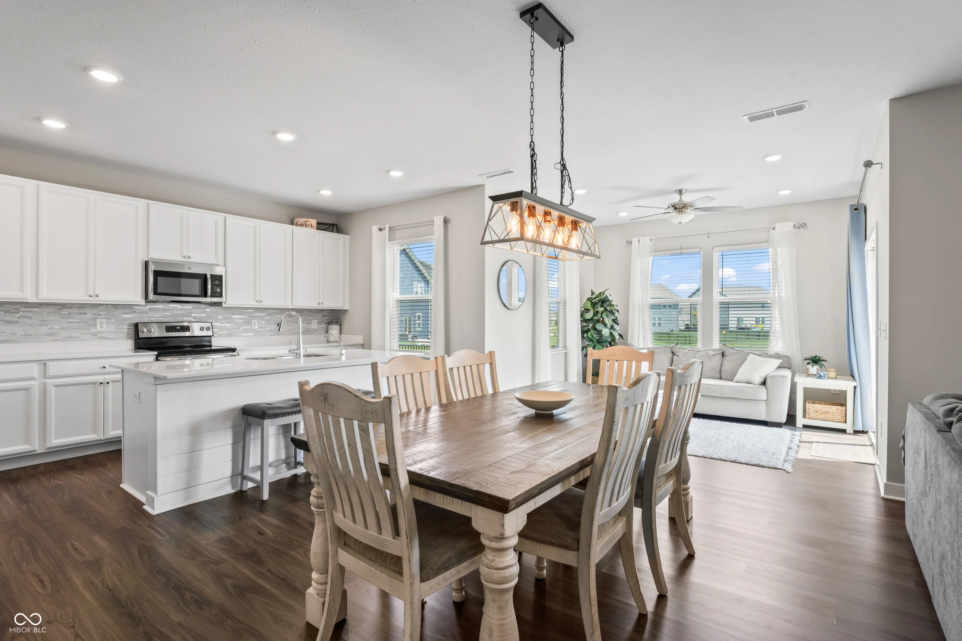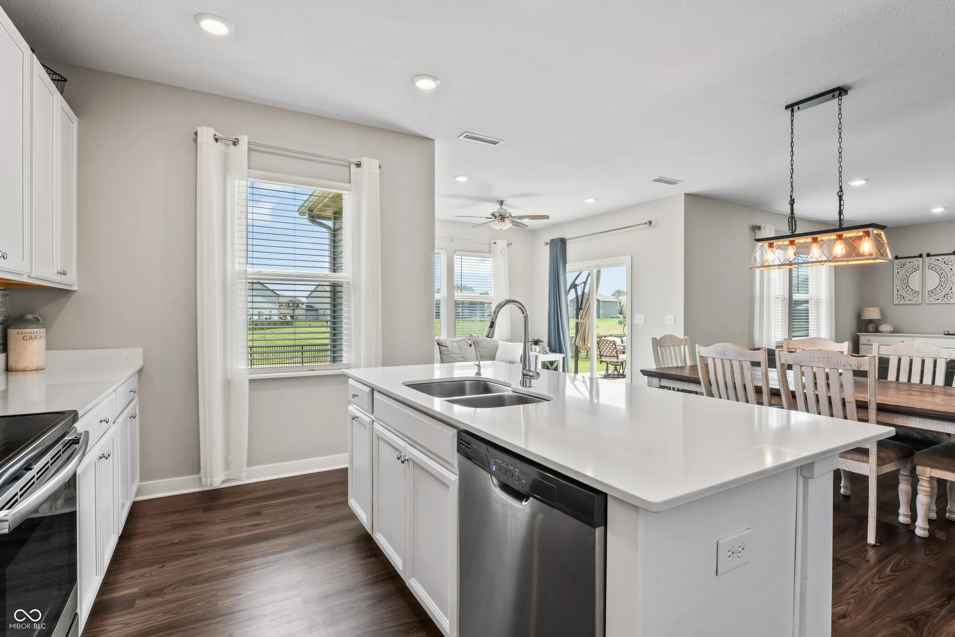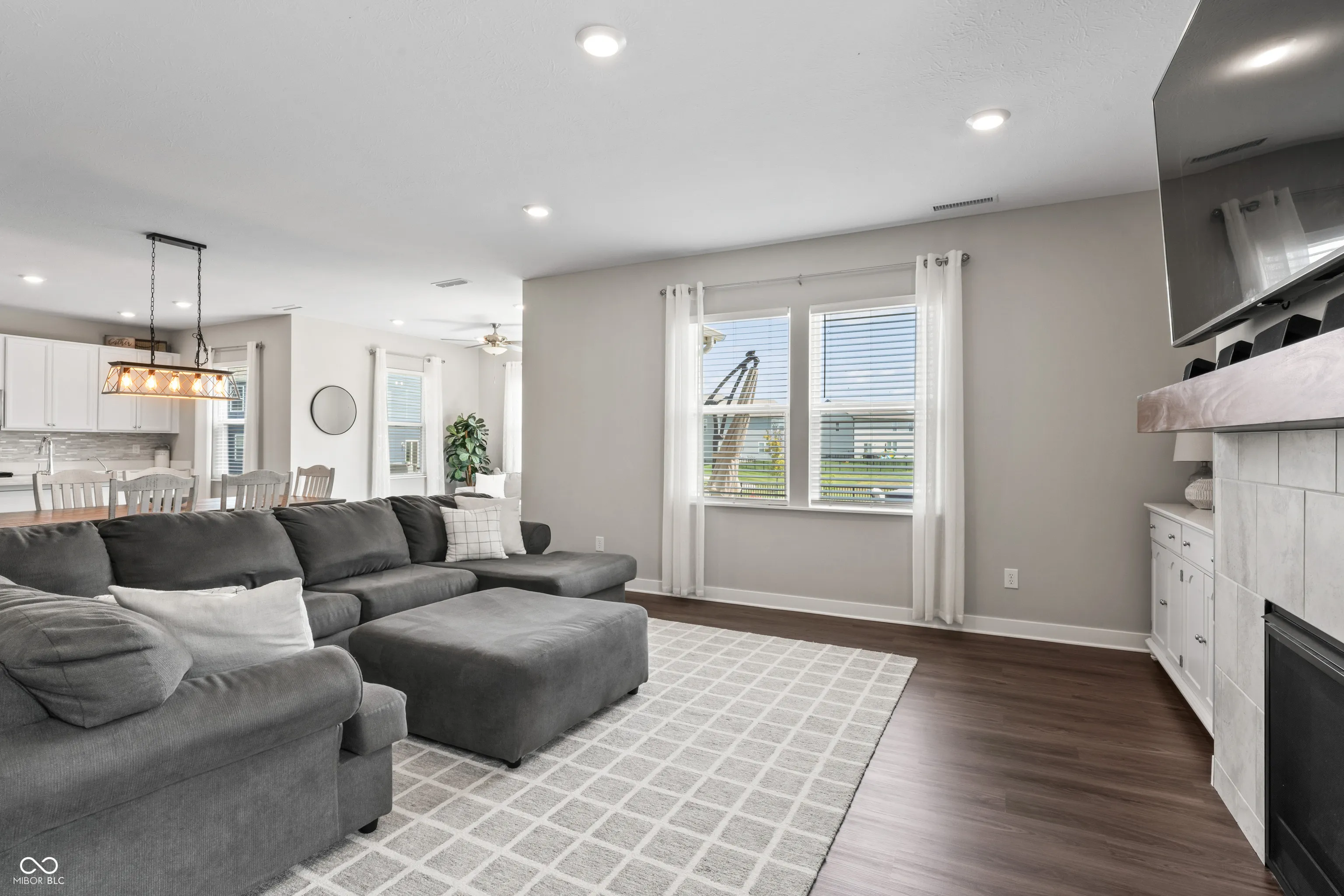 A complete show-stopper. This 5 bedroom home features 3.5 bathrooms, a sunroom, fireplace, open floor plan, formal dining, eat-in kitchen, 3 car garage, fully fenced, and walking distance to Flat Fork Creek Park. Over 3,200 square feet impeccably laid out to enjoy every room in the home. Entering the open foyer you’ll notice the in-law suite equipped with it’s own full bathroom. Down the hall you’ll pass the flex space/formal dining area, before you reach the massive open kitchen and great room – which features an added sunroom. This floorplan includes so many upgrades, you couldn’t possibly price out a better option. Upstairs includes not only 4 bedrooms, but an included loft for extra space and lounging. Outside is a poured concrete patio, fully fenced backyard, and is draped by a huge pond. A peaceful background to enjoy those backyard getaways. This home is built on a premium lot, and it will not disappoint. Close to all the amenities Fishers has to offer – shopping, parks, trails, schools, Geist Waterfront park, restaurants, and more.