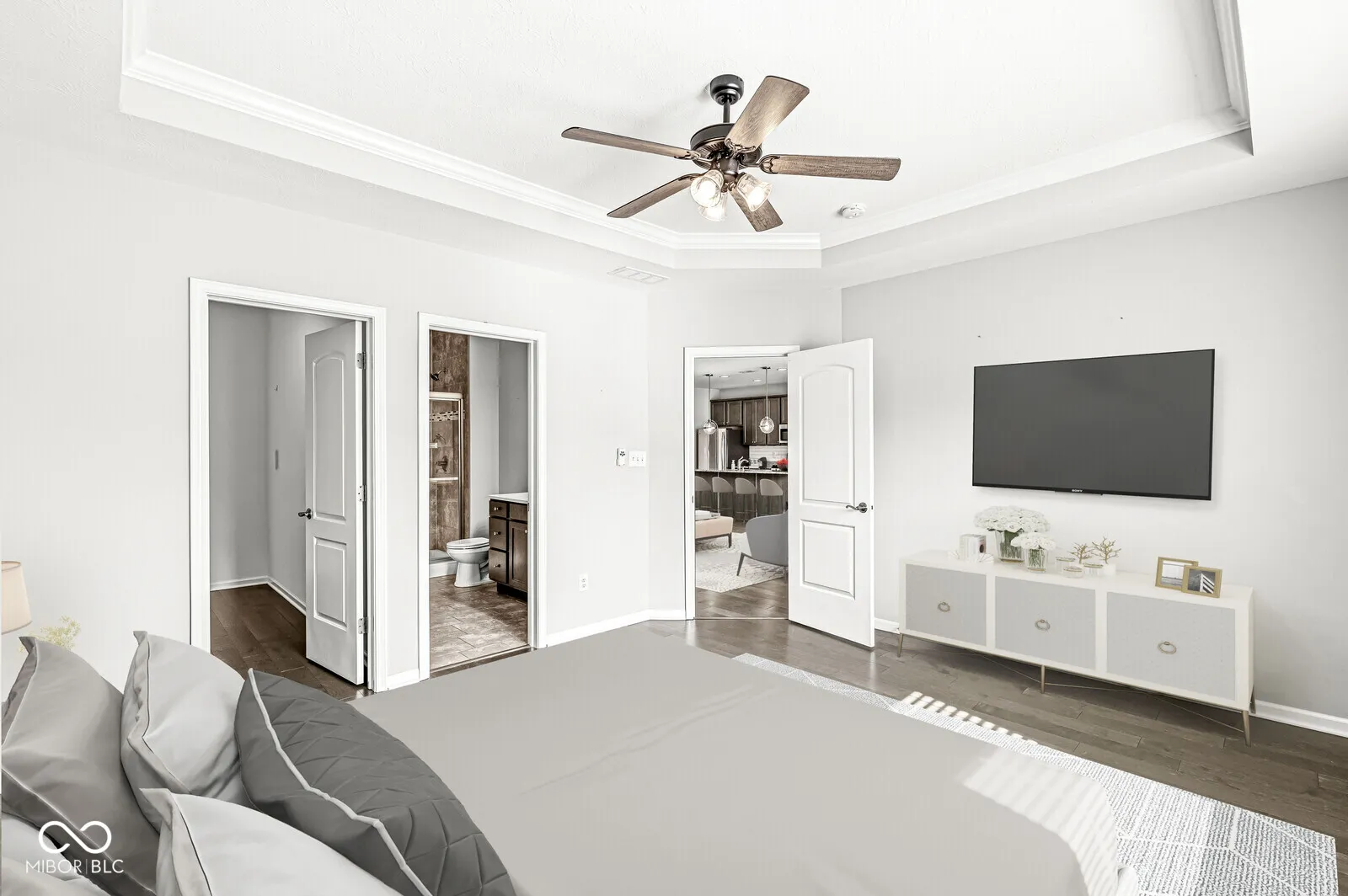 Beautiful like-new home with 2BR/2BA plus additional Den located in desirable Waterman Crossing. Open floor plan features 9′ ceilings & lots of sunlight, plus a sunroom just off of the kitchen and breakfast area. Kitchen features large island, stainless steel appl, granite tops, gas range, pantry, tile backsplash & plenty of cabinet space. Custom faux wood blinds cover every window for privacy. Primary suite includes tray ceiling w/crown molding, walk-in closet, walk-in tile shower & window seat. Spacious finished garage with bump out. Keep life low maintenance with lawn care & snow removal included!
