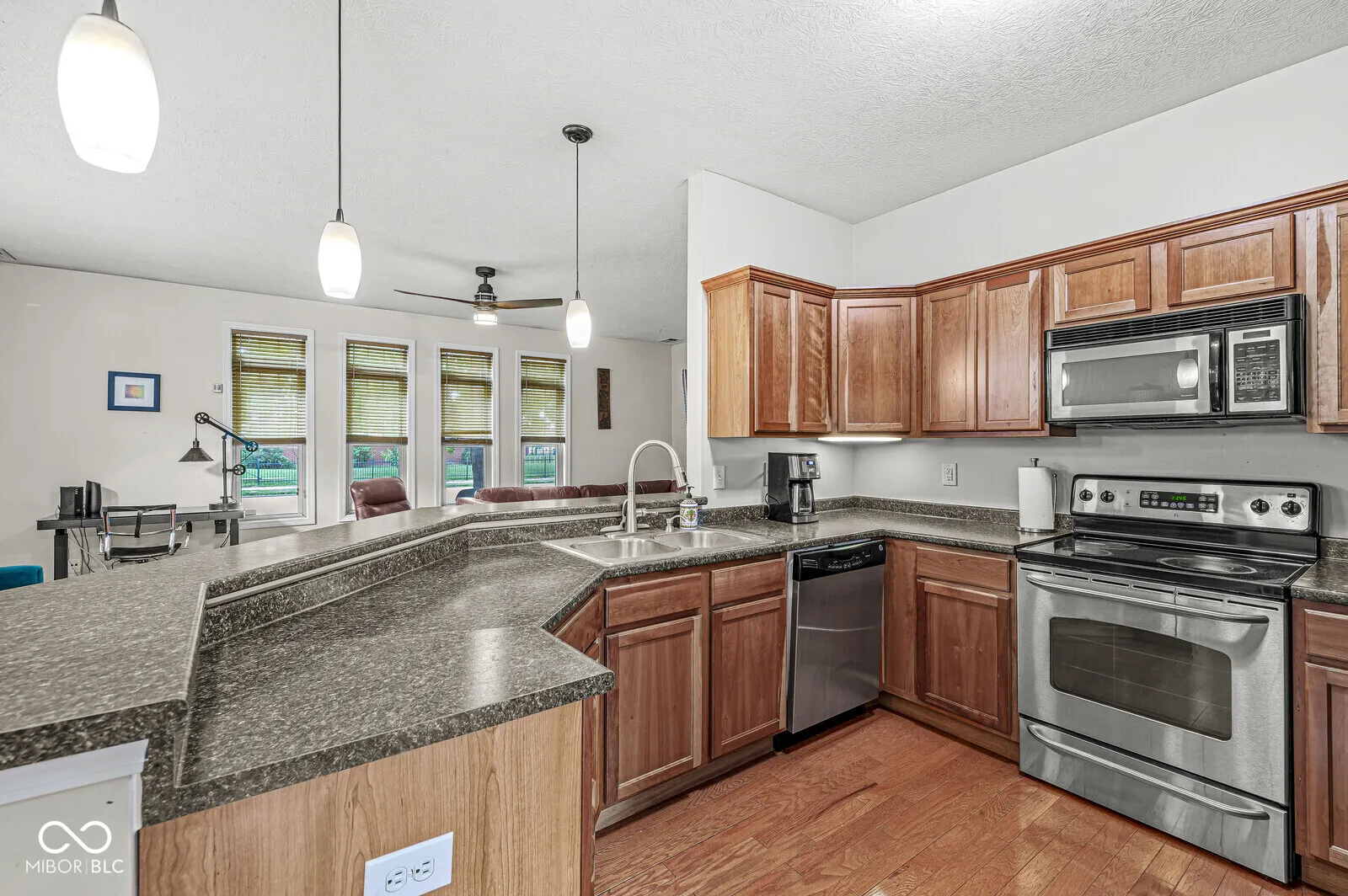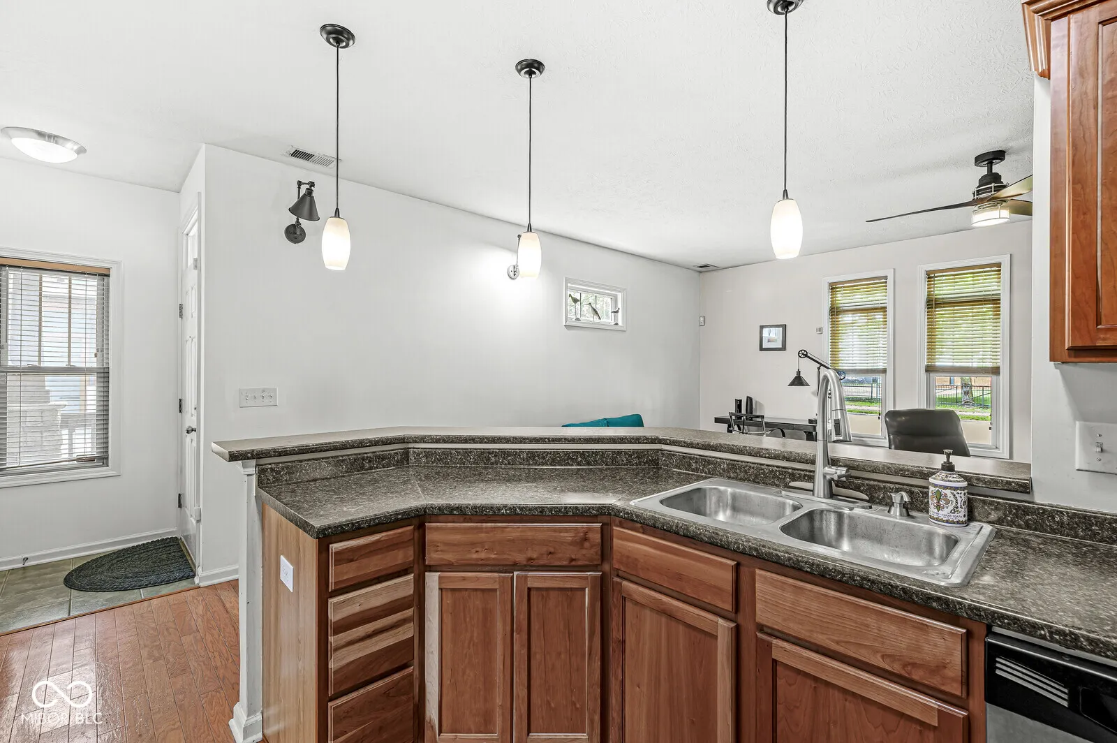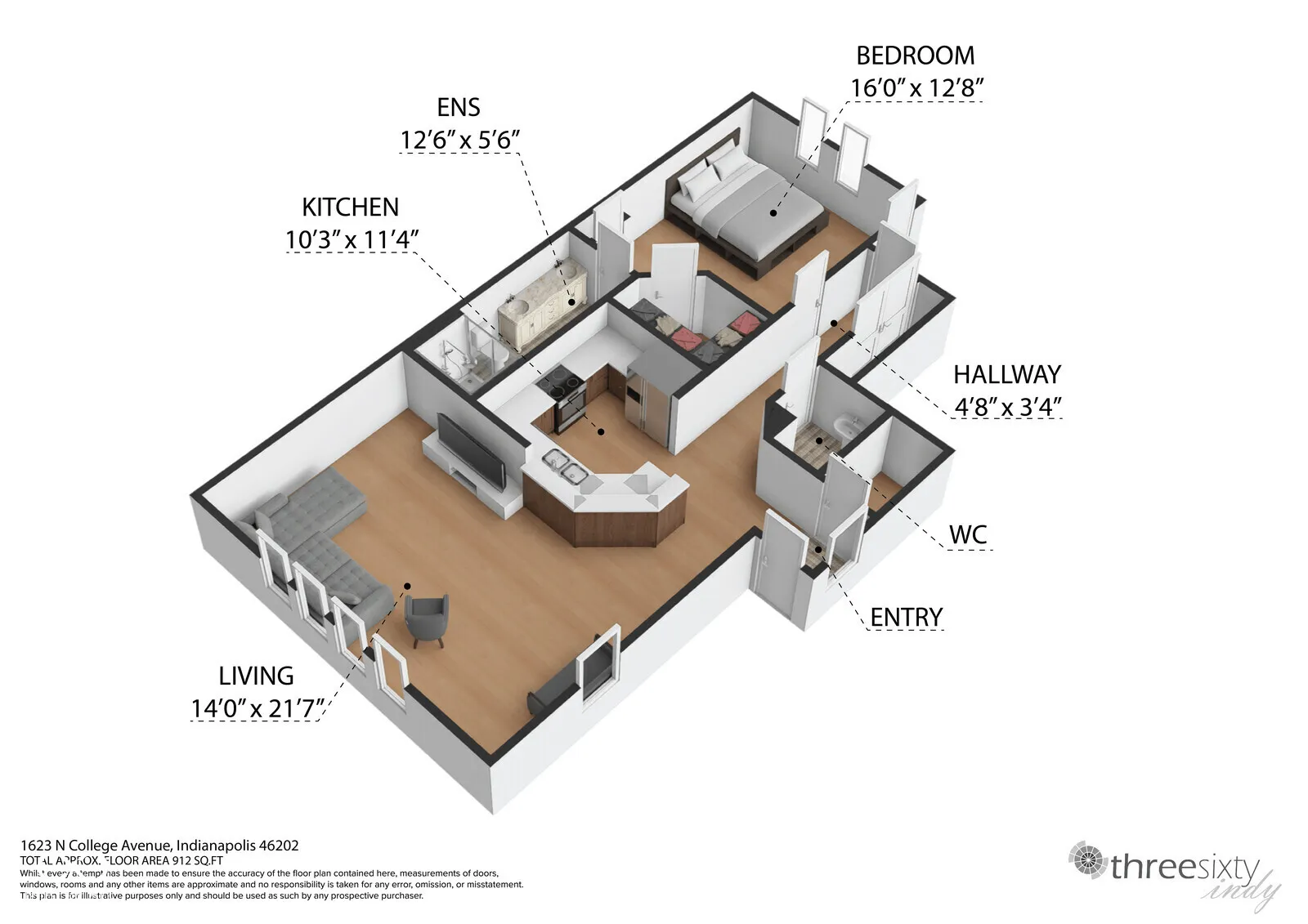 Great condo near Old Northside! 1-bedroom, 1.5-bathroom main level, end unit at Sixteen on College. Lots of natural light throughout the open living room and kitchen/dining combo. Stainless steel appliances, breakfast bar, hall laundry closet, and gleaming hardwoods throughout. The primary bedroom has an ensuite with dual vanities and large walk-in closet. Relaxing fenced patio area (accessible from the hallway or bedroom). 1car garage and reserved parking spot for added convenience. Close to the Monon Trail, restaurants, and shopping – convenient location! Short term lease is available at increased rate.