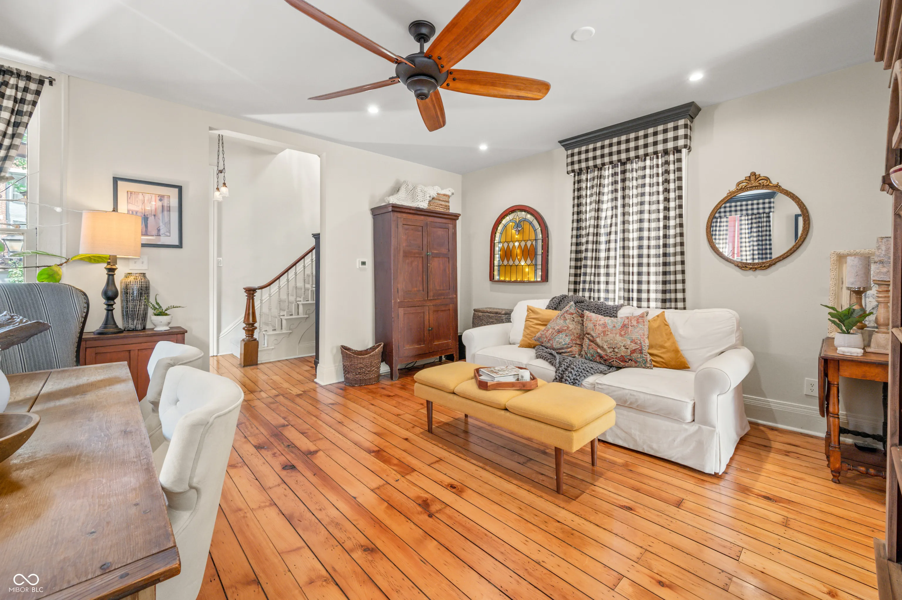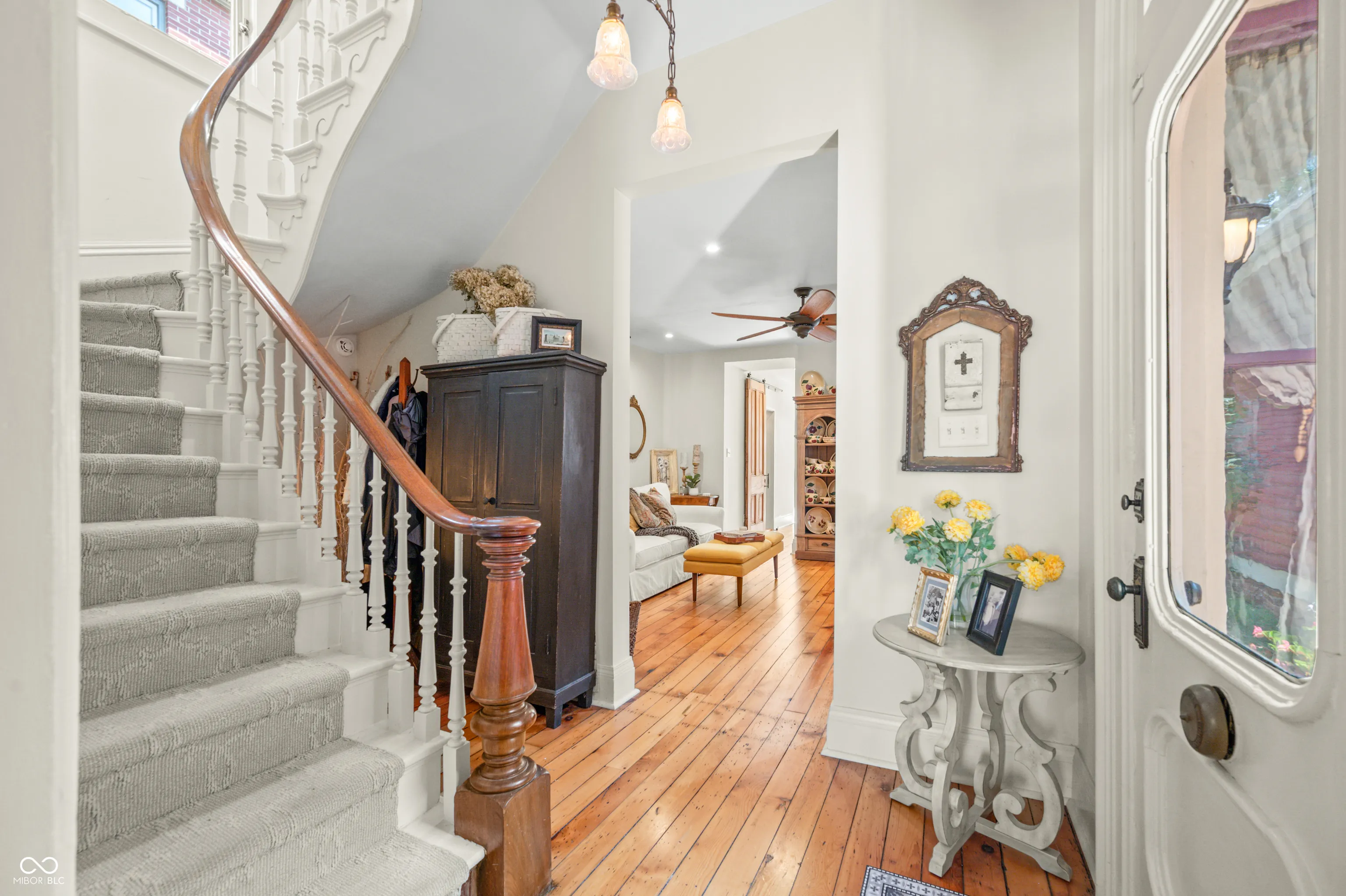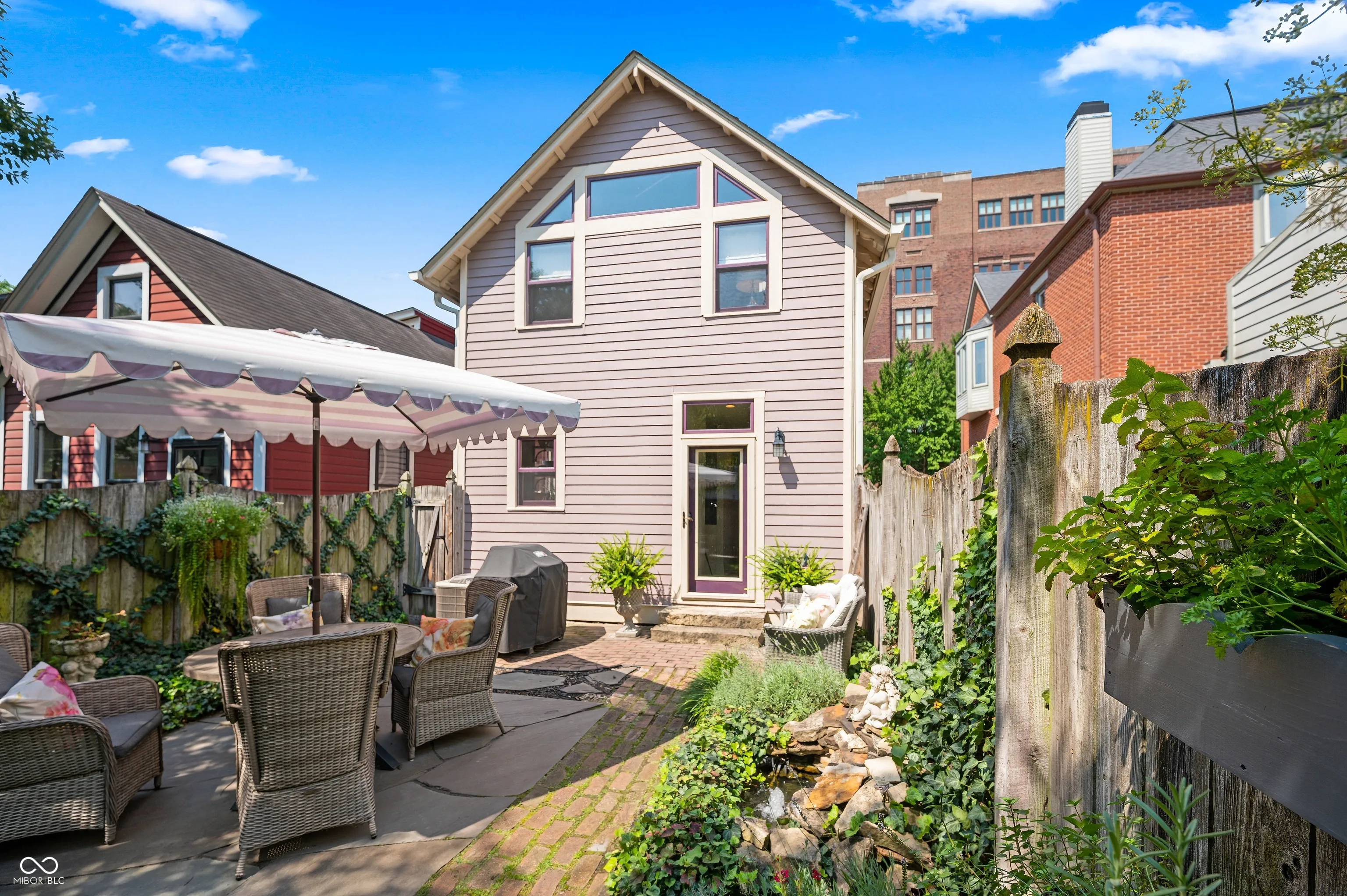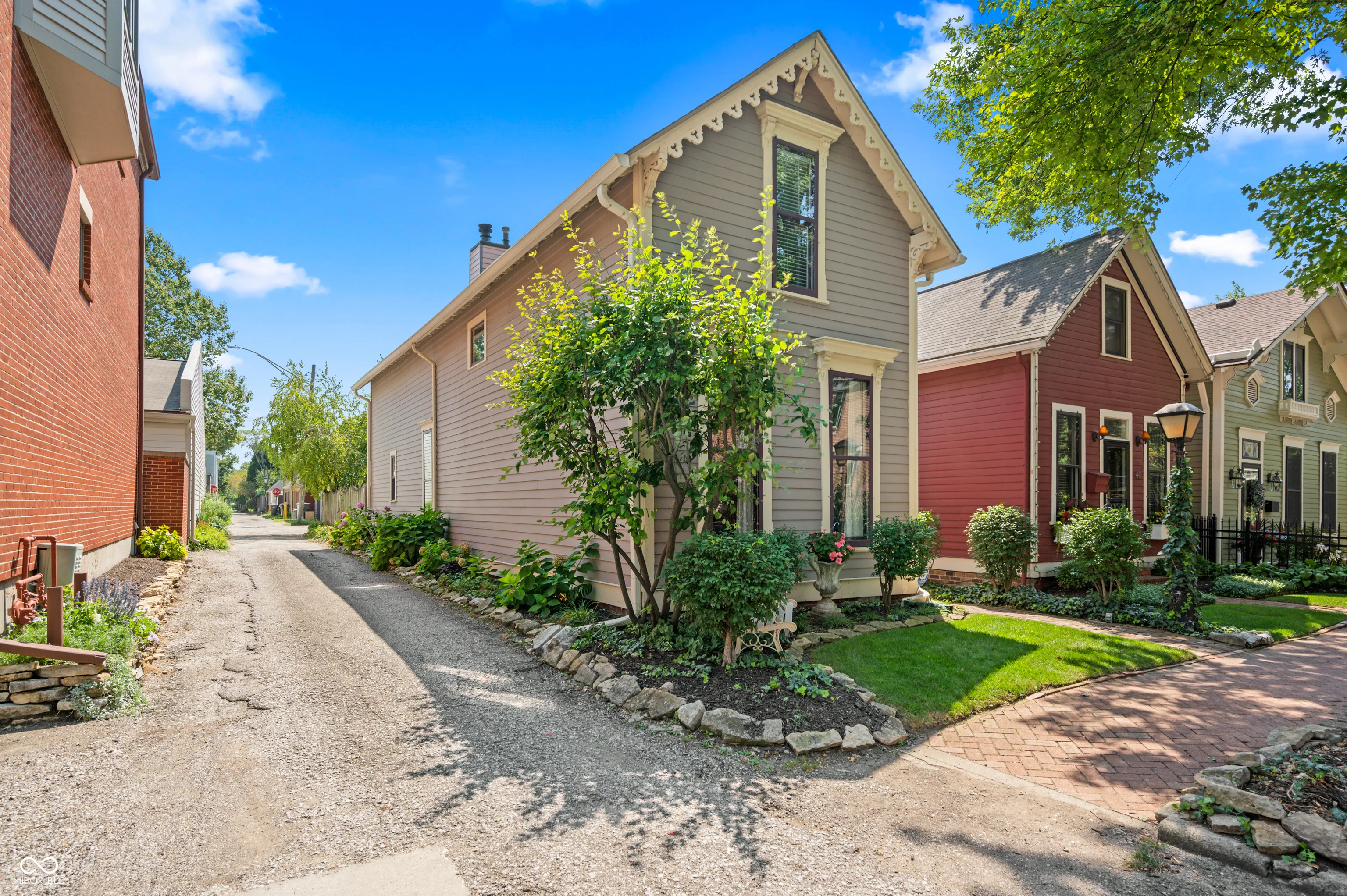 Discover the timeless elegance of this completely renovated Victorian home, built in 1919 and located in the heart of Lockerbie Square, Indianapolis. This vibrant neighborhood, known for its blend of residential, commercial, religious, and educational structures from circa 1855-1930, was the first historic district preservation area in Indianapolis, with revitalization efforts dating back to the 1960s. Listed in the National Register of Historic Places, this area offers an unparalleled blend of history and modern convenience. This stunning home beautifully maintains its historic charm while providing all the modern amenities you desire. The original hardwood floors grace the main level, complemented by the exquisite original crown molding. The fully redone kitchen boasts top-of-the-line appliances, custom cabinetry, and a breakfast bar with granite countertops, perfect for culinary enthusiasts. A welcoming spiral staircase leads you to the second floor, where you’ll find two large bedrooms and a versatile loft area, ideal for a nursery or office space. The main bathroom is a luxurious retreat featuring a double vanity, skylights, a clawfoot tub, and a walk-in tile shower. Step outside to your private English garden, completely fenced and featuring two serene water features. The property includes two parking spaces behind the home, allowing plenty of room for a two-car garage to be built. Enjoy the convenience of being just a short walk from the charming coffee shops and restaurants on Mass Ave. There’s no better downtown location to call home.