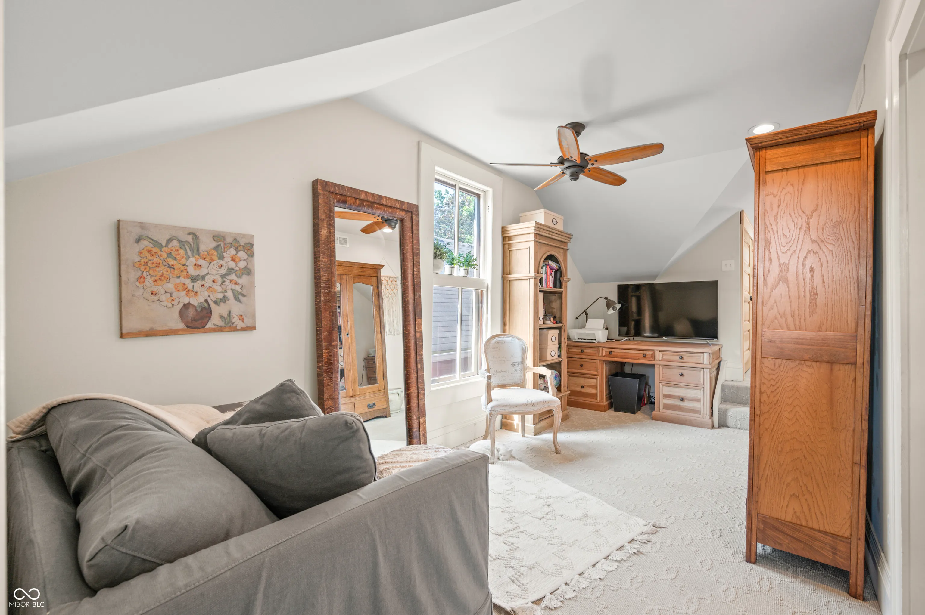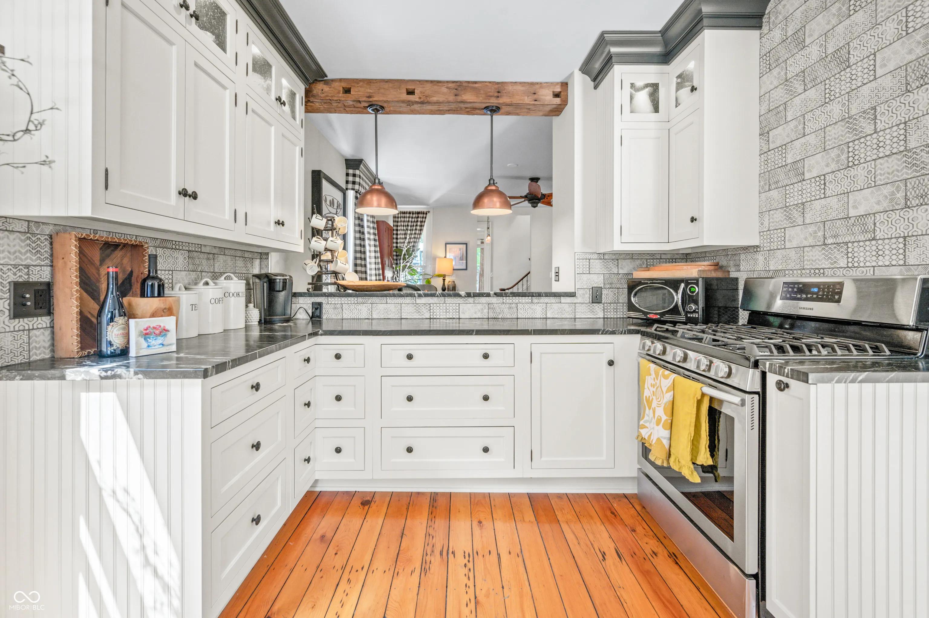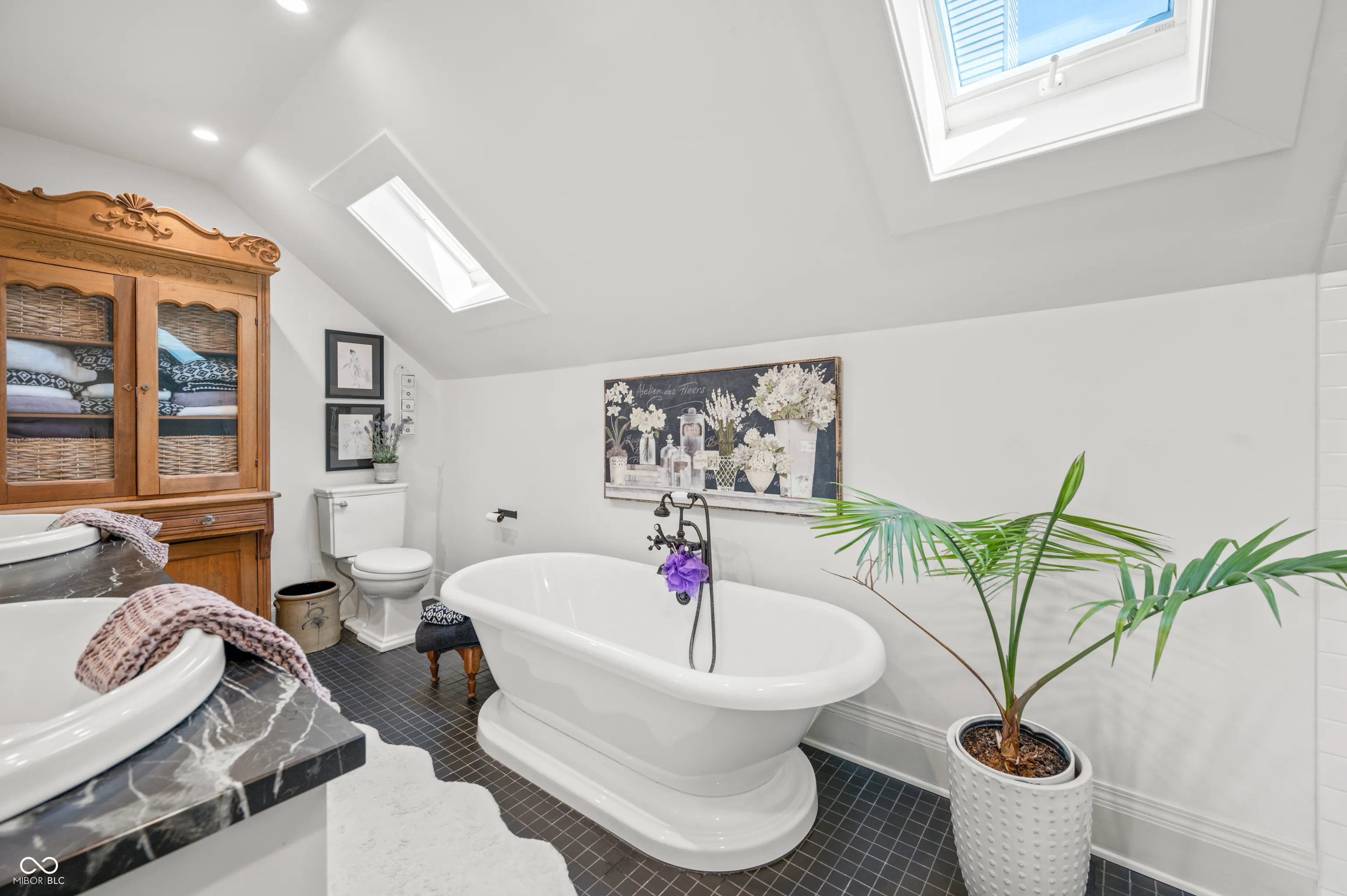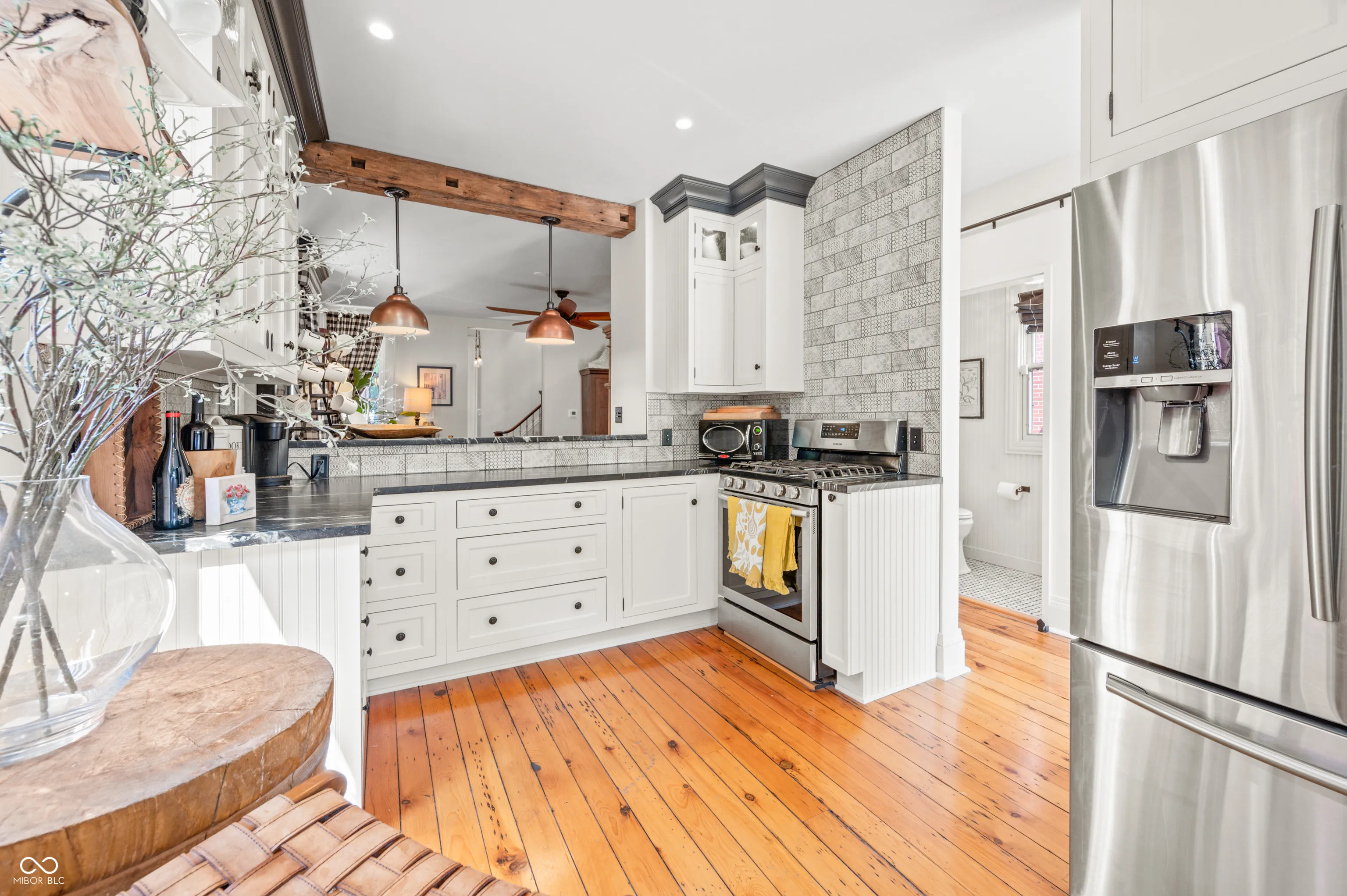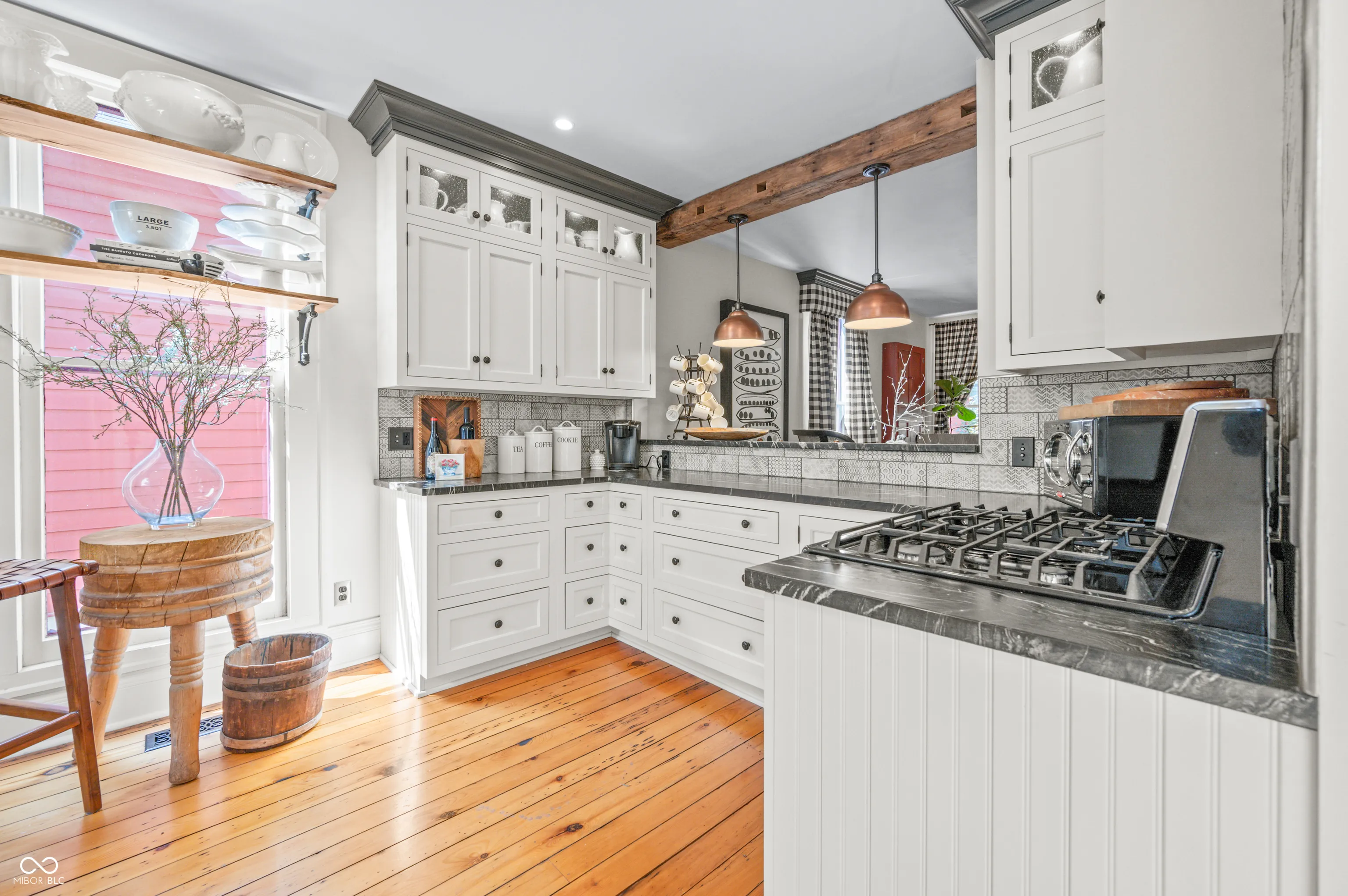 Discover the timeless elegance of this completely renovated Victorian home, built in 1919 and located in the heart of Lockerbie Square, Indianapolis. This vibrant neighborhood, known for its blend of residential, commercial, religious, and educational structures from circa 1855-1930, was the first historic district preservation area in Indianapolis, with revitalization efforts dating back to the 1960s. Listed in the National Register of Historic Places, this area offers an unparalleled blend of history and modern convenience. This stunning home beautifully maintains its historic charm while providing all the modern amenities you desire. The original hardwood floors grace the main level, complemented by the exquisite original crown molding. The fully redone kitchen boasts top-of-the-line appliances, custom cabinetry, and a breakfast bar with granite countertops, perfect for culinary enthusiasts. A welcoming spiral staircase leads you to the second floor, where you’ll find two large bedrooms and a versatile loft area, ideal for a nursery or office space. The main bathroom is a luxurious retreat featuring a double vanity, skylights, a clawfoot tub, and a walk-in tile shower. Step outside to your private English garden, completely fenced and featuring two serene water features. The property includes two parking spaces behind the home, allowing plenty of room for a two-car garage to be built. Enjoy the convenience of being just a short walk from the charming coffee shops and restaurants on Mass Ave. There’s no better downtown location to call home.