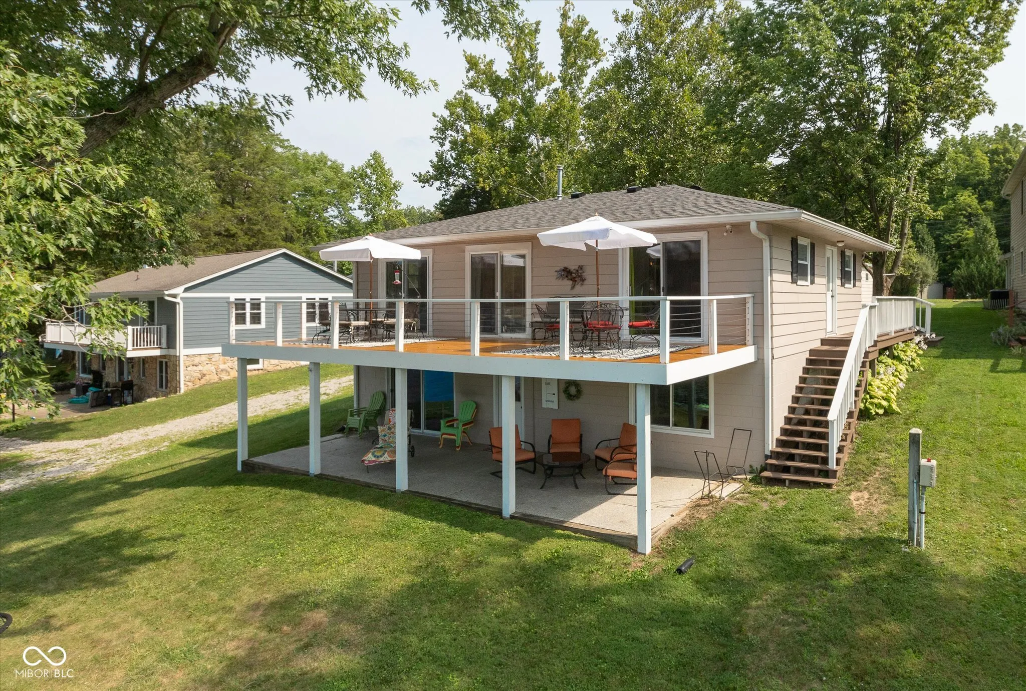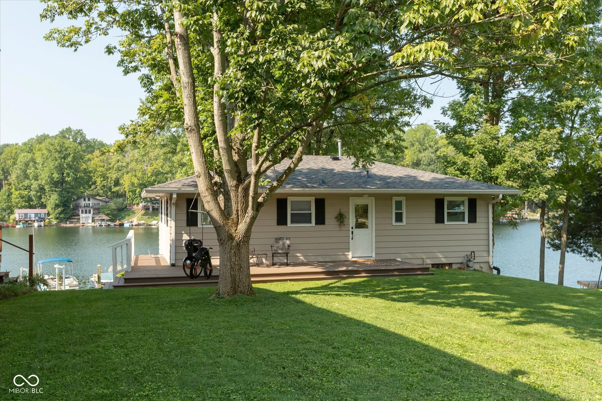 This is the lake house you have been waiting for! Boasting 60 feet of lake frontage on the main body of East Lake, of Prince’s Lakes, just 1 hour south of Indianapolis. This 3-bedroom, 2-bathroom, 2-kitchen home offers a beautiful lakeside living experience. Feel like you are walking on water with breathtaking water views from nearly every room. The home features 3 sliding doors that open directly to an upper level lake side deck. Bathrooms are updated with modern finishes. Multiple living rooms and recreational spaces provide ample room for relaxation and entertainment. The newly renovated designer kitchen is any chef’s dream with all new appliances and cabinetry. The home includes a large lower level with walkout to a flat yard, making access to your boats and dock easy. Extra features includes a spacious patio, an upper deck that spans the lake side of the home, an ample two car garage and extra parking for 6 vehicles. Enjoy the new two slip boat dock with room for outdoor furniture. The sunsets are magnificent from both the upper deck, the lower patio, or the dock. This is a private lake with only resident boaters. This house includes a pontoon boat, a ski boat, and two kayaks. It’s a must see!