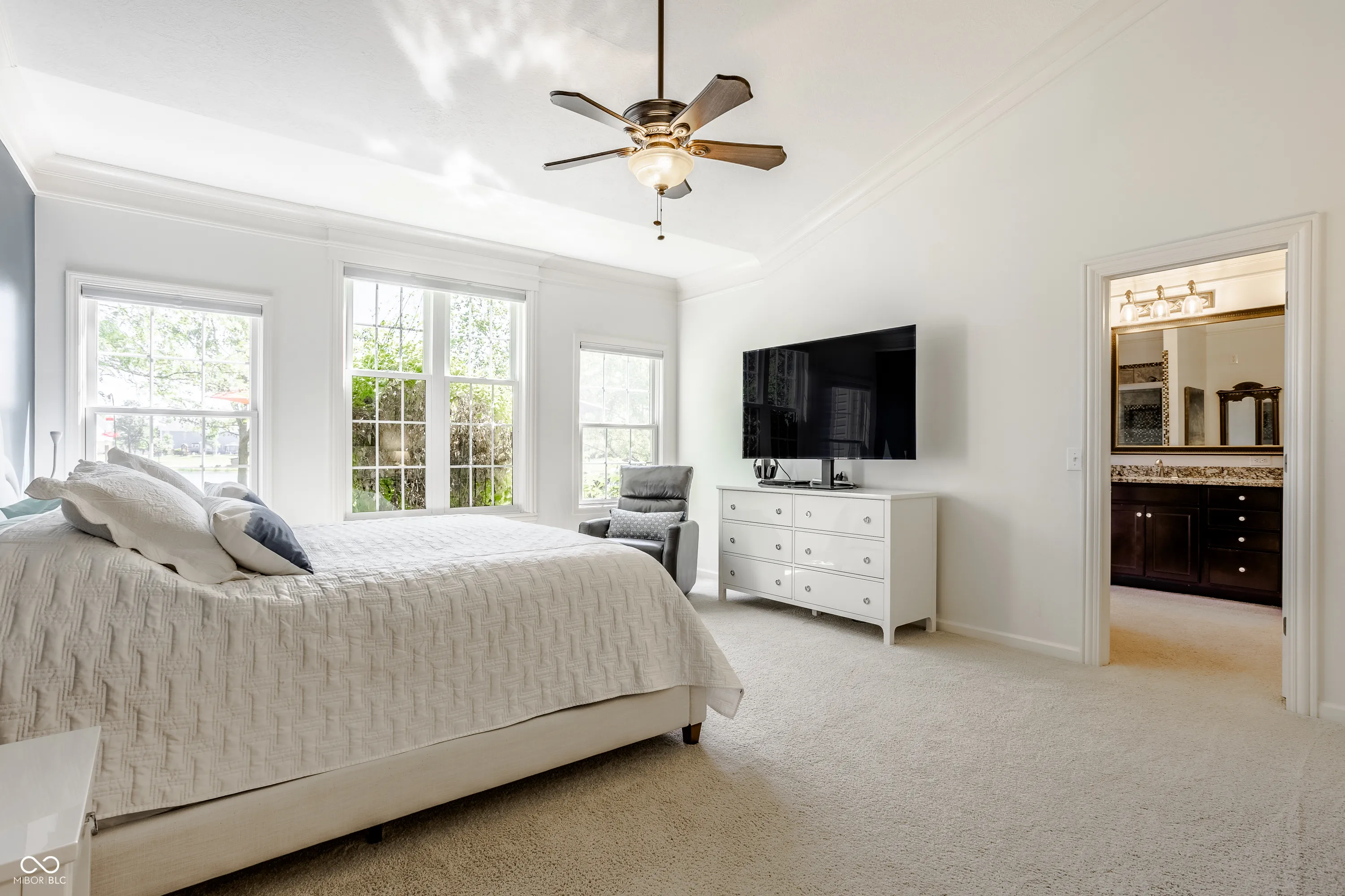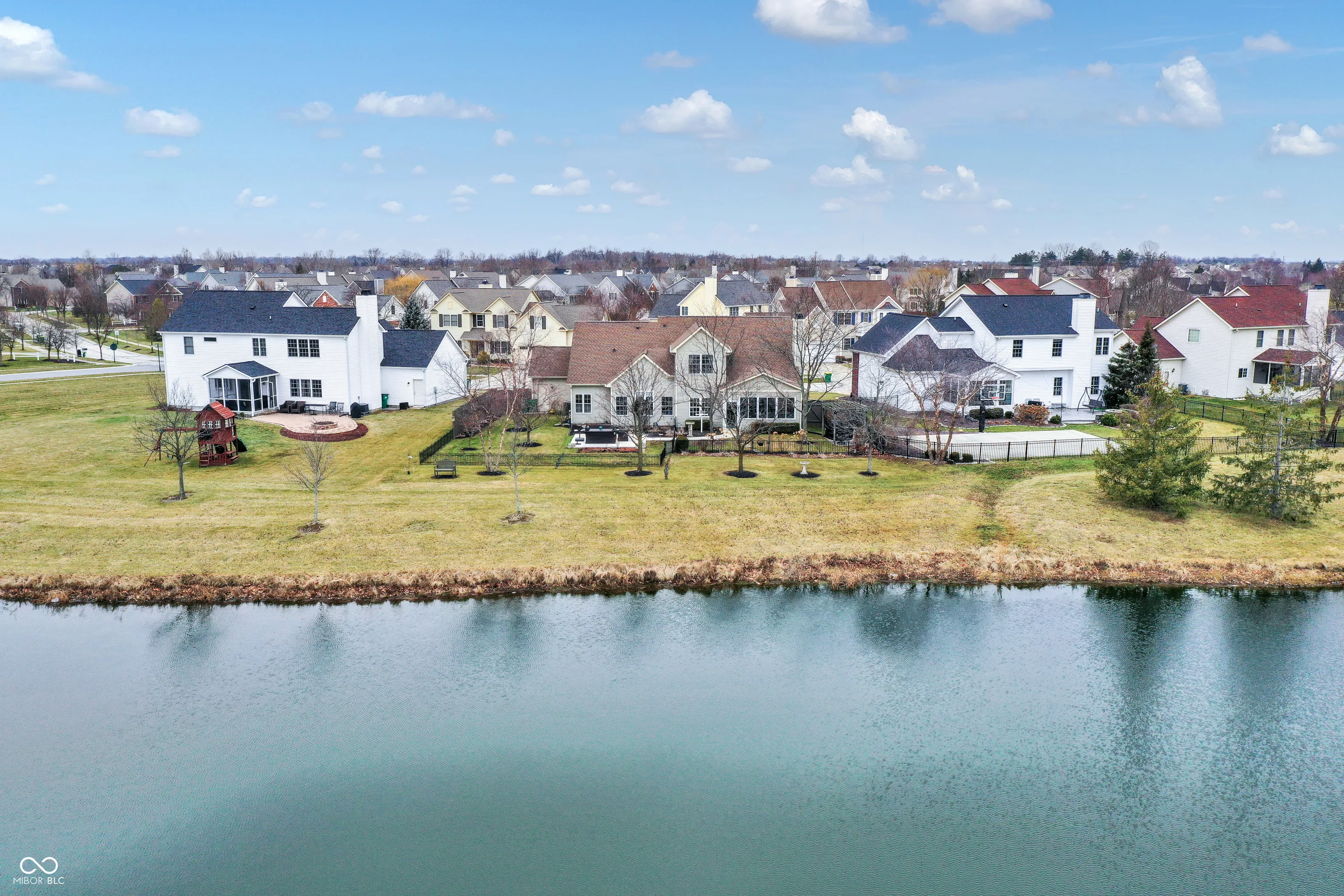 “Welcome to a stunning, inviting home boasting serene water views and an outdoor oasis complete with a private patio area. This fabulous residence offers a spacious interior highlighted by a first-floor master bedroom and an exceptional backyard retreat situated on a picturesque lake. Step inside to discover a main floor master suite featuring expansive windows framing tranquil water vistas, a well-appointed bathroom, and a generous walk-in closet. The great room impresses with soaring ceilings, a cozy fireplace, and elegant hardwood floors complemented by plush new carpeting throughout. The home’s grandeur is further evident in its two-story foyer, formal living room, and dining room perfect for entertaining. The gourmet kitchen is equipped with stainless steel appliances, abundant storage, and ample counter space, seamlessly flowing into a bright eat-in area. Upstairs, three additional bedrooms offer comfort and privacy, while the fully fenced yard and three-car garage enhance convenience and security. The master bedroom boasts a vaulted ceiling and a recently updated bathroom, ensuring luxury and comfort. Outside, the backyard is a true retreat, featuring breathtaking landscaping, unparalleled privacy with no rear neighbors, and the serene backdrop of a peaceful lake-an exceedingly rare find. Experience luxury living at its finest with this remarkable home that blends comfort, elegance, and natural beauty seamlessly.”