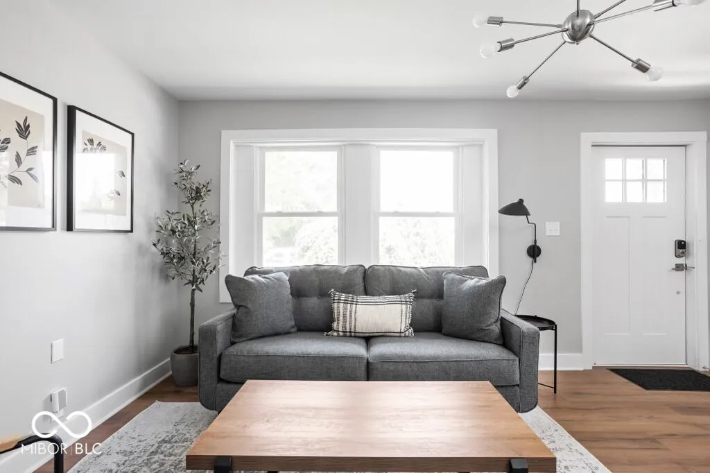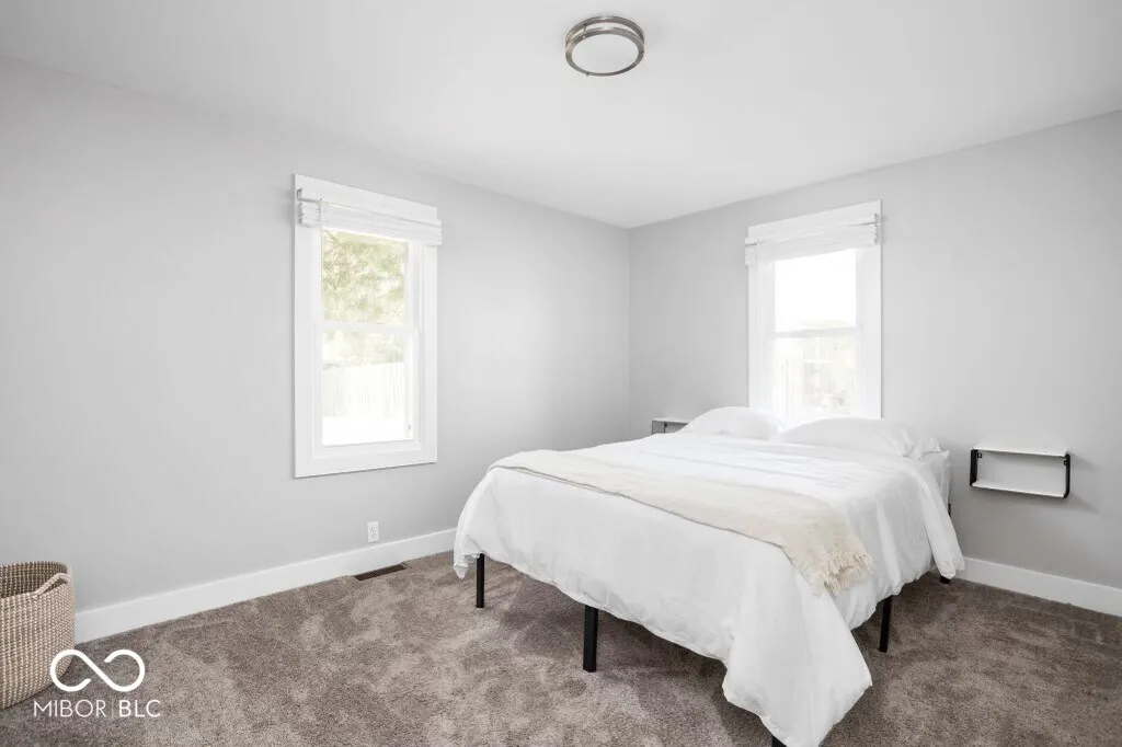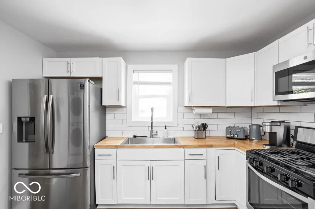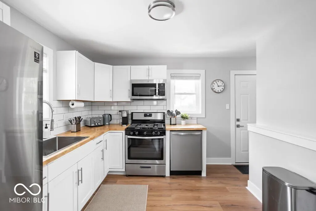 This fully renovated 3-bedroom, 2-bathroom home in Carmel offers a minimal yet cozy feel with a clean, sophisticated white aesthetic. The stunning new kitchen boasts bright white cabinets, butcher block countertops, a large stainless steel sink with a gooseneck faucet, and brand-new stainless steel appliances, including a 5-burner gas range. Laminate flooring runs throughout the high-traffic areas, while the bedrooms feature cozy carpeting. The master suite includes a remodeled full bath with a tiled walk-in shower, and the guest bath offers a tub/shower combo. The clean basement houses the furnace, water heater, and laundry area. The detached 2-car garage comes with a new opener and service door. Located in a quiet neighborhood yet conveniently close to all amenities, this home is perfect for you!