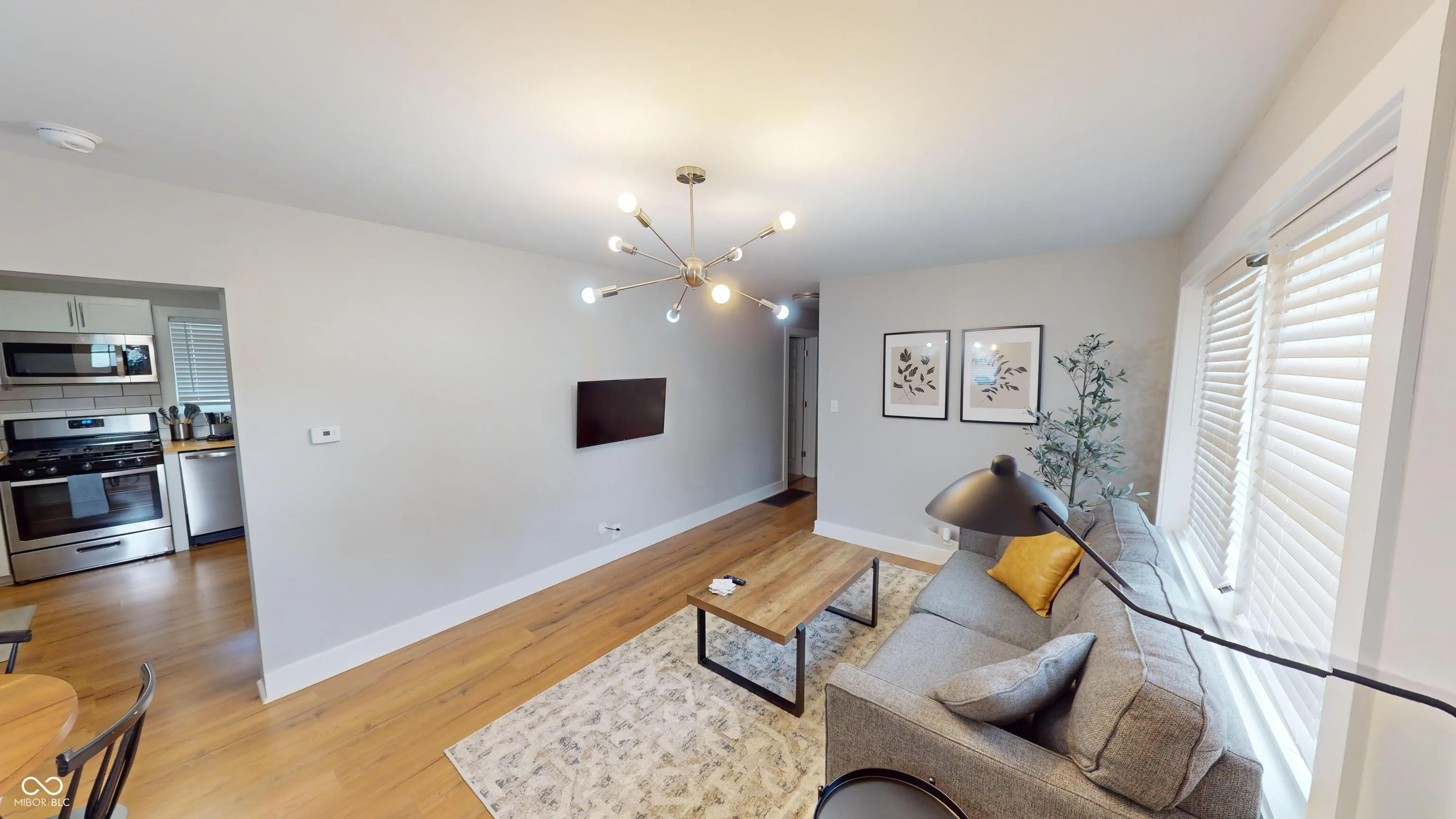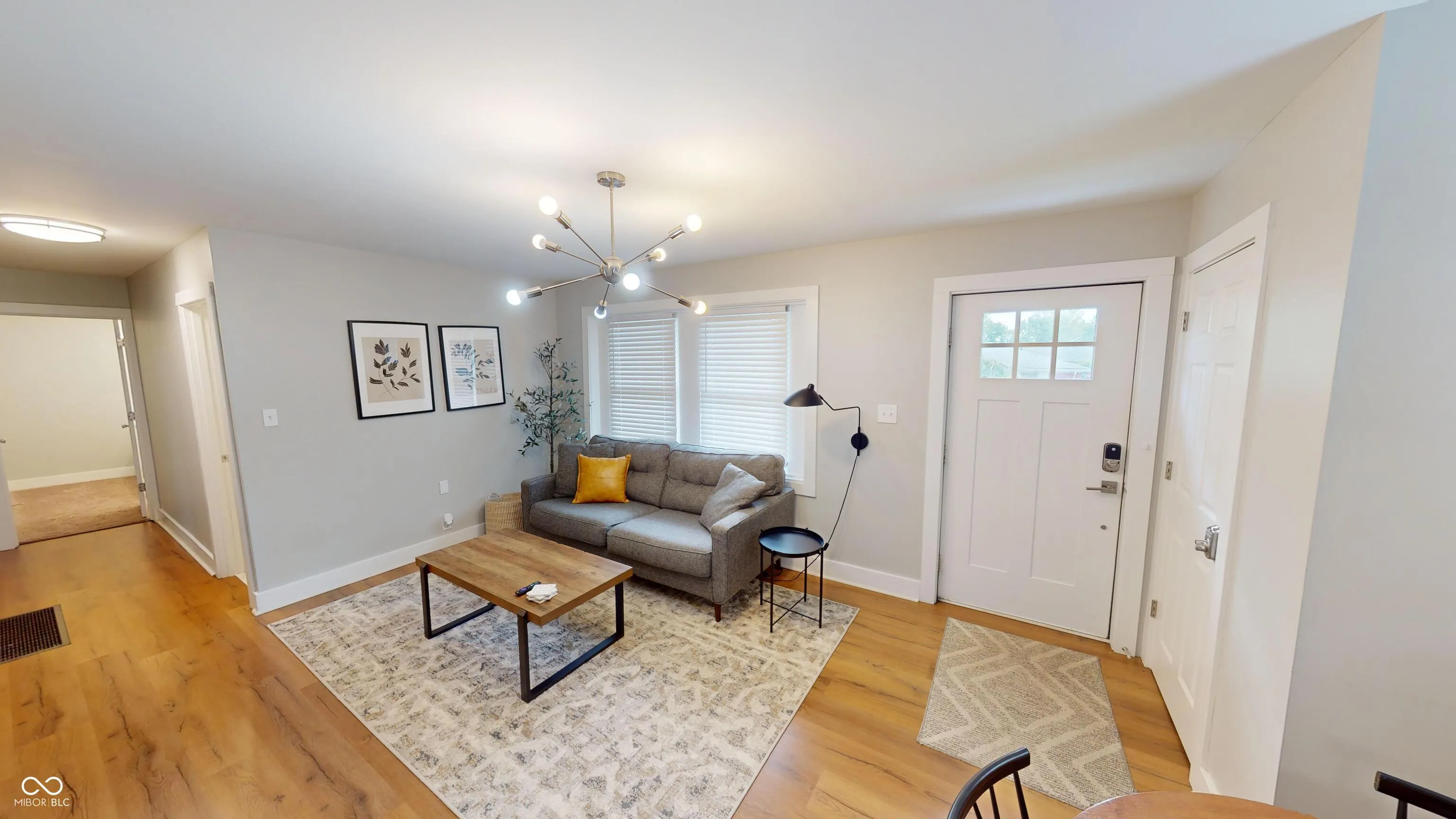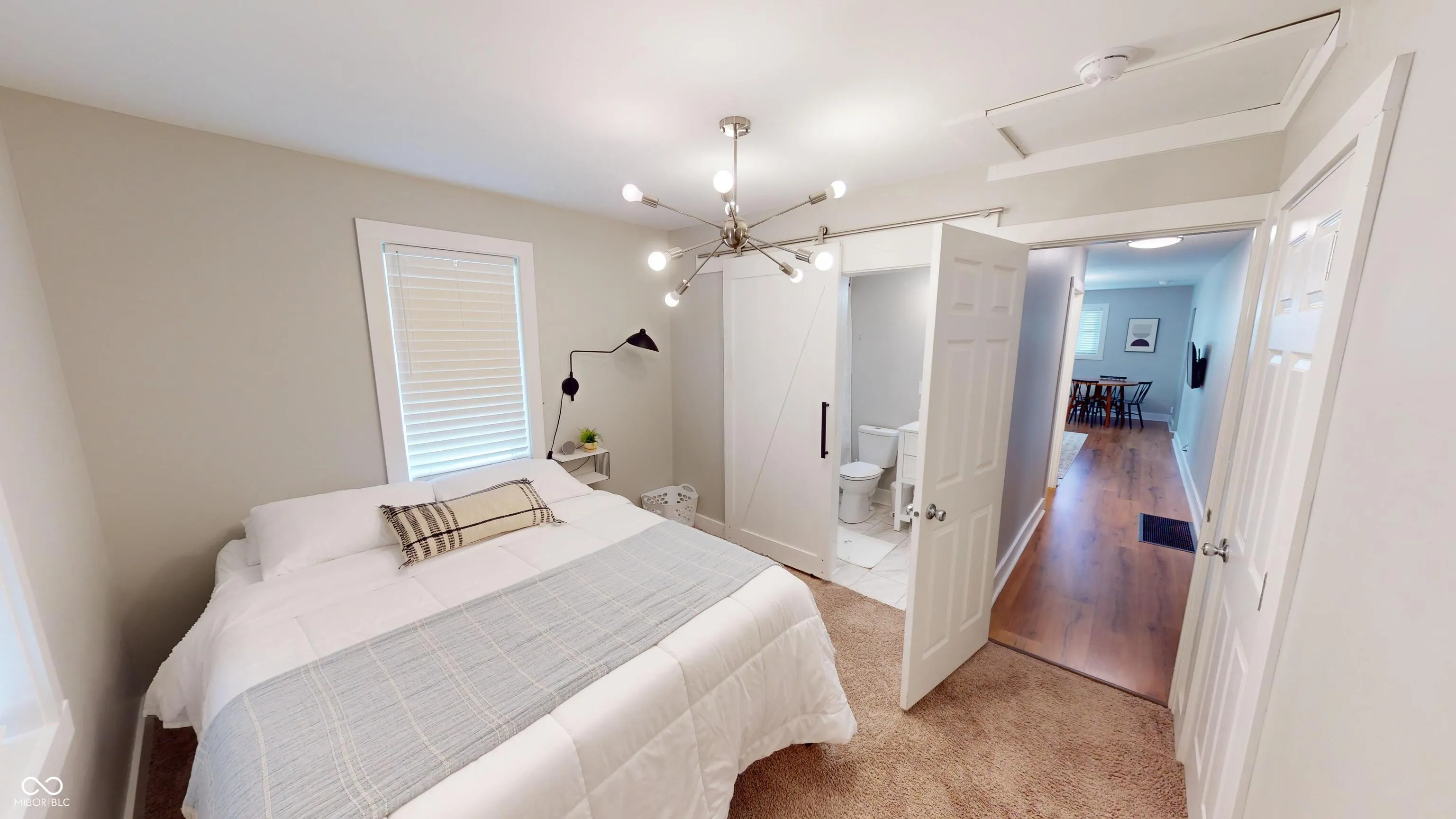 This fully renovated 3-bedroom, 2-bathroom home in Carmel offers a minimal yet cozy feel with a clean, sophisticated white aesthetic. The stunning new kitchen boasts bright white cabinets, butcher block countertops, a large stainless steel sink with a gooseneck faucet, and brand-new stainless steel appliances, including a 5-burner gas range. Laminate flooring runs throughout the high-traffic areas, while the bedrooms feature cozy carpeting. The master suite includes a remodeled full bath with a tiled walk-in shower, and the guest bath offers a tub/shower combo. The clean basement houses the furnace, water heater, and laundry area. The detached 2-car garage comes with a new opener and service door. Located in a quiet neighborhood yet conveniently close to all amenities, this home is perfect for you!