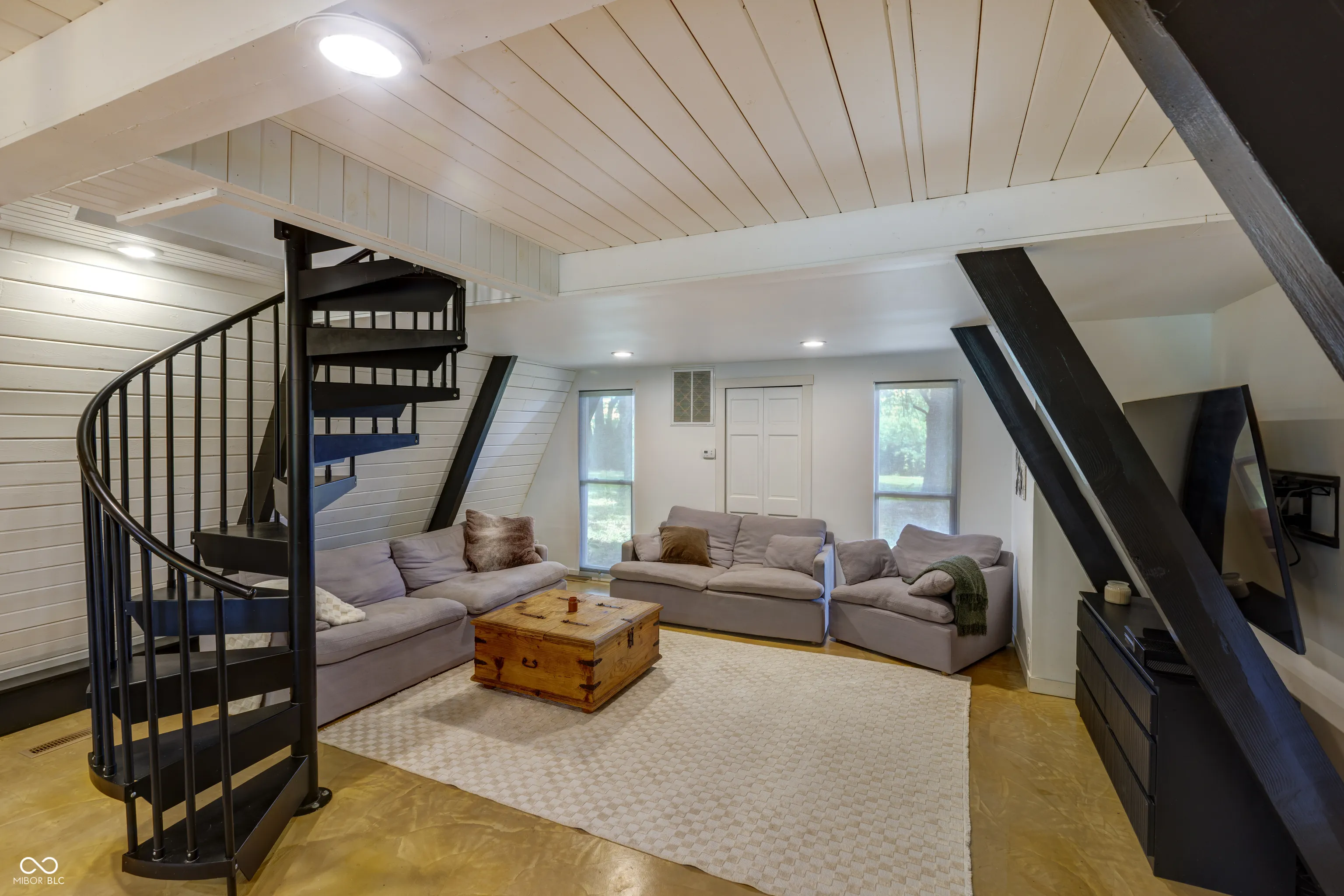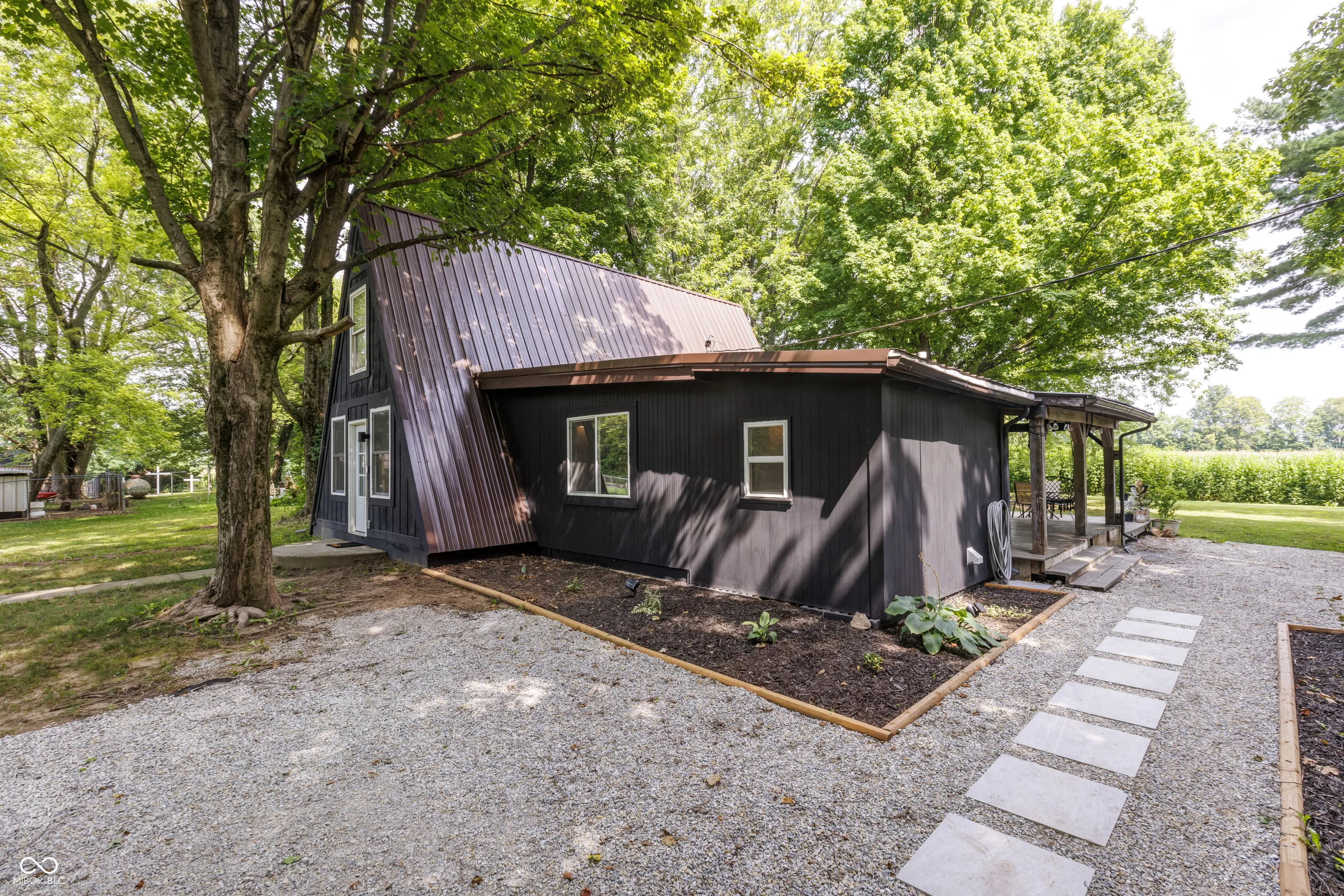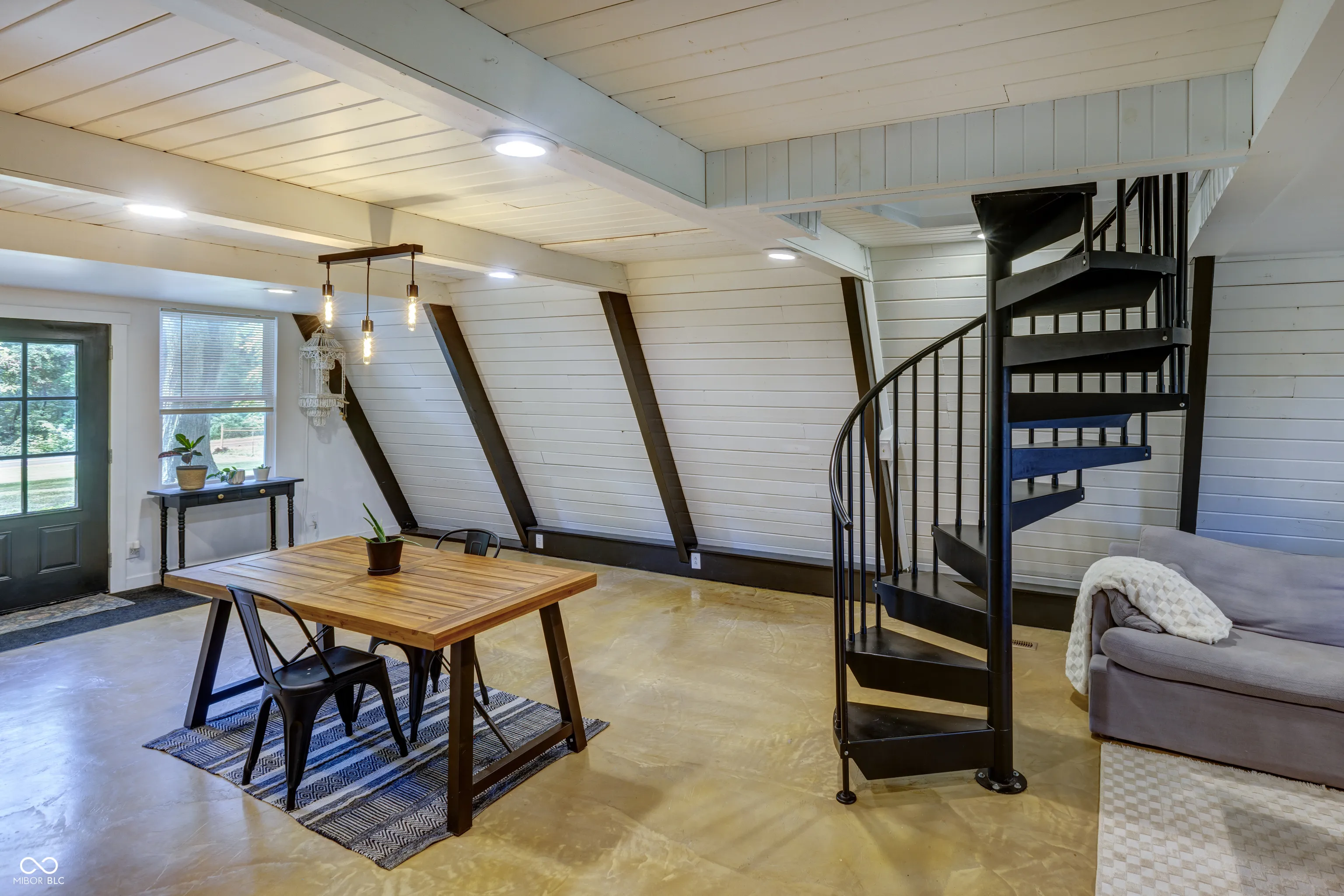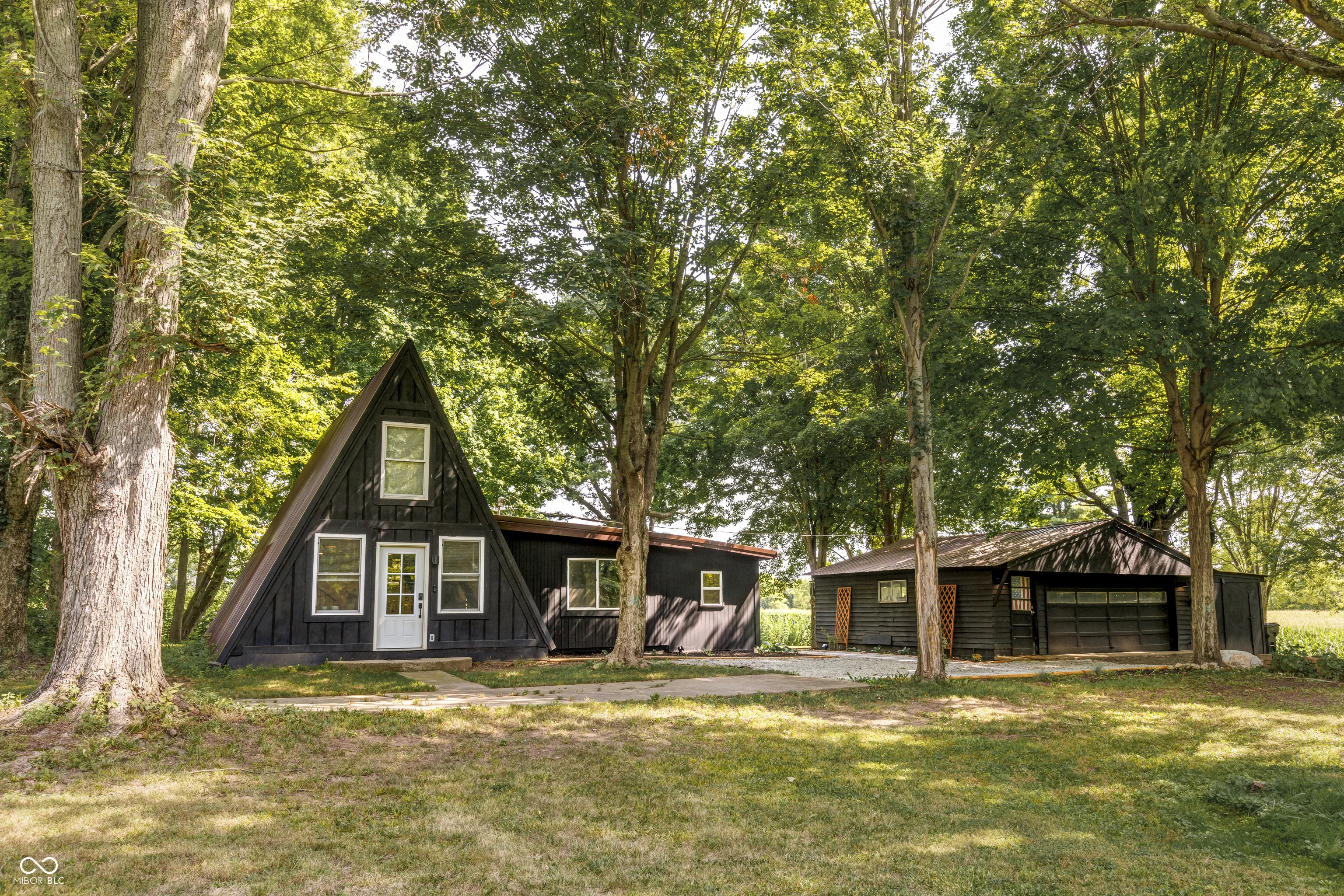 This A-Frame built in 1973 sits on 1.5 acres with a detached 2 car garage. The main level features concrete floors throughout with an updated kitchen, stainless appliances, laundry room, main level bedroom, and bathroom. Up the spiral staircase you’ll find the main bedroom as well as a bonus room that could be used as an office, large closet, or more! The character in this home is unmatched!