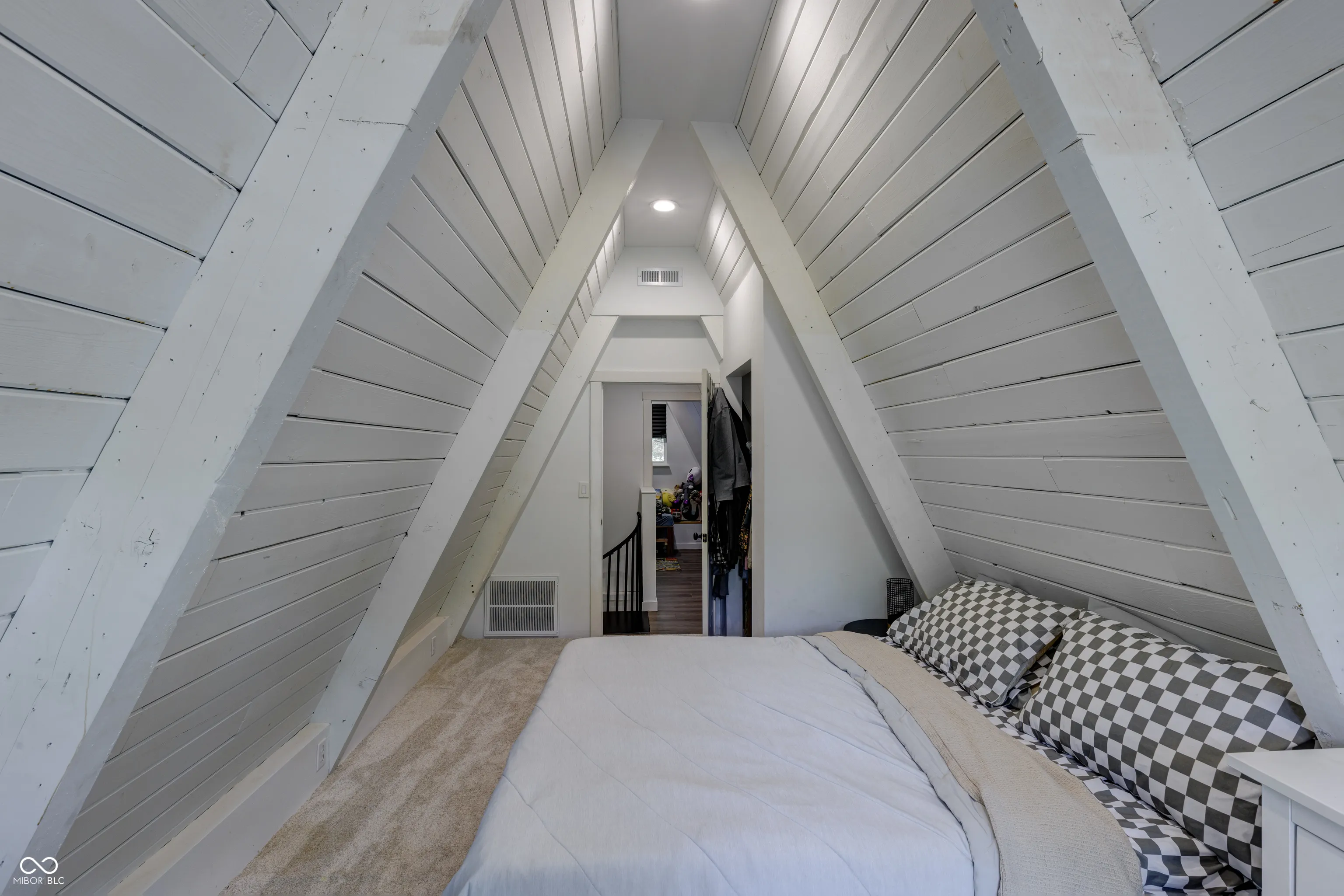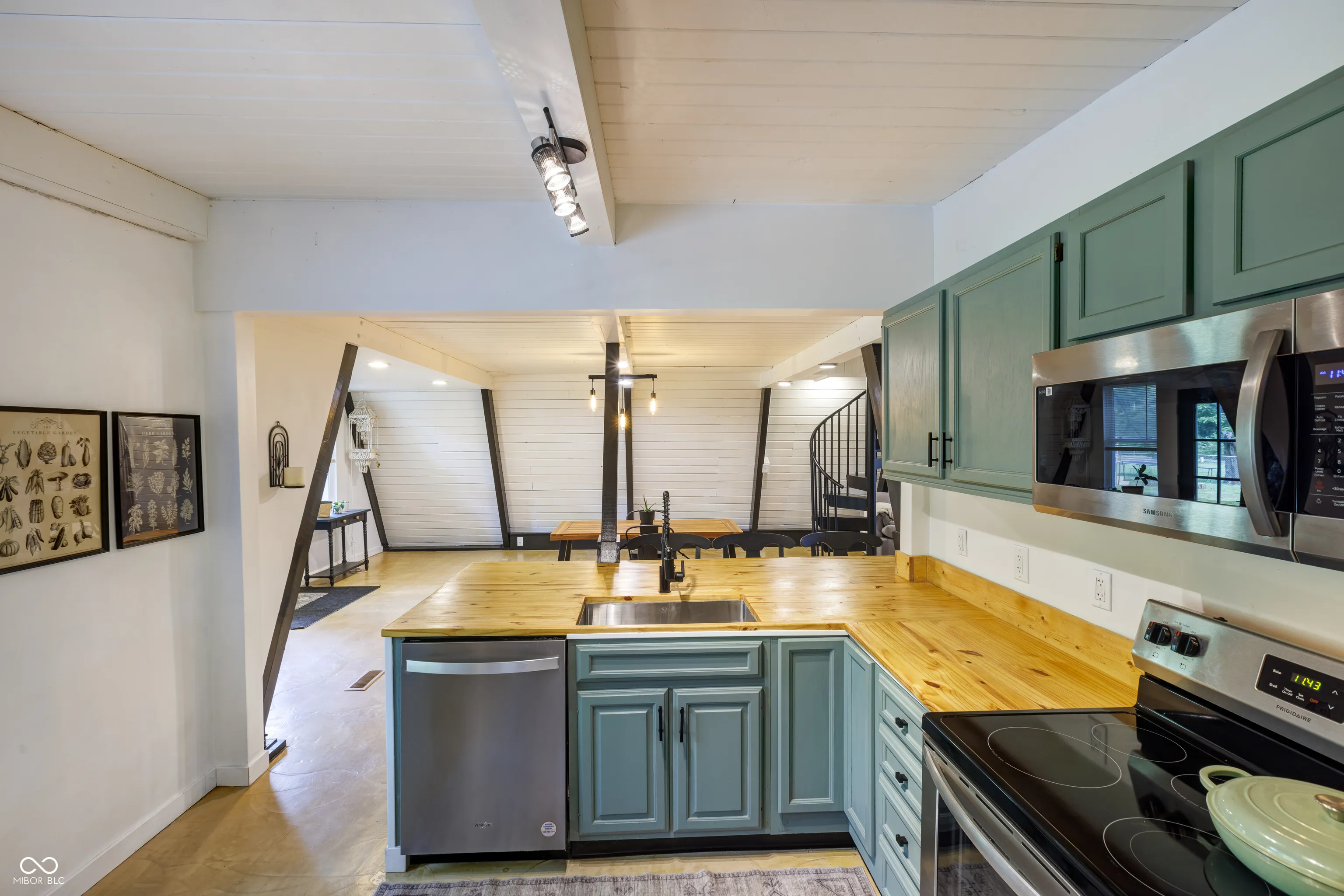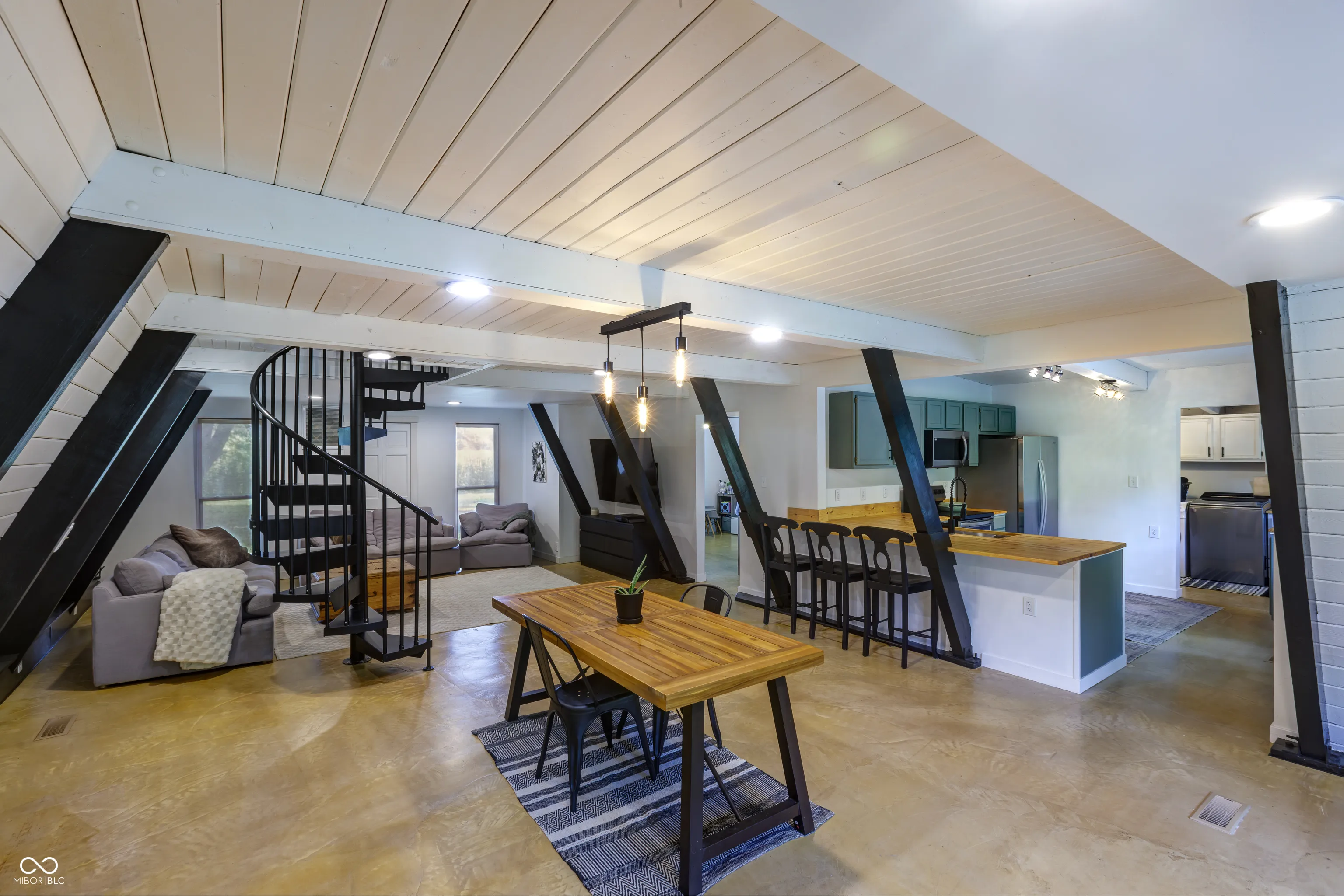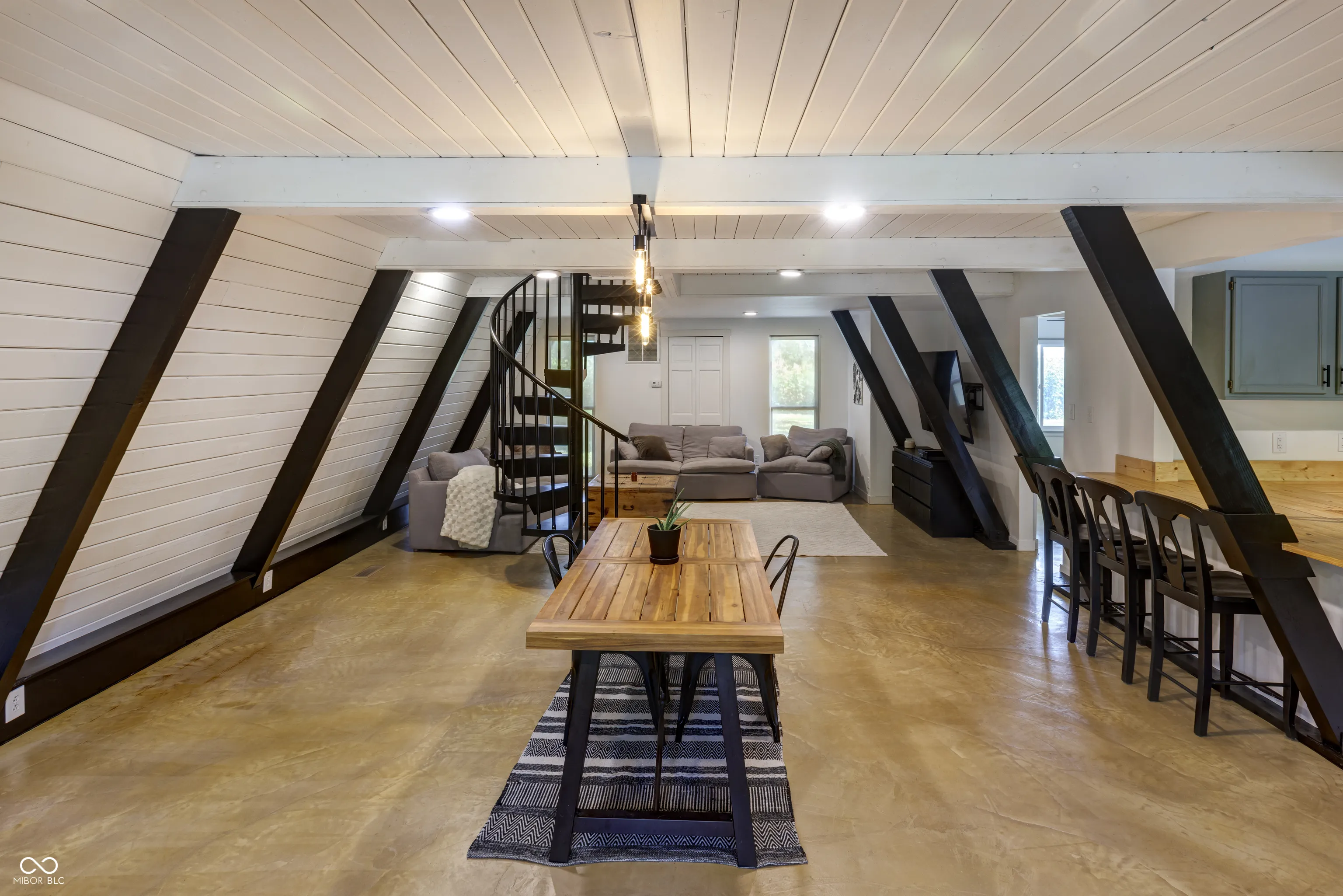 This A-Frame built in 1973 sits on 1.5 acres with a detached 2 car garage. The main level features concrete floors throughout with an updated kitchen, stainless appliances, laundry room, main level bedroom, and bathroom. Up the spiral staircase you’ll find the main bedroom as well as a bonus room that could be used as an office, large closet, or more! The character in this home is unmatched!