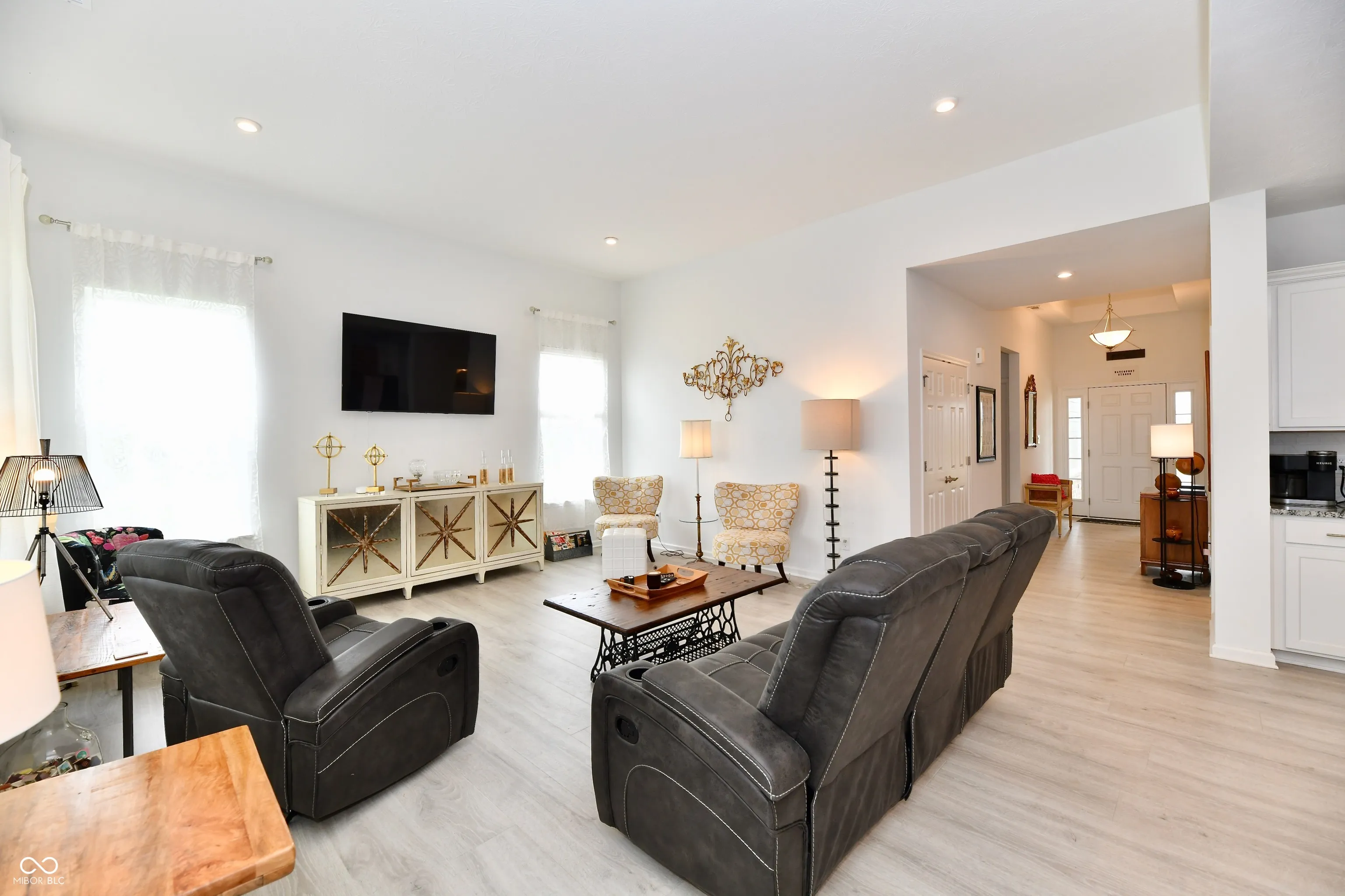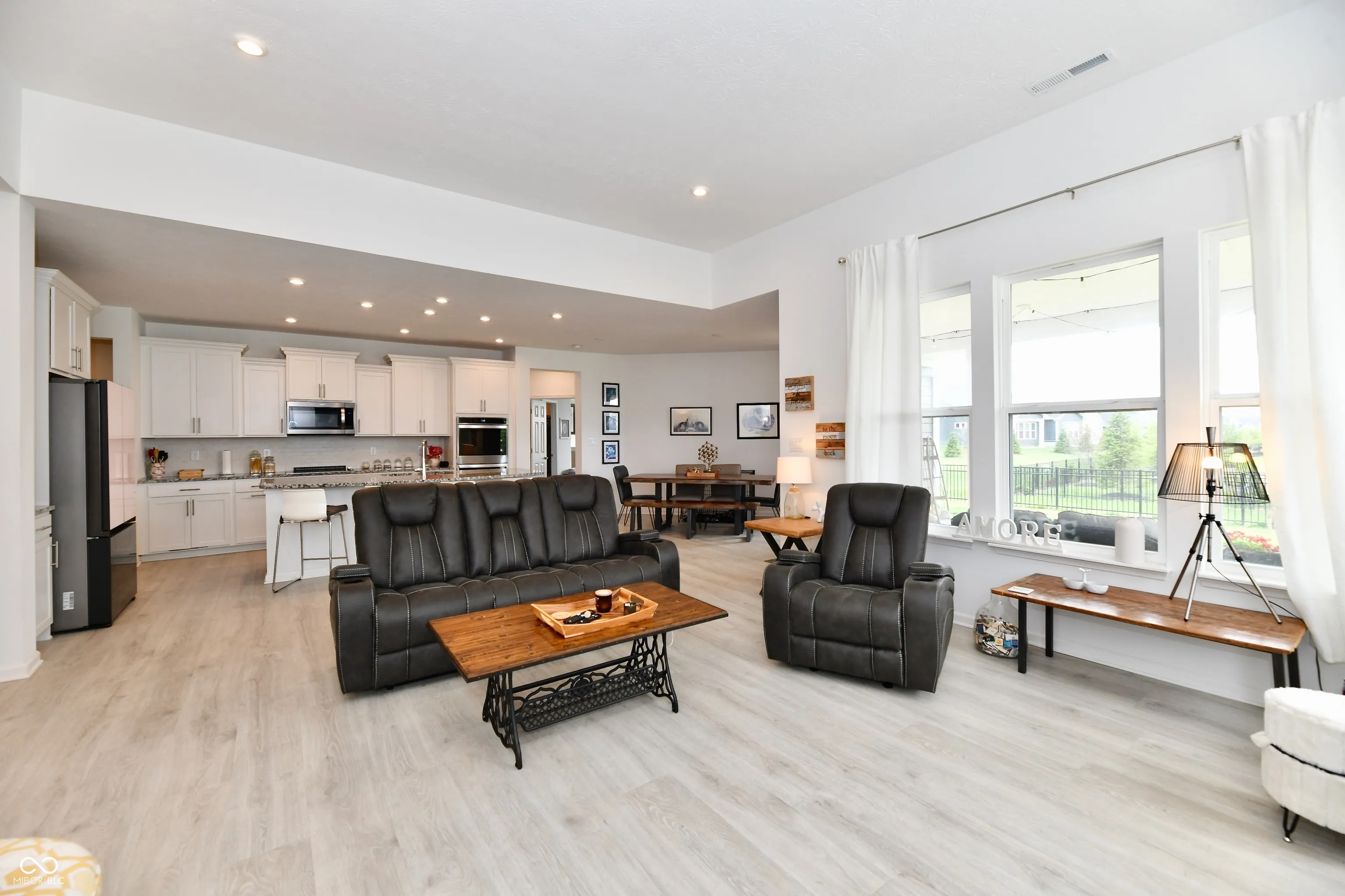 Welcome to beautiful Bordeaux Walk- a totally finished community with a nearly 1/2 ACRE LOT! This 2023 home is BRIGHT AND SUNNY and boasts an open concept floor plan with split level bedrooms for privacy! All bedrooms are spacious! Primary Suite and Bedroom 2 enjoy ensuite full baths and closets. The primary suite has a very luxurious layout with a large walk in shower with a seat and transom window, private toilet room and large separate vanities. The walk- in closet is massive and connects directly to the laundry for convenience! Kitchen is a DREAM with double ovens, oversized granite island, walk-in pantry and LVP flooring which you will find throughout all common living areas. The dining area is larger than most- PLENTY of room for that big table so you can continue to enjoy large meals with friends and family! BED 3/ Office is bigger than expected and has private French Doors. Outside, you will LOVE the gas fireplace on the covered porch! 3 CAR GARAGE has EPOXY floors and the home also has a tankless water heater!!!