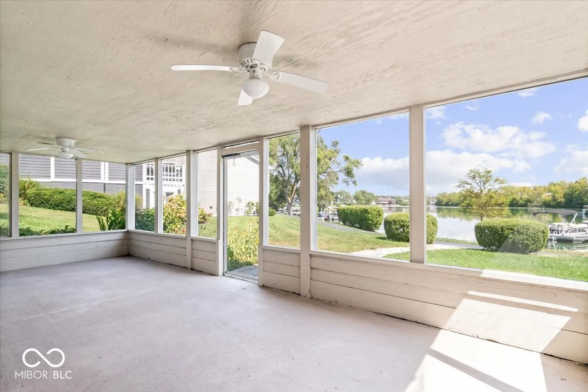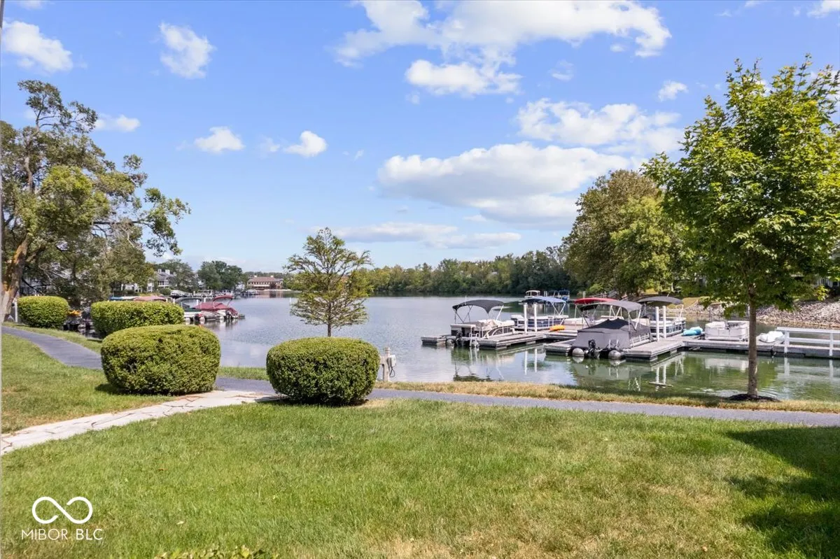 Own a slice of paradise in Clearwater Cove! End-unit condo boasts unbeatable waterfront views across the cove and your own boat slip, with the rare combination of lakefront privacy and lush green space. Whether you’re relaxing on the upper deck or enjoying the lower level screened porch, you’ll find the perfect spot to unwind. Inside, the living room is bright and airy with soaring ceilings and large windows that frame stunning lake views. Kitchen flows seamlessly into the dining and living rooms, making it an ideal space for entertaining. Convenient main level laundry and extra pantry storage in the garage. Primary suite features a spacious walk-in closet, bathroom with soaking tub, double vanity and updated shower. Home office off the entry could serve as a guest room with half bath nearby. Downstairs, the family room features a cozy gas fireplace, wet bar and large screened porch. Second bedroom en-suite is ideal for guests or family. Lake Clearwater’s pristine waters offer the best fishing, swimming, and boating on Indy’s north side. Upscale shopping, fine dining and easy access to 465 just moments away. This hidden gem offers the perfect mix of luxury and convenience. Embrace the low-maintenance, resort-style living at Clearwater Cove!