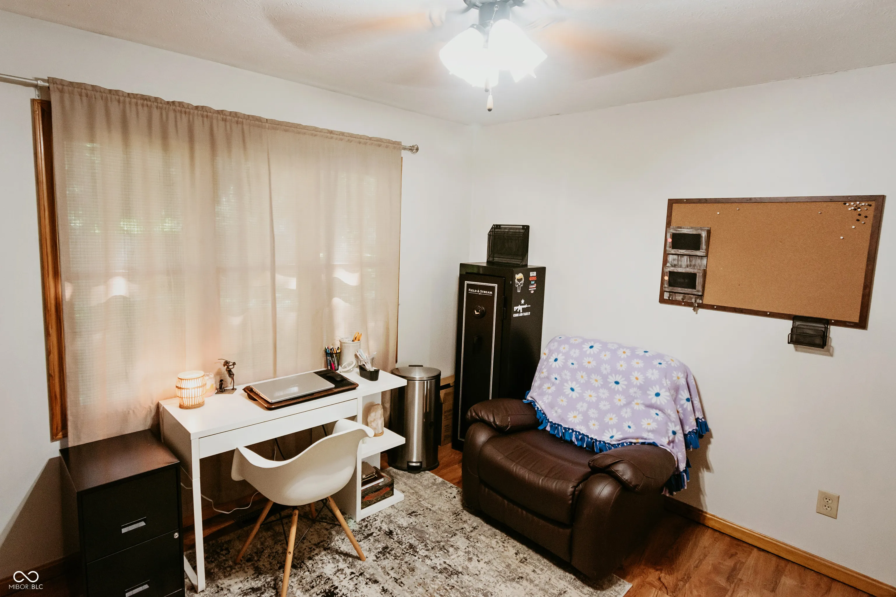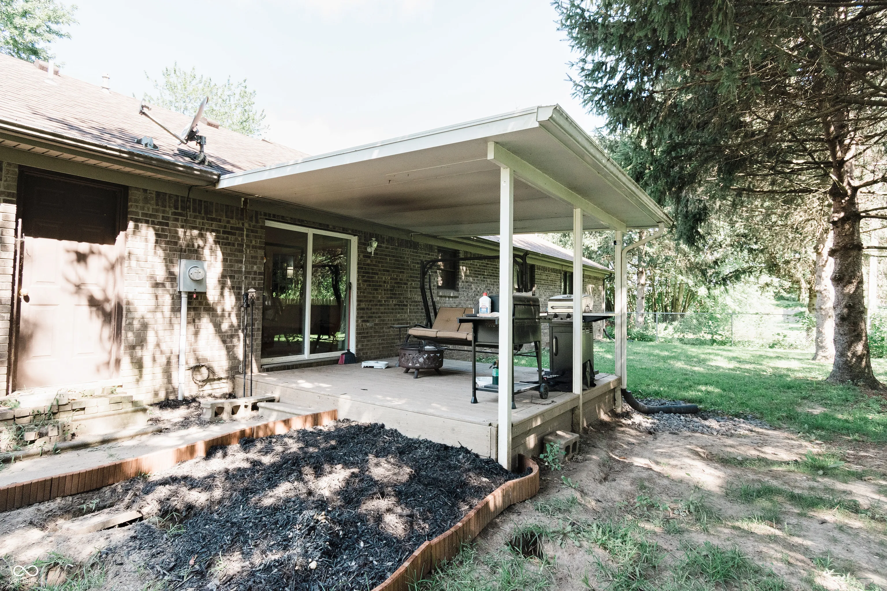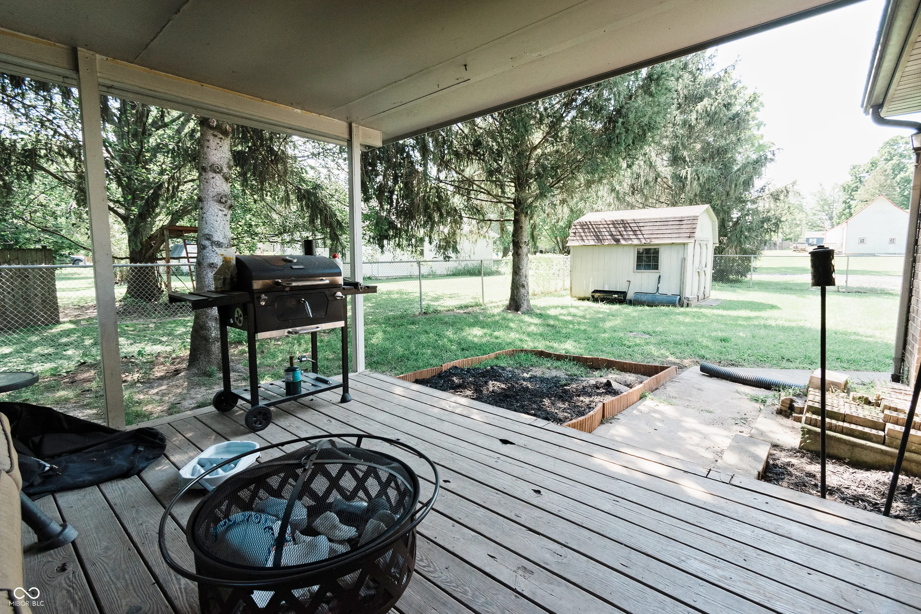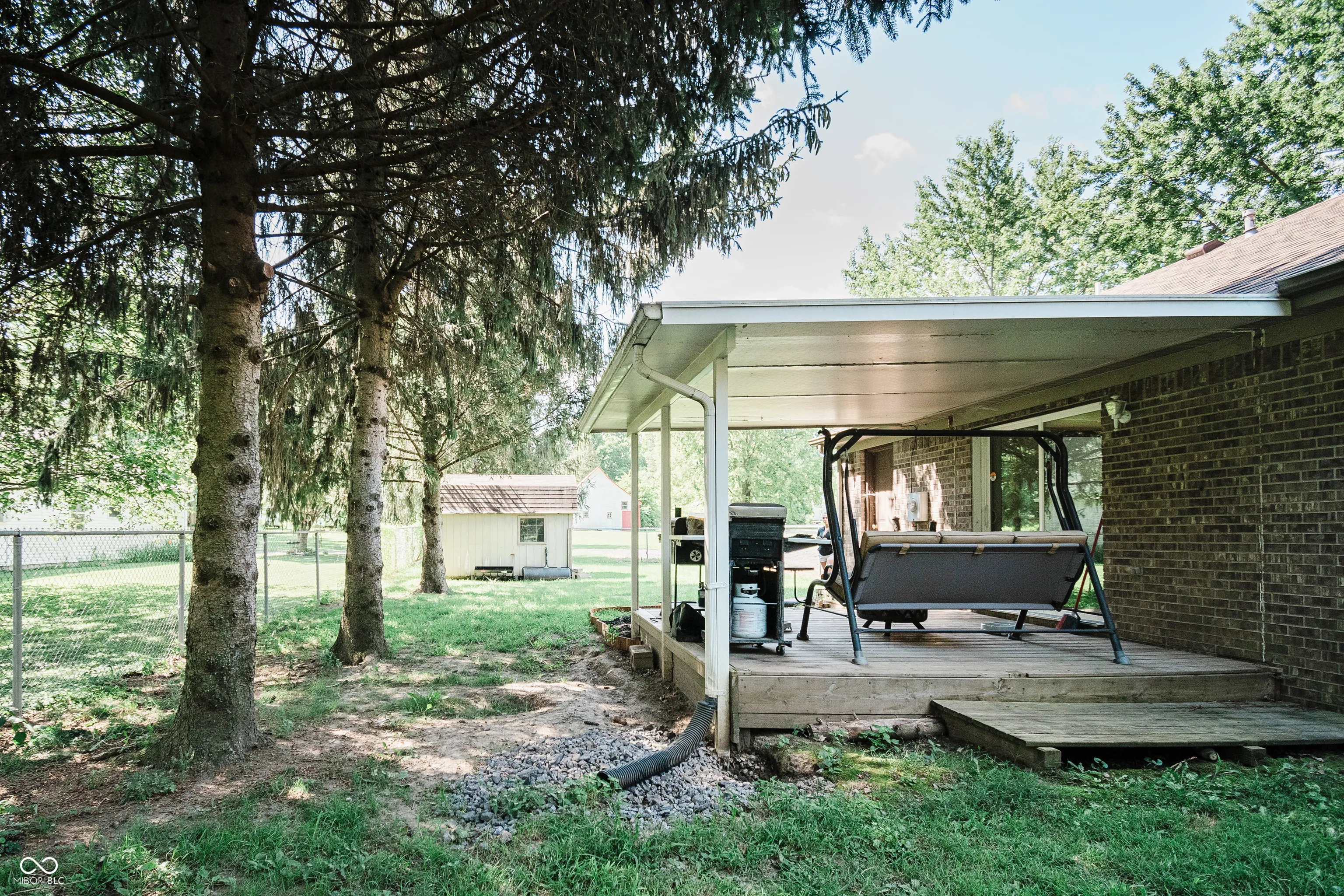 Welcome to your private brick ranch oasis tucked back off the road in downtown Thorntown! Once inside you will be wowed by the vaulted ceilings, wrapped beam, custom mantle fireplace, and rich plank flooring throughout. Your two bathrooms have been recently updated with solid surface and granite vanity tops. The spacious bedrooms are all centrally located with the primary ensuite boasting a walk in closet and attached en-suite bath. This large lot includes an enclosed front porch, a covered back porch, a fully fenced in backyard and a mini barn for storage! You get all the amenities of rural living, cornfields surrounding, a long drive and a private yard, with the walkability to the Big 4 Trail, park, elementary school, library, restaurants and everything downtown Thorntown has to offer! Come see it today!