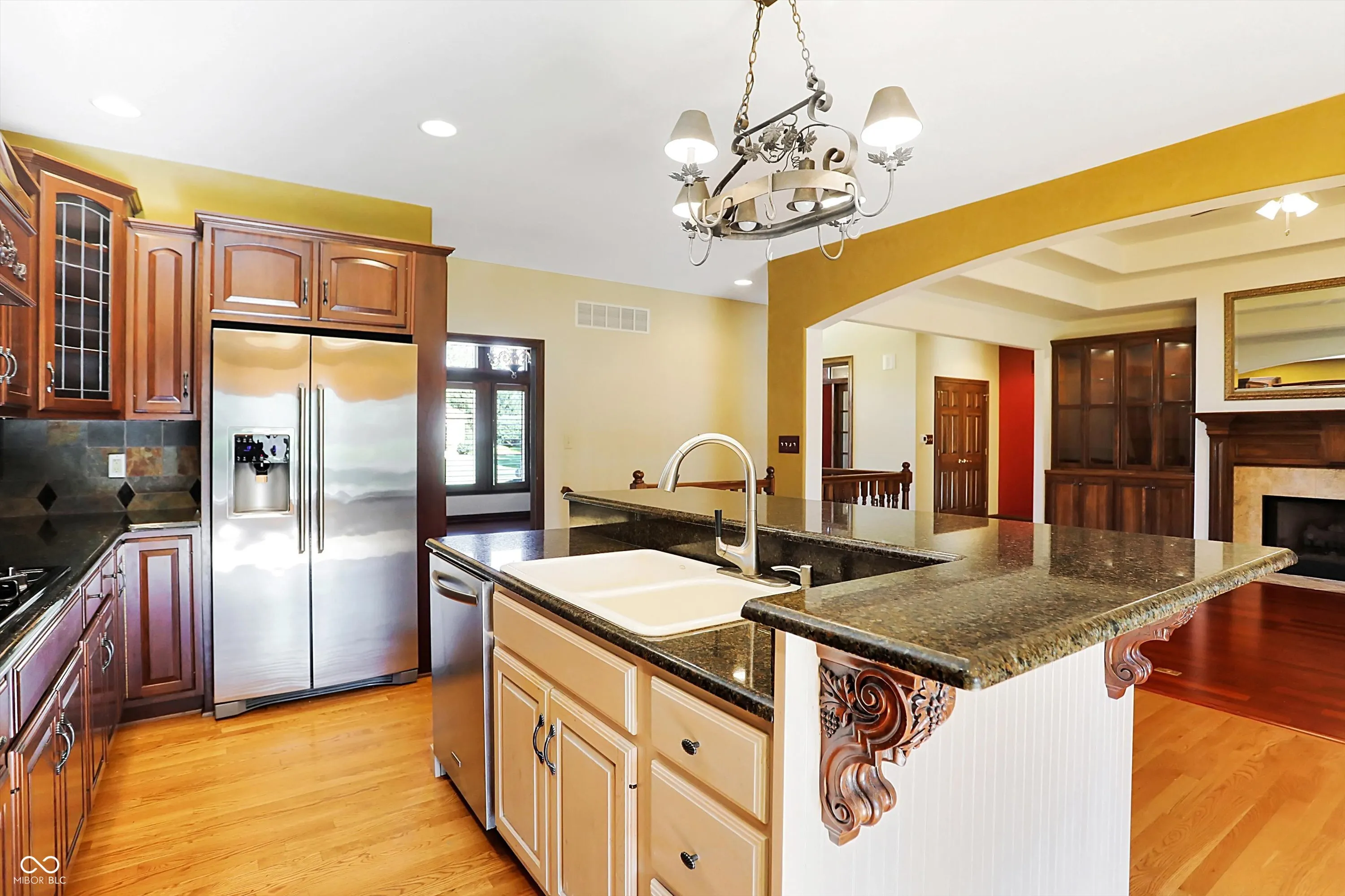 This Custom Ranch is your chance to become a resident of Highland Park Neighborhood, right in the heart of Center Grove! Who is ready to make this just under 6000 sq/ft, split floor plan home your own?! Expansive ceilings, built-in bookcases, plantation shutters, gas fireplace, custom wood cabinets and wood floors are just a few of the upgrades this home boasts. The open floor plan of the family room and kitchen area promoted forward thinking when built by Greg Allen and supports todays lifestyle. Host large dinners in the formal dining room with new built in storage and serving areas. Work from home in the main level, double door home office! Main floor Primary bedroom is oversized and connected to a large en suite bathroom and custom designed walk in closet. Peep the nerve center off the the laundry room to help organize day to day life! A Jack and Jill bathroom connects two wonderful sized bedrooms and finishes out the main level. An extra wide staircase leads you downstairs to an entertainers dream of a full basement with storage galore! Everything you could need including a family room, game room, bonus room, exercise room, a bar w/ full refrigerator and dishwasher, and two mechanical rooms, one that has a second washer & dryer hook up! Two sump pumps, each with a battery backup! New Dual HVAC Systems! Car enthusiasts will fall in love with this 3+ car garage with extra tall ceilings. Rustic, exposed brick and wood wrapped four season room with heating and cooling can be used all year and sits off the kitchen and family room! The back of the home has a concrete patio and larger side yard on east side of home!