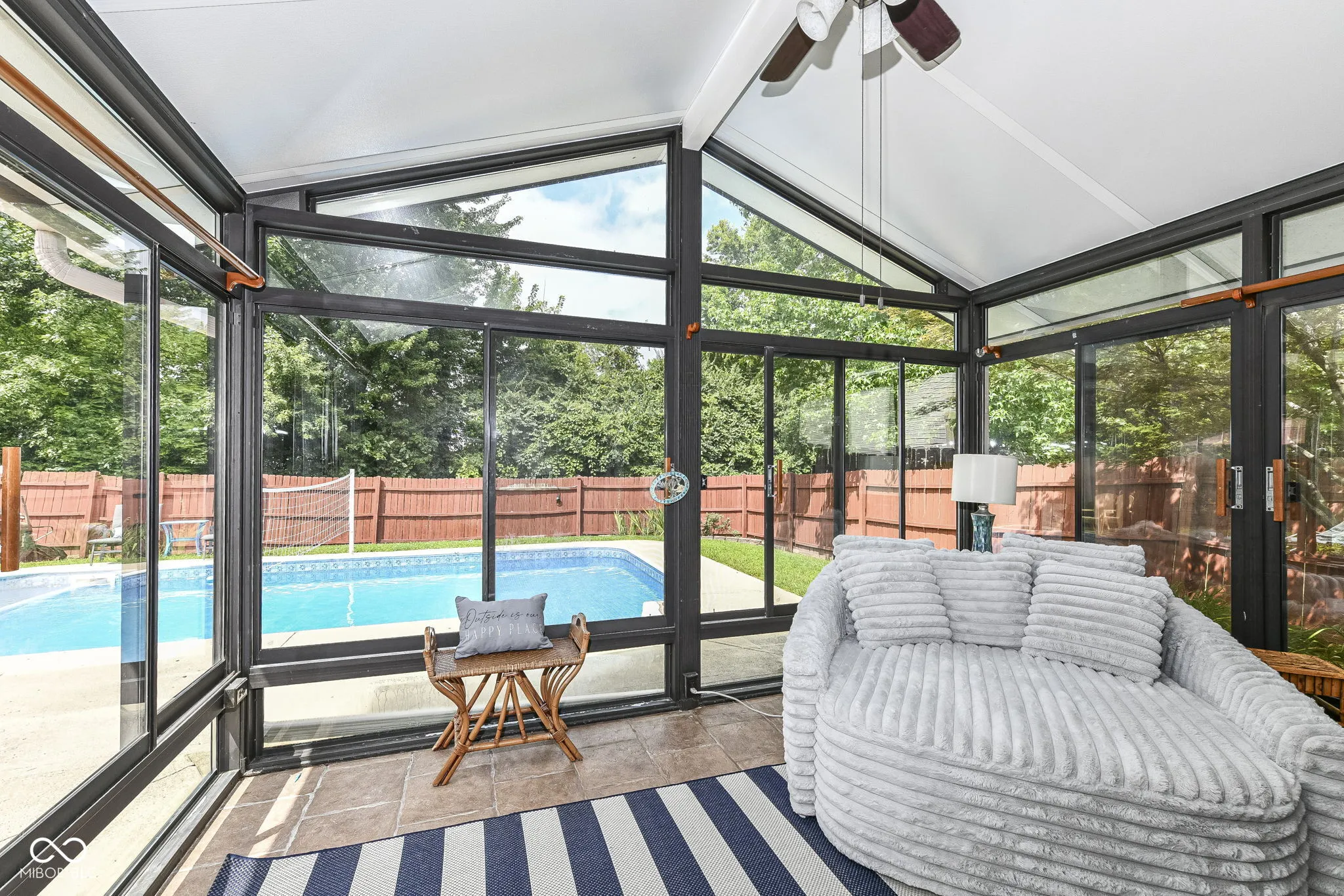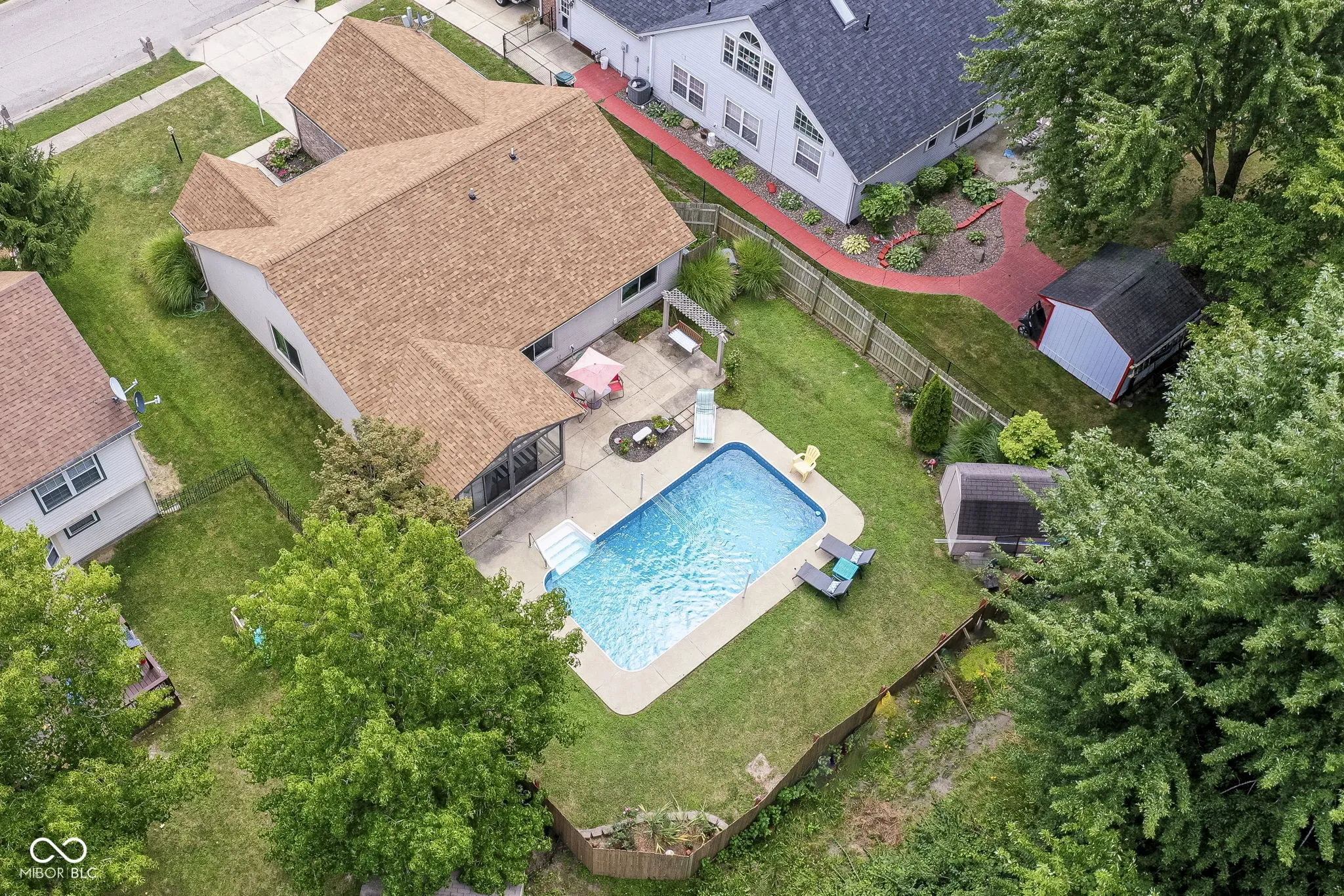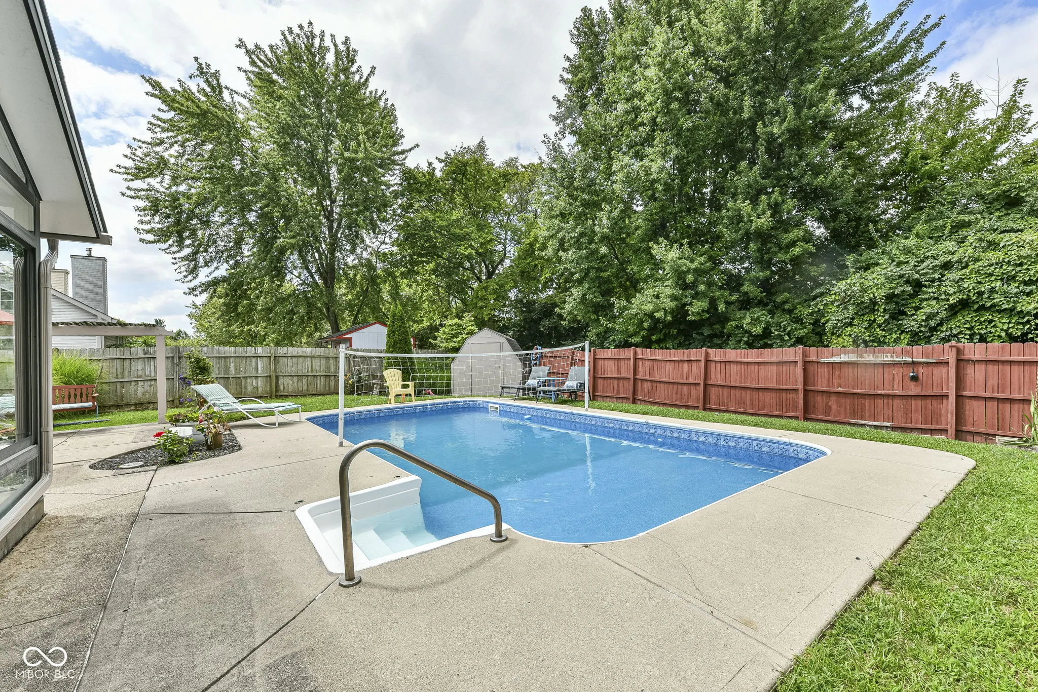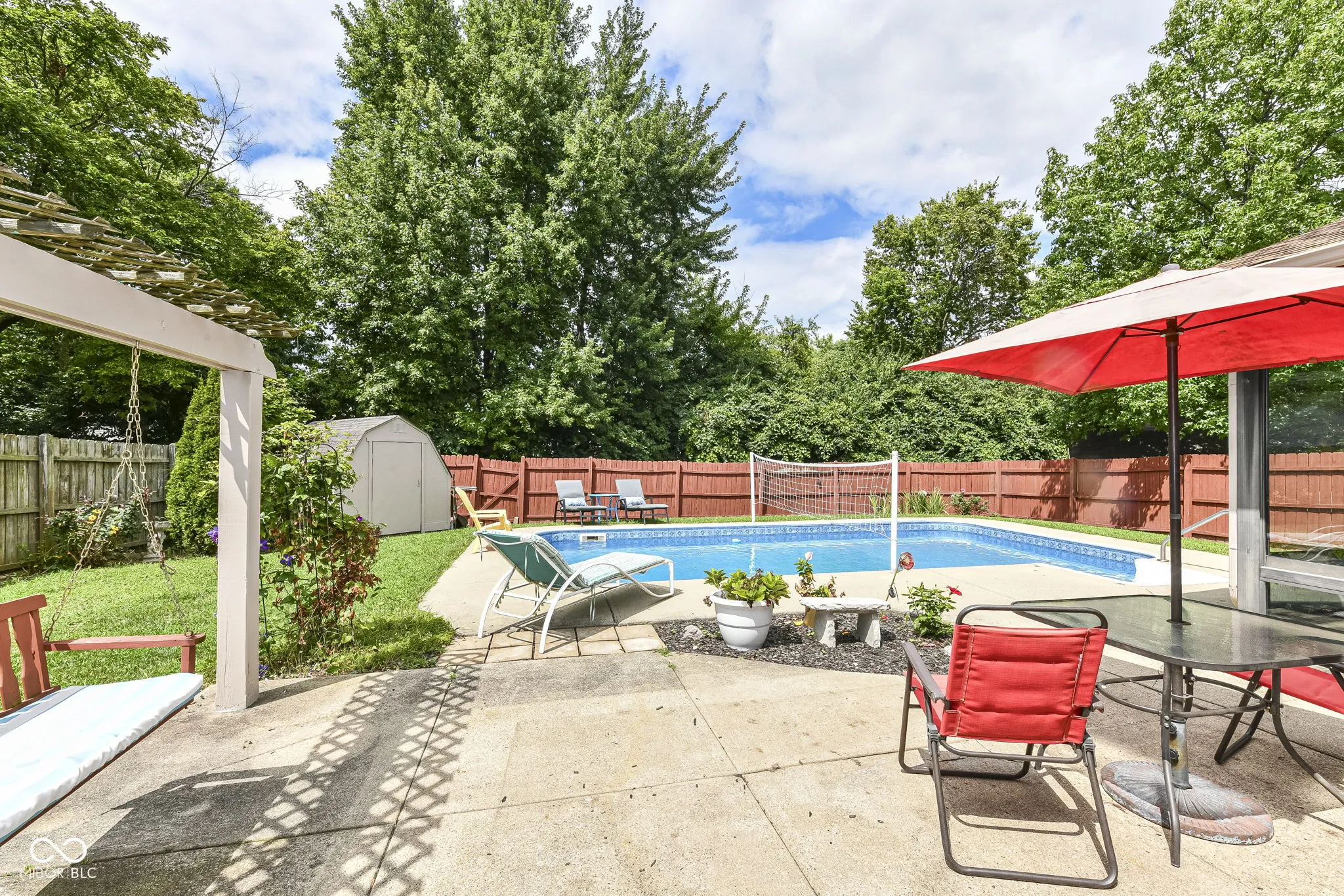 HEATED POOL? say what?! Charming Greenwood home conveniently located on Main Street between 31 & 135 near shopping, dining, and schools. Extend your summer in the lovely heated swimming pool, complete with sports package volleyball net. Watch beautiful sunsets from your sunroom with floor to ceiling windows ~ the perfect spot to relax or entertain. Fully fenced rear yard includes mini-barn and plenty of space for gardening/recreation/relaxation with extra property behind the fence. Inside you’ll love the open, spacious dining & family room with built in shelving and a corner gas fireplace to keep you cozy in winter months. Open, spacious kitchen with vaulted ceiling, white cabinets, pass thru to dining room, center island, pantry & breakfast bay. Spacious primary suite with garden tub/shower, two closets, linen closet, wide vanity space & enclosed water closet. Guest rooms have w-i-c, huge windows, new carpet. Hall linen closet, recently updated bathroom w/full shower, pedestal sink, transom windows. Laundry room has built in cabinets. Newer windows, new carpet in beds 2 and 3. Roof was replaced in 2023. DON’T MISS!