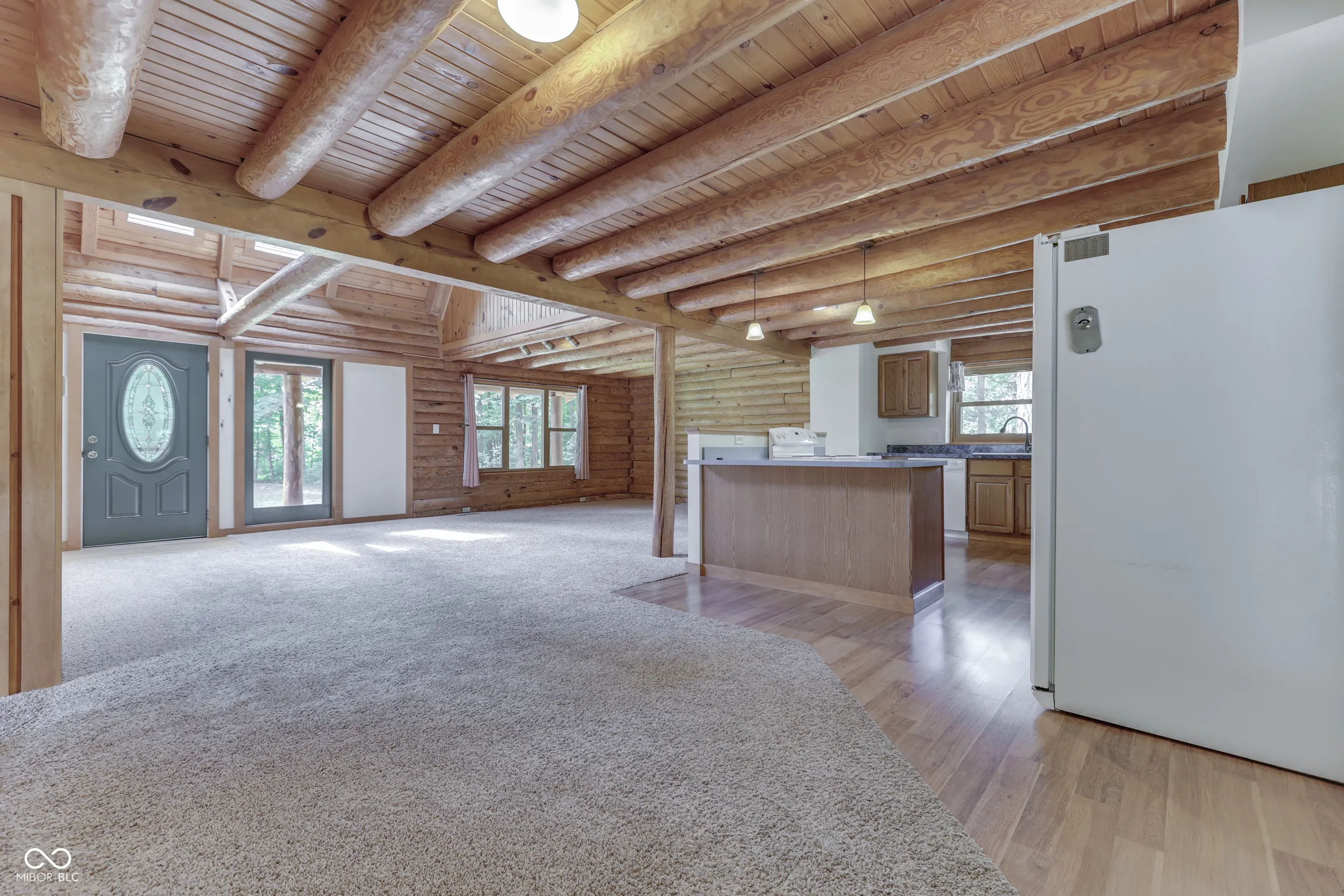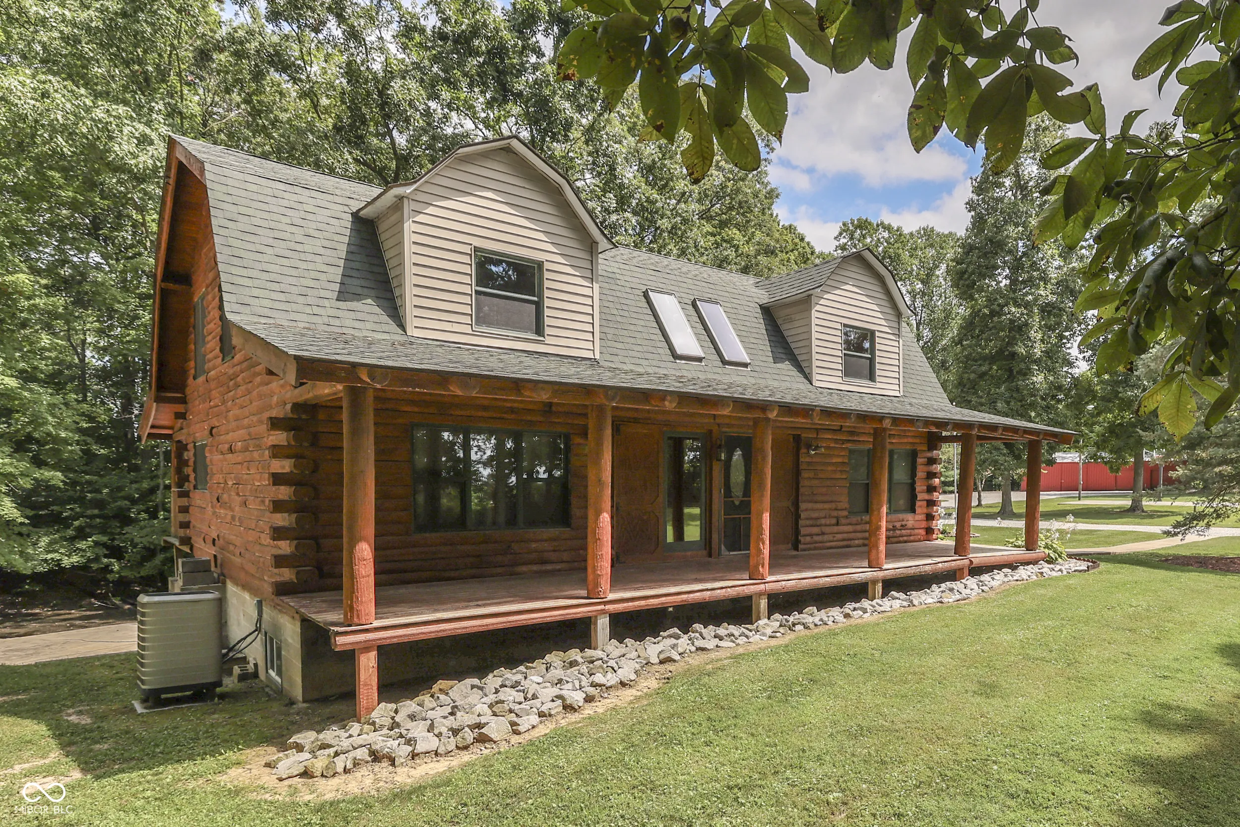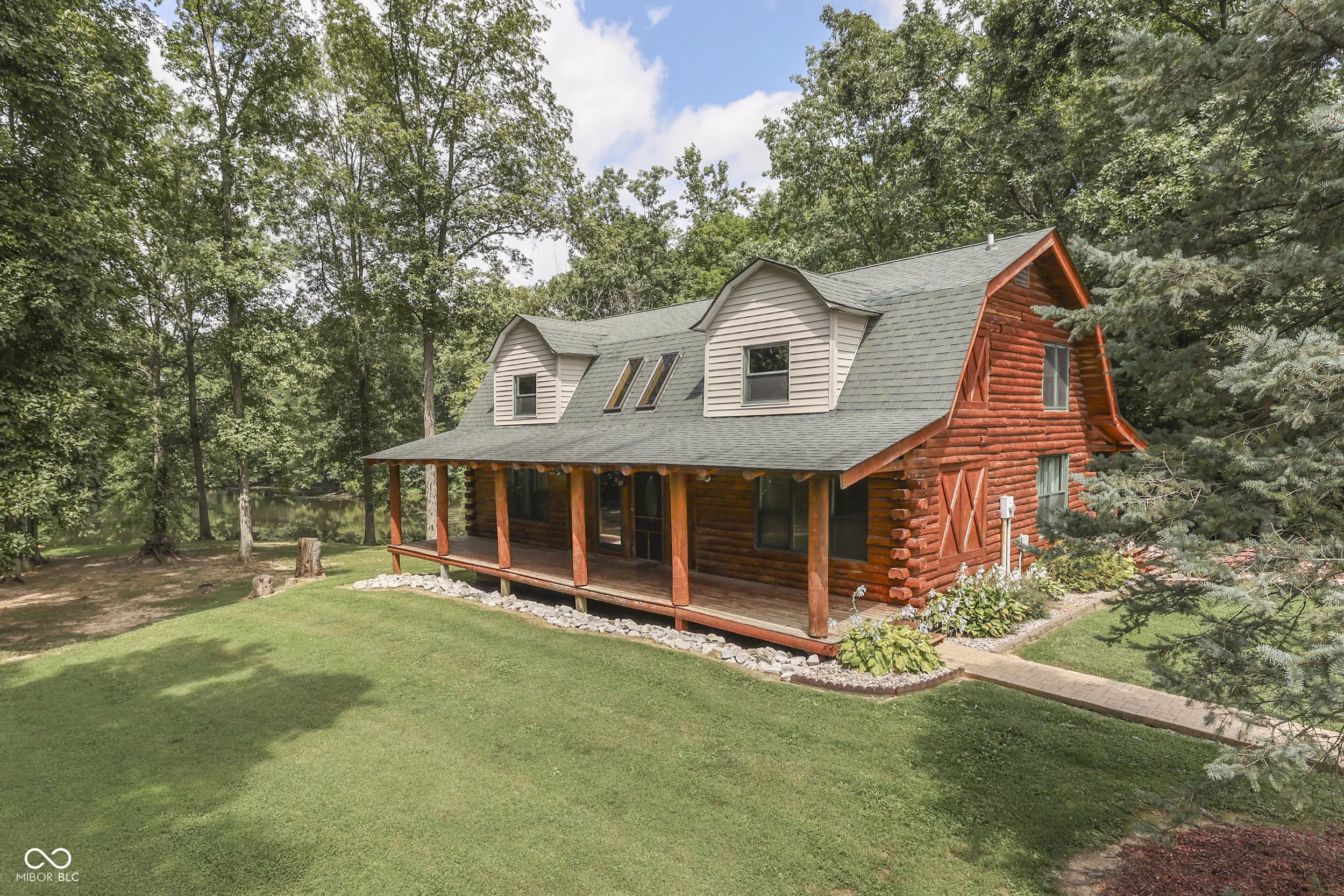 Imagine 2.33 manicured acres overlooking a private stocked pond with views of woods and country pastures. This is what you can experience every day in this striking 4 bedroom true log home with walk-out basement. The deep and spacious covered front and back porches are the perfect place to enjoy complete privacy, quiet nature sounds and beautiful, serene surroundings. A skylight lit great room welcomes you in to the open floor plan with well-appointed kitchen filled with counter space and cabinets. The breakfast bar is perfect for quick sitting or serving meals. The main level is completed with a primary bedroom/bath and laundry room. Upstairs you find family bedrooms, loft space and full bath. The walk-out finished basement is suited for family, theatre or recreational rooms. Home has been updated with many new features to provide years of low maintenance. A 1,500 SF pole barn sits across from the circle driveway and provides garage, work and storage space. Natural energy efficiency and low property taxes make a home and property like this not only desirable but affordable too!