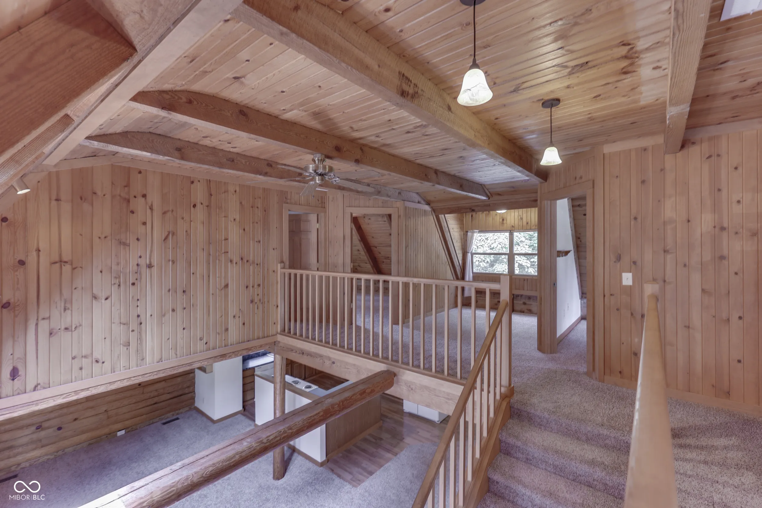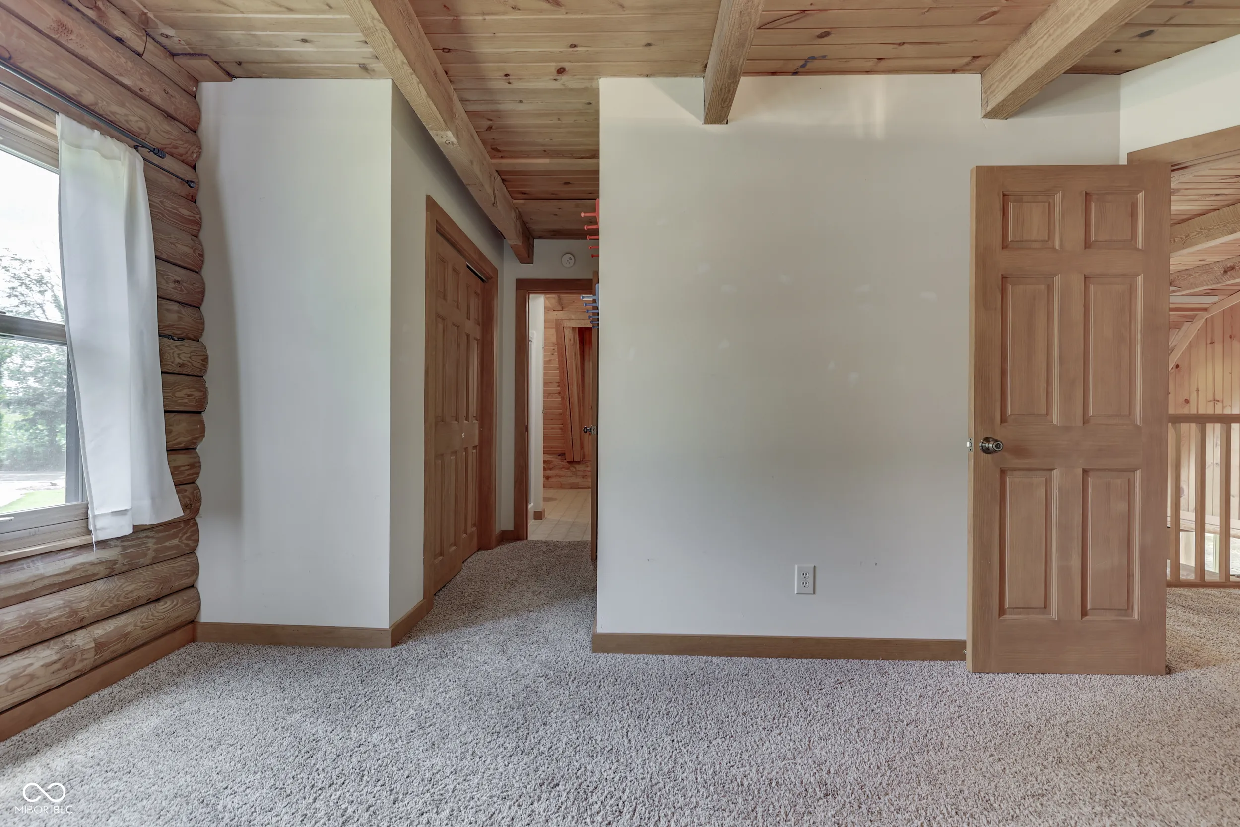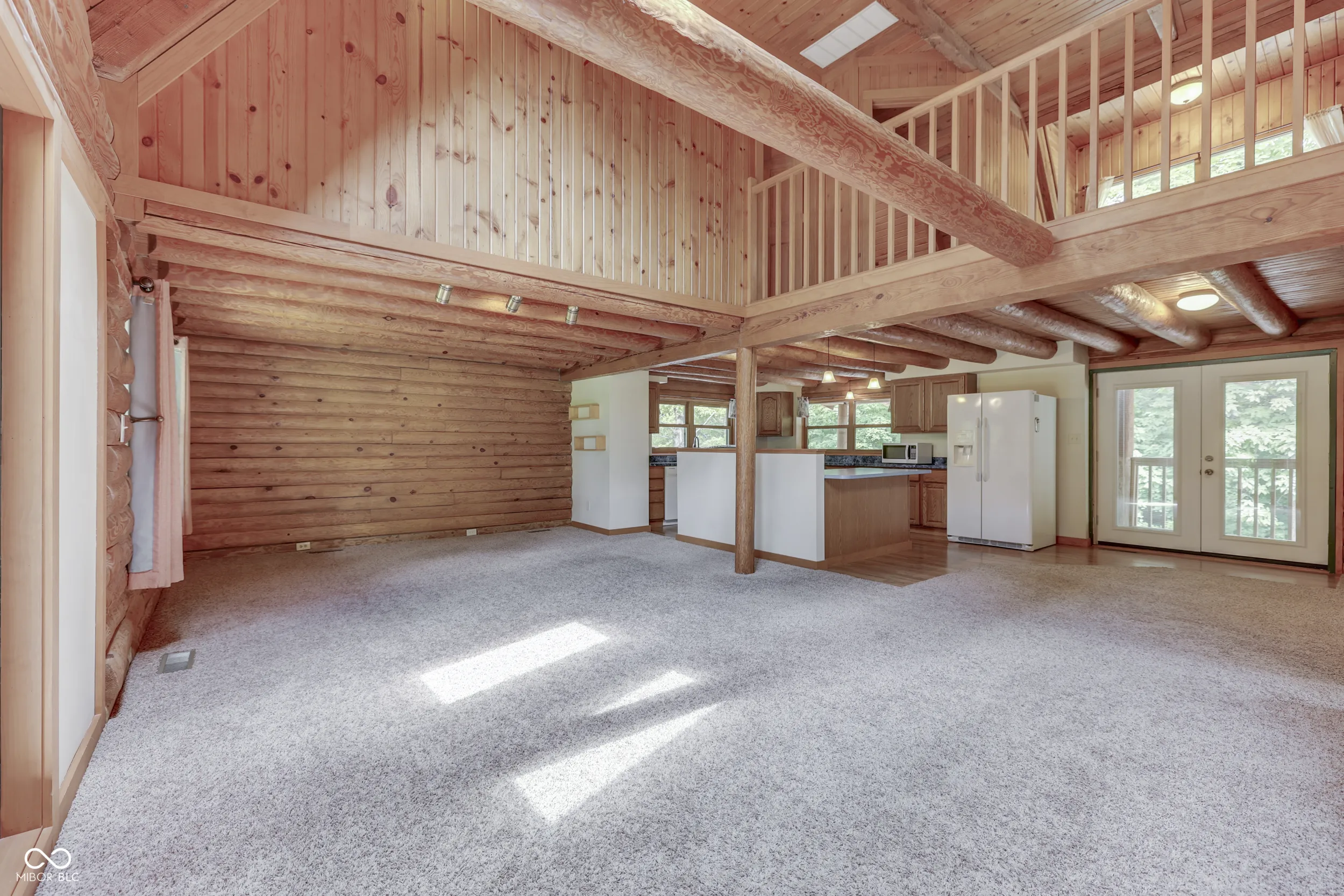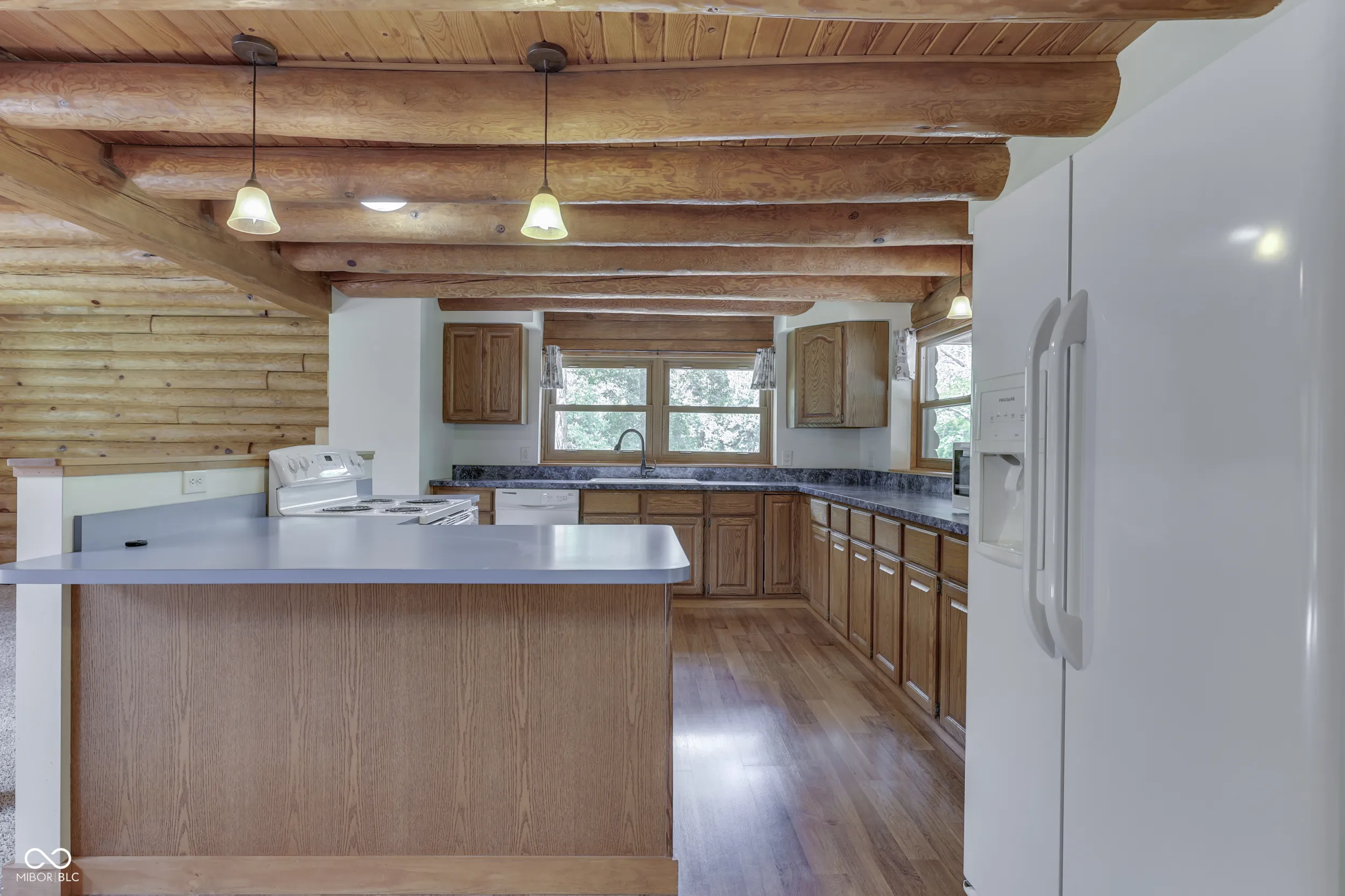Imagine 2.33 manicured acres overlooking a private stocked pond with views of woods and country pastures. This is what you can experience every day in this striking 4 bedroom true log home with walk-out basement. The deep and spacious covered front and back porches are the perfect place to enjoy complete privacy, quiet nature sounds and beautiful, serene surroundings. A skylight lit great room welcomes you in to the open floor plan with well-appointed kitchen filled with counter space and cabinets. The breakfast bar is perfect for quick sitting or serving meals. The main level is completed with a primary bedroom/bath and laundry room. Upstairs you find family bedrooms, loft space and full bath. The walk-out finished basement is suited for family, theatre or recreational rooms. Home has been updated with many new features to provide years of low maintenance. A 1,500 SF pole barn sits across from the circle driveway and provides garage, work and storage space. Natural energy efficiency and low property taxes make a home and property like this not only desirable but affordable too!