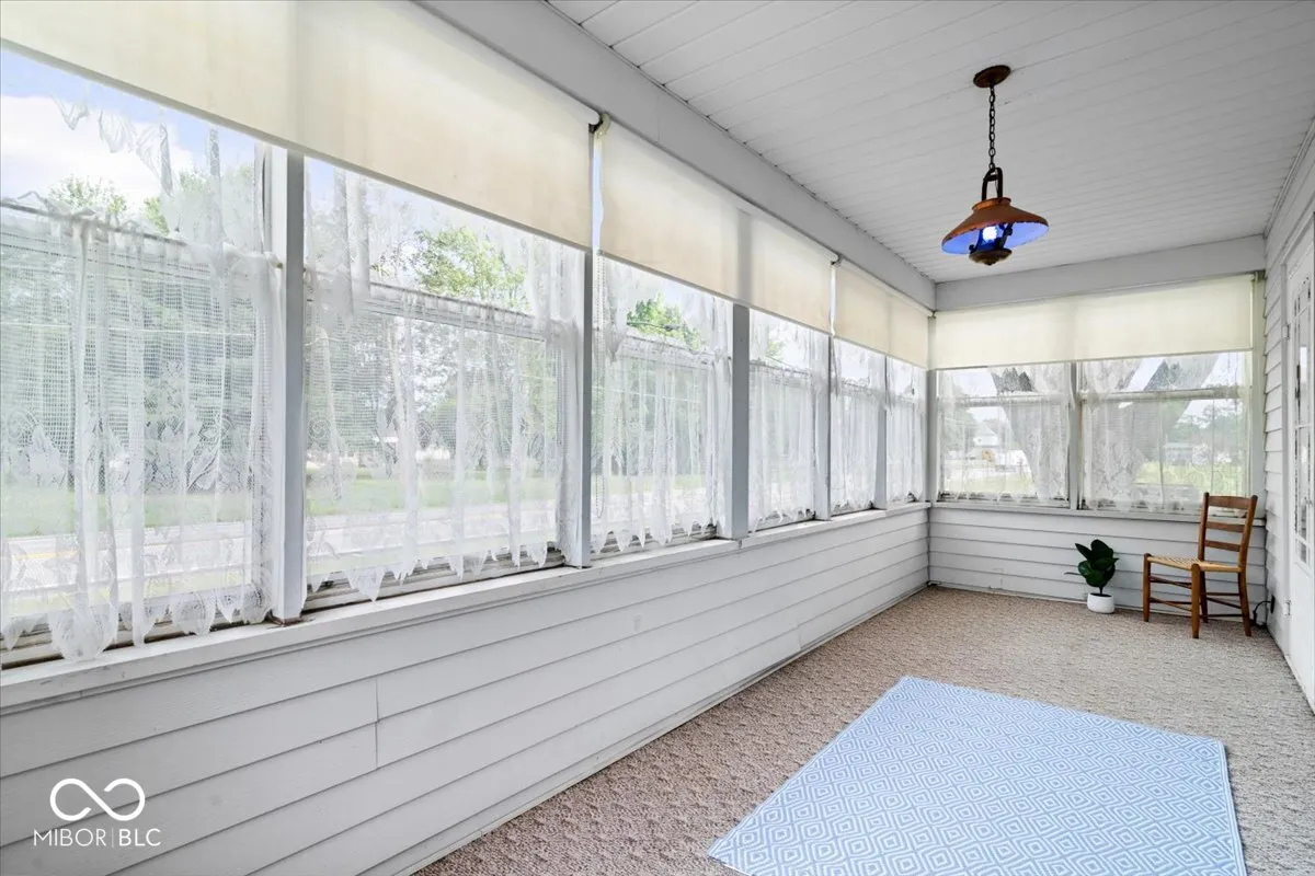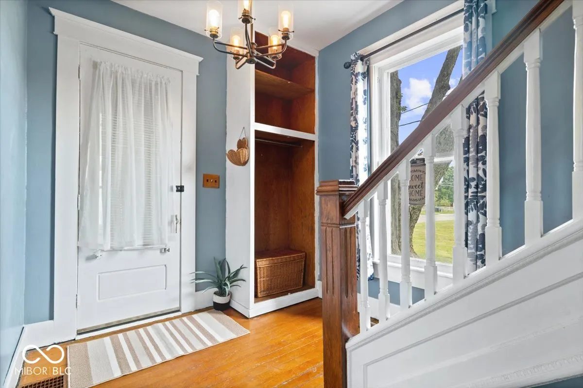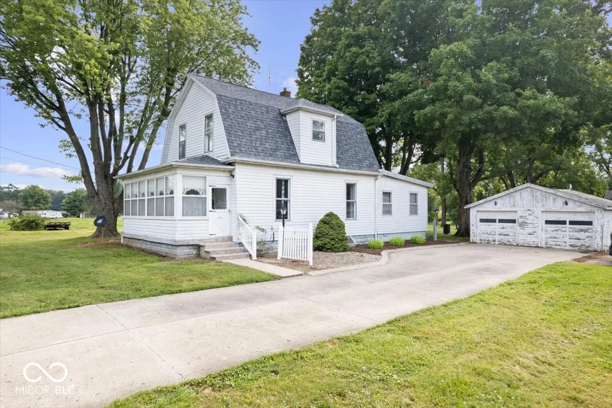 This charming Farmhouse sitting on a little over 5 acres may be exactly what you have been looking for! This 3 bedroom 2 full bath home is located in a convenient location within Daleville School district. 3+Tillable acres available (not currently planted) and 2+ acres around homesite and outbuildings. Hardwood flooring throughout, built in closets/storage, primary bedroom and laundry on main floor, updated Roof and HVAC within the last 5 years! Plenty of room for cold storage in basement along with a barn behind the garage! Relax in the enclosed sunroom and envision how you can make this property your own! Welcome Home!