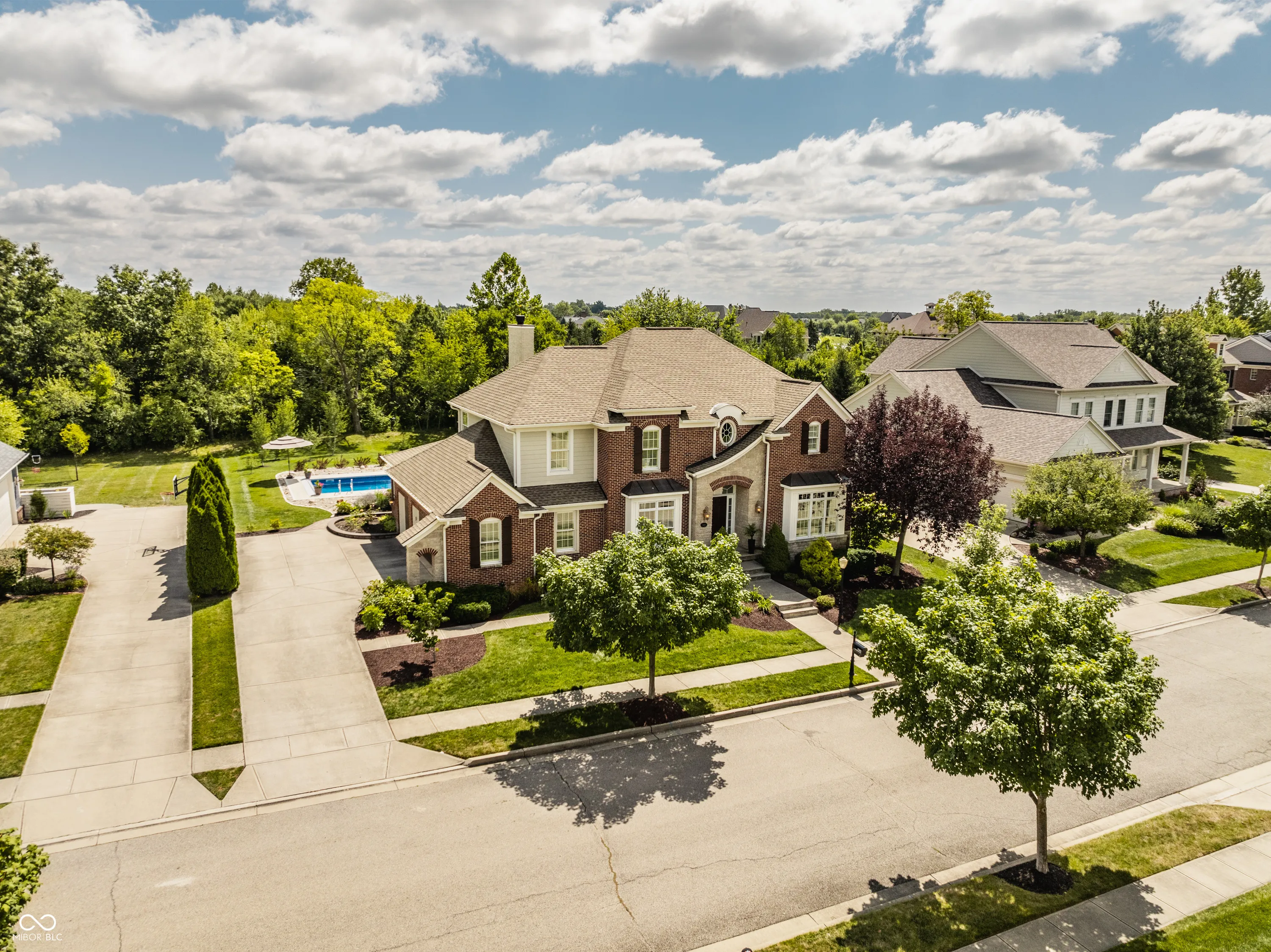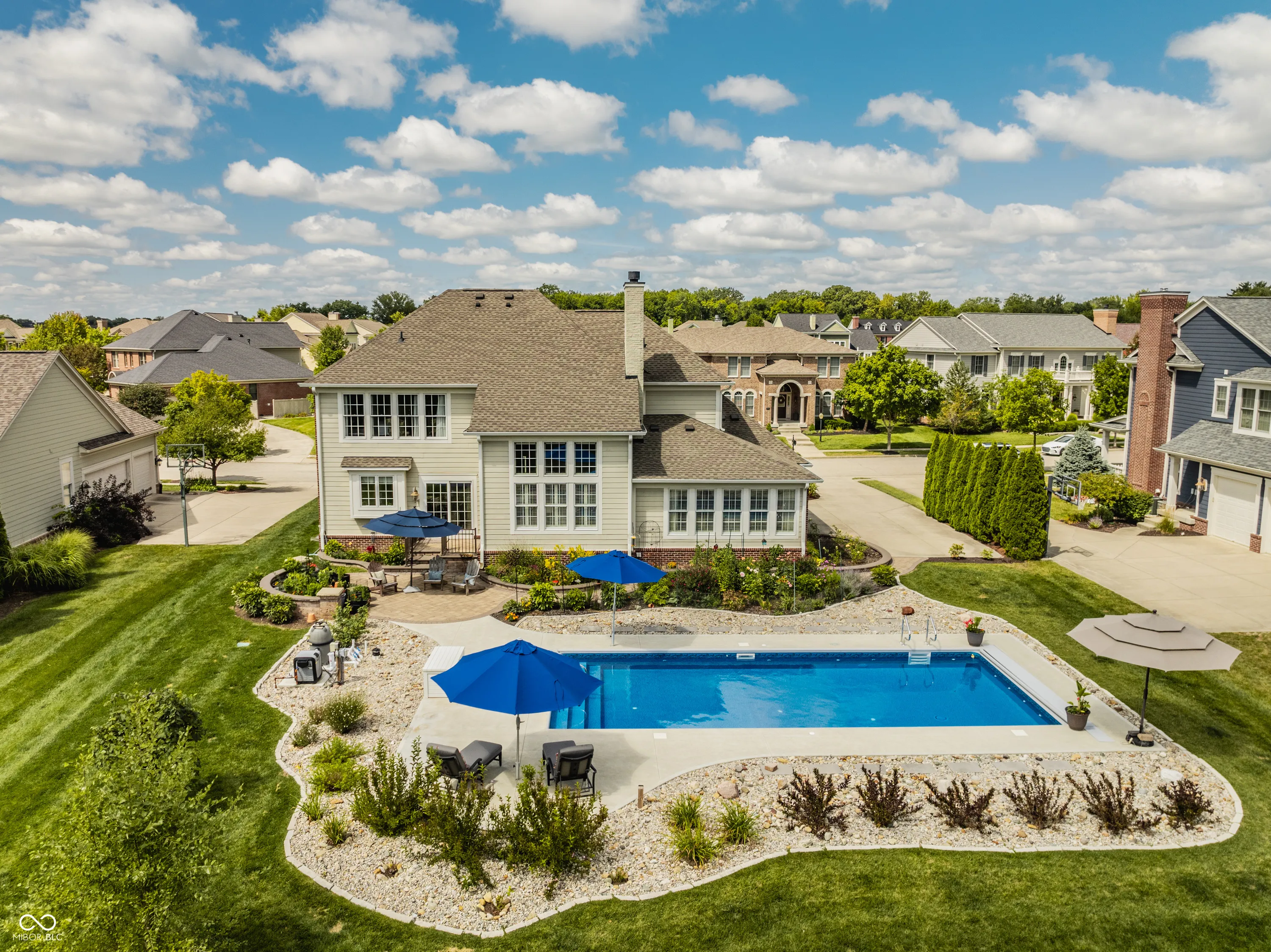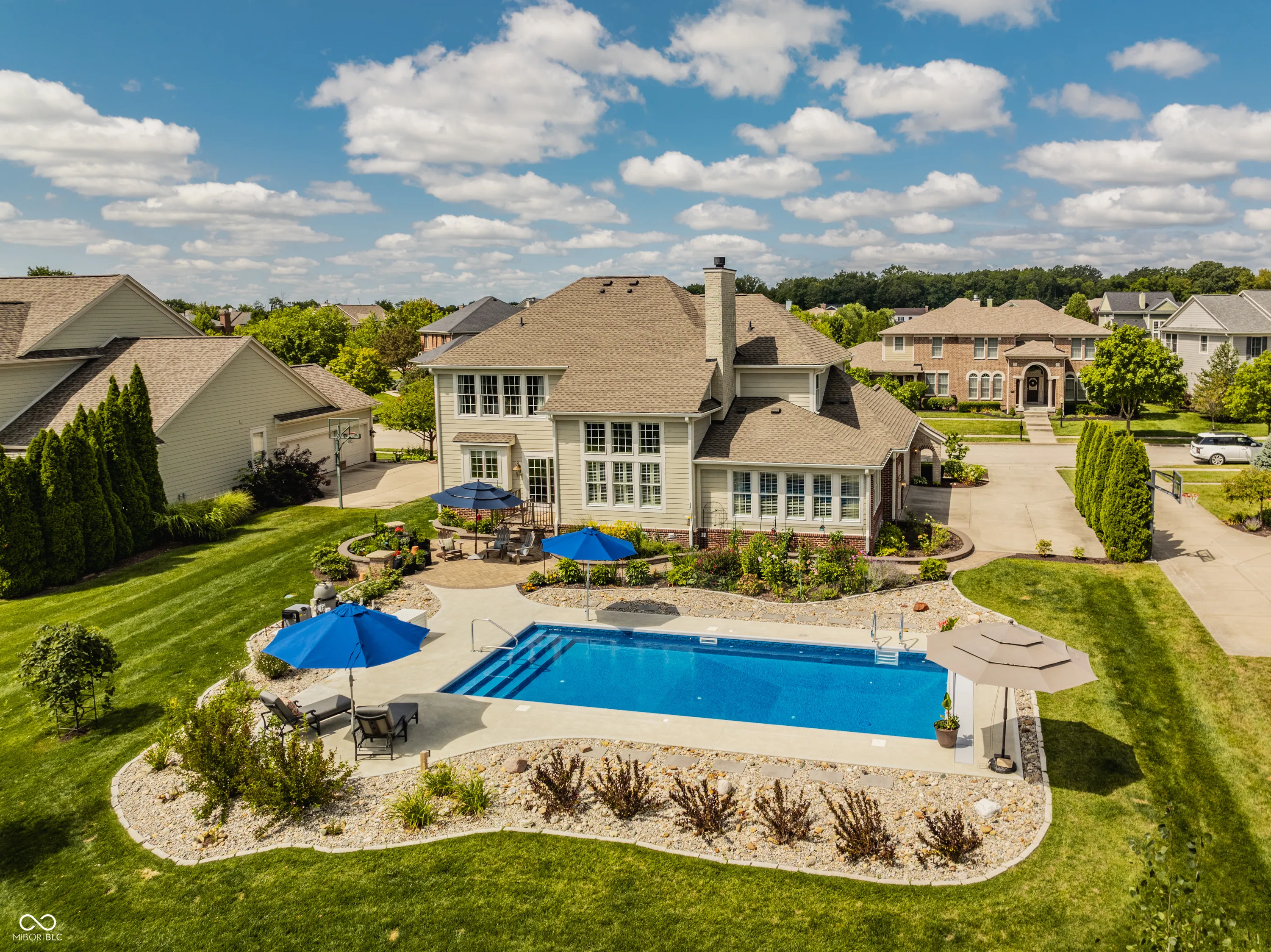 Resting on almost a half-acre in one of Carmel’s most sought-after neighborhoods, the Village of WestClay, this updated move in ready 4-bedroom, 2.5-bath home is a blend of luxury, comfort, and modern living. The newly renovated kitchen and heated pool with automatic pool cover are the stars of the show. The welcoming floor plan features a grand 2-story great room with a cozy two sided fireplace, perfect for gatherings, and an oversized 4-season room walled in ship lap and bathed in natural light year-round. The open kitchen is a chef’s dream, equipped with stainless steel Thermador and GE Profile appliances, including a double oven and gas range, and a spacious custom center island. This space has been fully renovated to include stunning granite countertops, oversized subway tile backsplash, a center island with cabinetry storage, an undercounter wine cellar, and a pull out trash bin. The kitchen also boasts a separate coffee/entertaining bar, adding convenience and style. Step outside to the breathtaking stone patio and pool area, a perfect setting for entertaining family and friends. The new heated 36×16 pool, featuring an automatic cover and self-cleaning system, is surrounded by a meticulously designed stone patio. This serene outdoor oasis is framed by stunning perennial gardens, showcasing 24 varieties of exotic peonies, and set against the picturesque backdrop of a beautiful, tree-lined backyard. The upper level boasts new carpeting throughout, a serene master suite, complete with a double vanity, a garden tub, a separate shower, and a walk-in closet. Three additional bedrooms and a full bath complete the upstairs living space, offering comfort and privacy for family or guests. The lower level is a full unfinished basement that provides ample opportunity for storage or future customization, for an additional recreation area, theater room, playroom, 5th bedroom, home gym, flex space, and is plumbed for an additional bath.