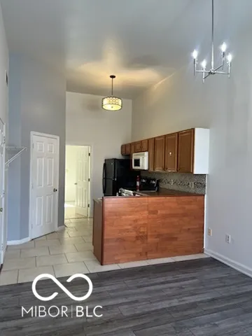 Charming one-bedroom, one-bath condo with 12-foot ceilings, offering an open and airy feel. The modern kitchen features a convenient breakfast bar and built-in storage. The unit includes an in-bedroom washer and dryer for added convenience. Enjoy access to a shared courtyard, perfect for relaxing outdoors. Situated downtown, just a short walk from the Indiana University campus, this condo is ideal for student renters seeking a prime location.