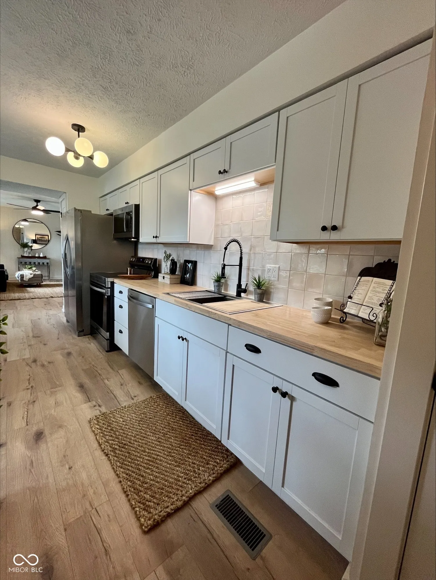 Another House Real Estate Project, the 3 Bedroom is a gem! A remodeled 1038 square foot ranch with new exterior look, new board and batten, fresh front exterior paint, new shutters, flower boxes, all new landscaping, new walkway, new full wood privacy fence. Interior offers a complete kitchen remodel, new kitchen cabinets, countertop, designer backsplash, chefs sink/faucet, and new wide plank flooring in kitchen, dining area and living room. New stainless appliances. Living room and master bedroom offer a designer feature wall. New front windows, all new custom trim, casings, doors, and hardware, all new lighting, new carpet. 1.5 Baths completely remodeled, new tub, subway tiled shower, vanity/top faucets. Fresh new paint throughout wall/ceiling. New outlets and switches. Shed in backyard. All new gutters & downspouts. Furnace & AC new in 2022. Act Fast! So nice. Owner is listing agent.