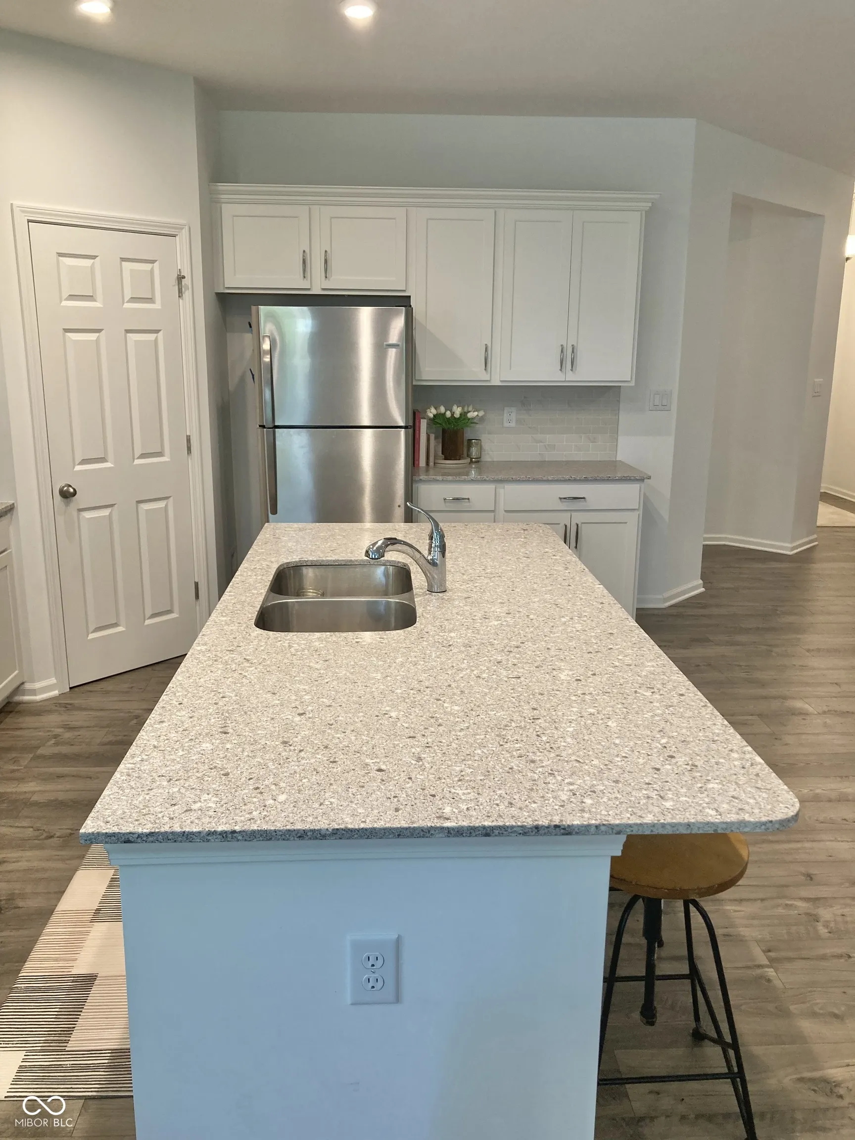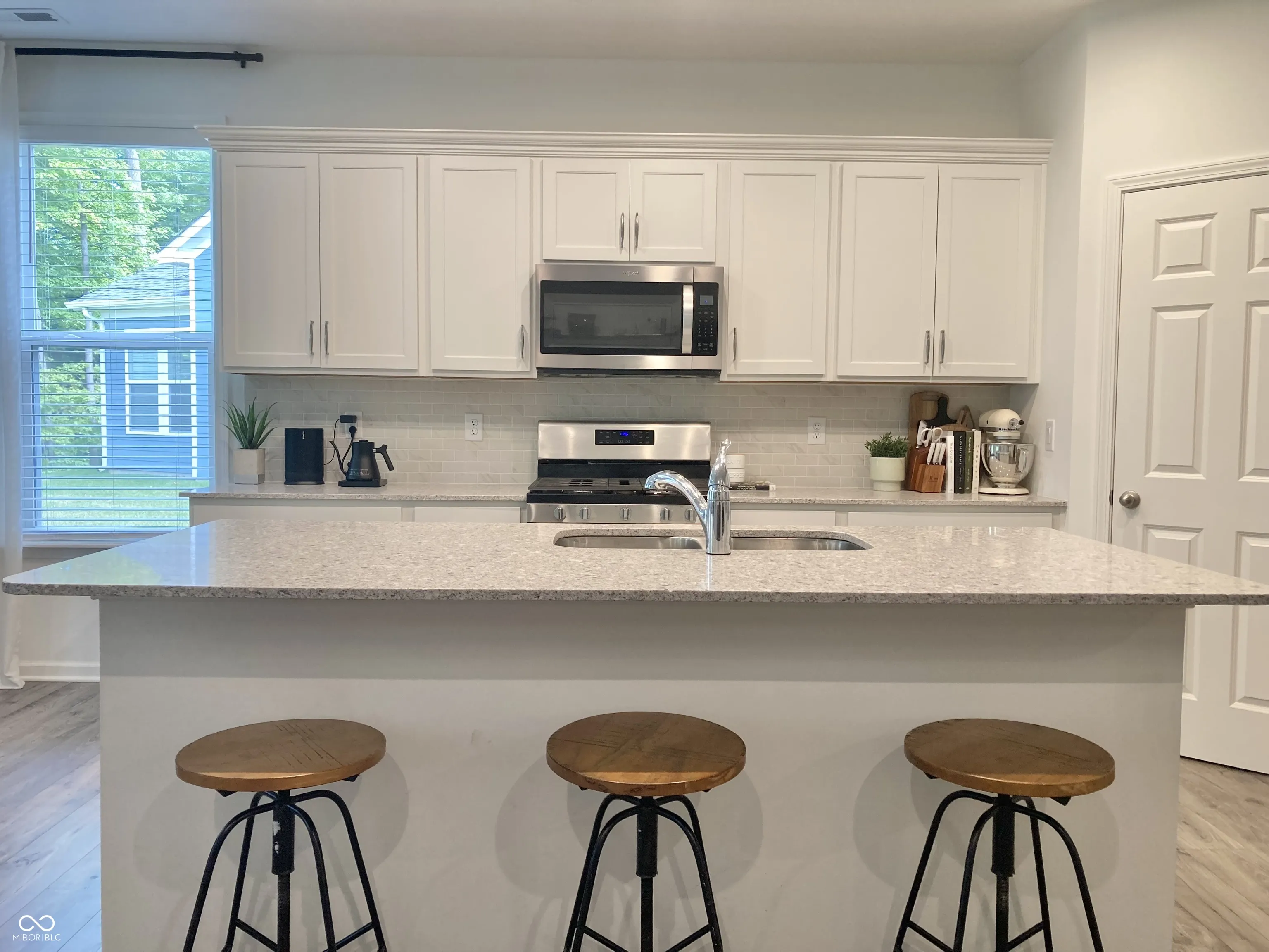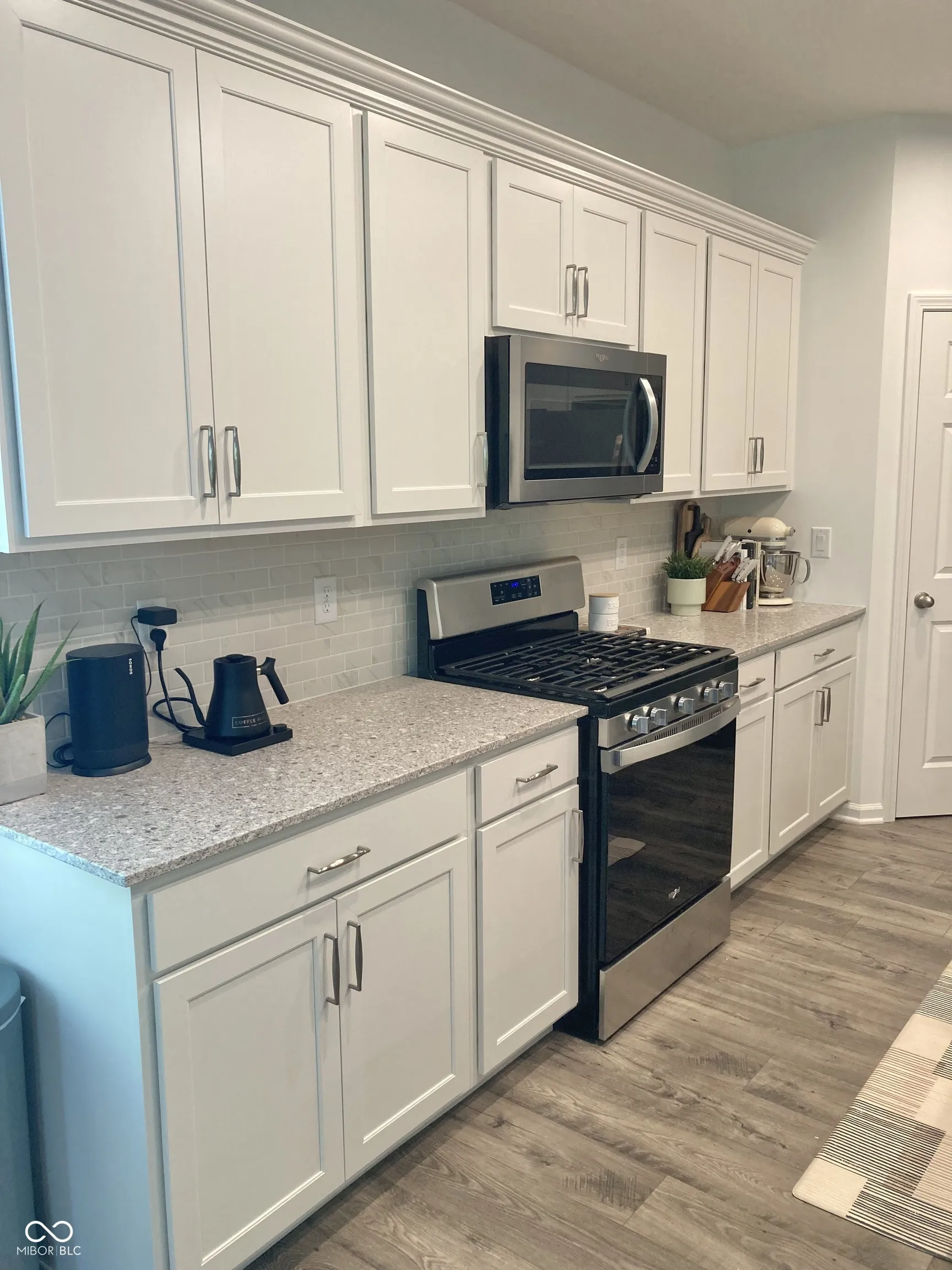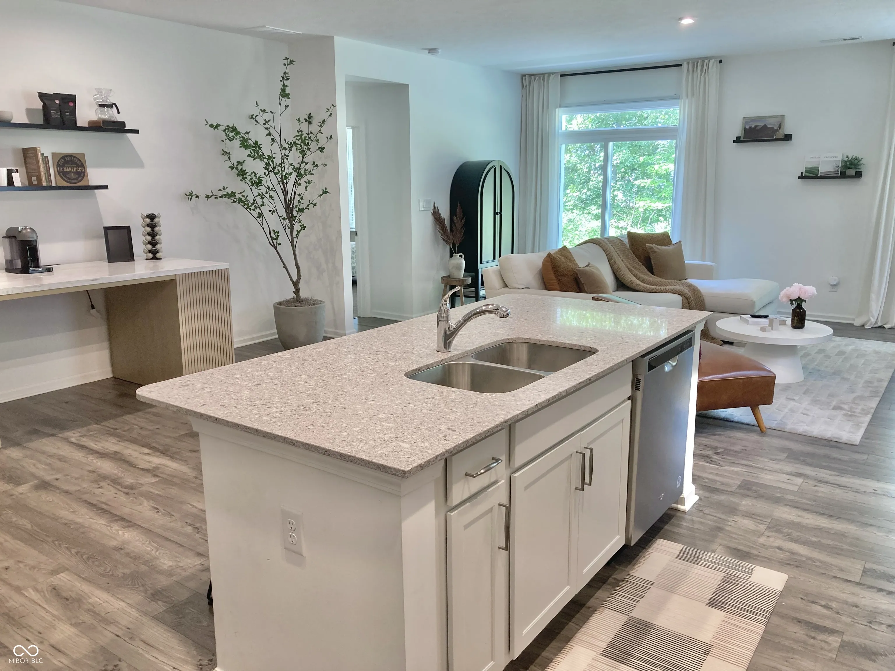 Immaculate duet home w/ an open kitchen/dining/living area, recessed lighting & LVP flooring throughout; large kitchen island w/ breakfast bar seating, granite countertops & stainless-steel appliances; split bedroom floor plan includes a primary bedroom suite w/ dual sink vanity, walk-in shower, & walk-in closet, as well as a 2nd bedroom adjacent to a guest full bathroom and linen closet. Features also include a spacious laundry room with storage shelving, covered front porch, and a private back patio overlooking a dense line of trees. NOTE: Currently leased to a tenant paying all utilities & $2,170/month rent; subject to tenant’s rights through JAN 2026.