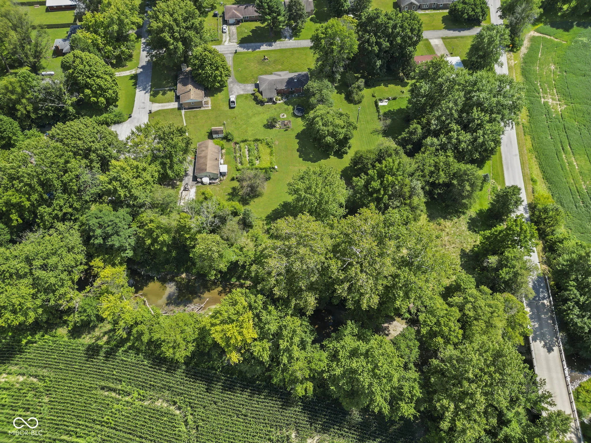 This charming home sits on 4 lots which total 1.57 Acres. Hardwood floors, a stone fireplace and open living, dining and kitchen areas will get you started. Updates that you will appreciate: Roof-10 +/- years, New Water Heater and Furnace which is 15 +/- Years old. Amazing space outside running all the way to the creek and the side yard all the way East to the Utility Pole. A fenced garden area, lots of space to design as you like. All of this can be enjoyed from the deck or the glass enclosed porch at the back of the garage. The peace and quiet is within reach. Come check out this gem of a property.