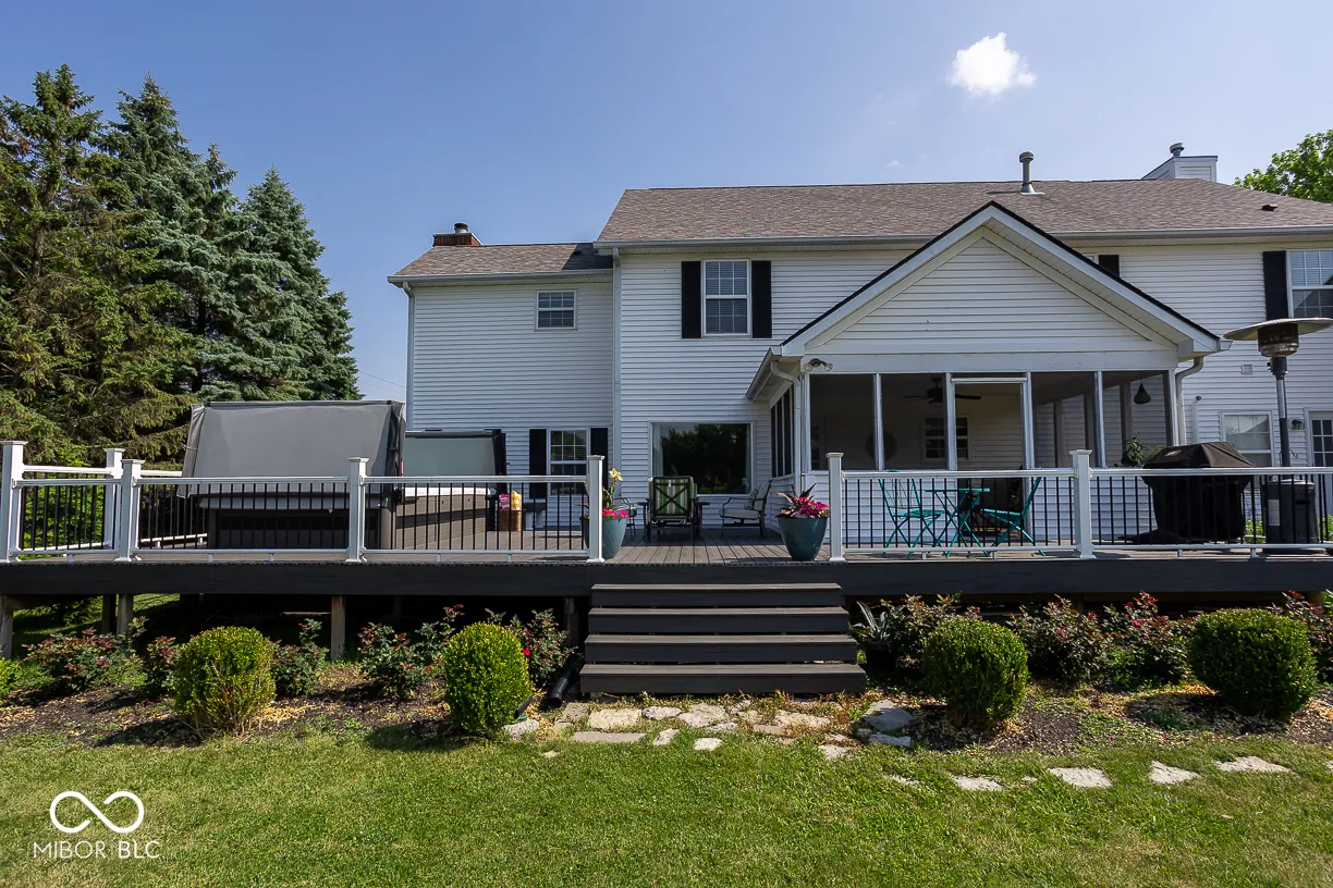 This stunning 5-bedroom, 4-bathroom home seamlessly combines luxury and functionality. The main level features a gourmet kitchen with stainless steel appliances, a large island, and a separate formal dining area, perfect for entertaining. The great room boasts a cozy gas fireplace, while an office space and guest bedroom offer convenience. A huge pantry and mud room round out this level. Upstairs, the expansive Owner’s Suite is a true retreat, complete with vaulted ceilings, a fireplace, and a sitting area. The walk-in closet includes a built-in system, and there’s additional space for exercise or storage. The on-suite bathroom is a spa-like oasis with a double vanity, shower, and separate bathtub. Three more guest bedrooms, two full bathrooms, and a large open loft area provide ample space for family and guests. A conveniently located laundry room is also on this level. The finished basement is ideal for play and entertainment, while the beautifully landscaped backyard, complete with mature trees and plants, offers a serene setting. Enjoy year-round relaxation on the large composite deck, featuring a swim spa. With pond views and a spacious backyard, this home is a perfect blend of elegance and comfort. The 4-car garage provides plenty of storage space for all your needs.
