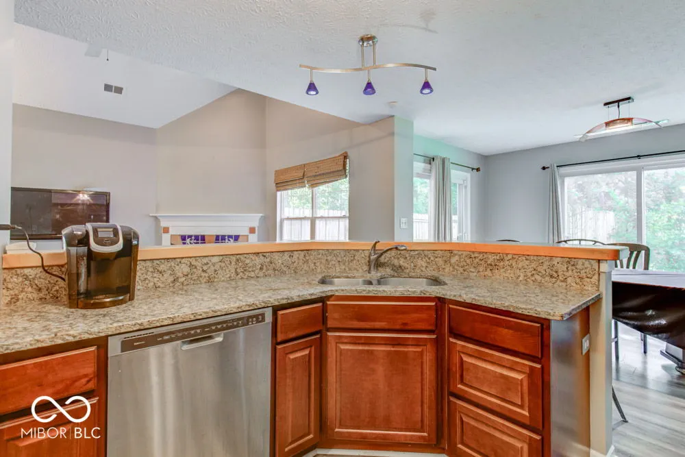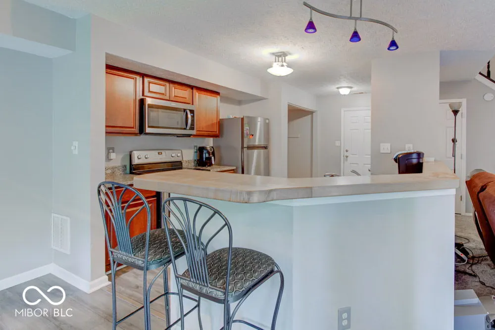 Welcome Home to this adorable 3 bed, 2.5 bath home located in desirable Gardens North. This home is situated in a private serene area at the end of the cul-de sac. Enjoy the wood burning fireplace located in the spacious great room. The open kitchen and dining room area gives an open concept feel which is perfect for entertaining. Two patio windows off the dining room area allows for plenty of natural lighting. Home is well loved and has a boast of updates throughout. Kitchen cabinets 2023, Carpet 2021, Vinyl plank floor on the first level 2023, Water heater 2023, Skylight window in 3rd bedroom 2023, Winterization install in attic 2022, and New roof 2023. All stainless steel kitchen appliances included. Great location! Just minutes away from I-65, I-465 and a short commute to the Park 100 area. You will not want to miss out on this one!