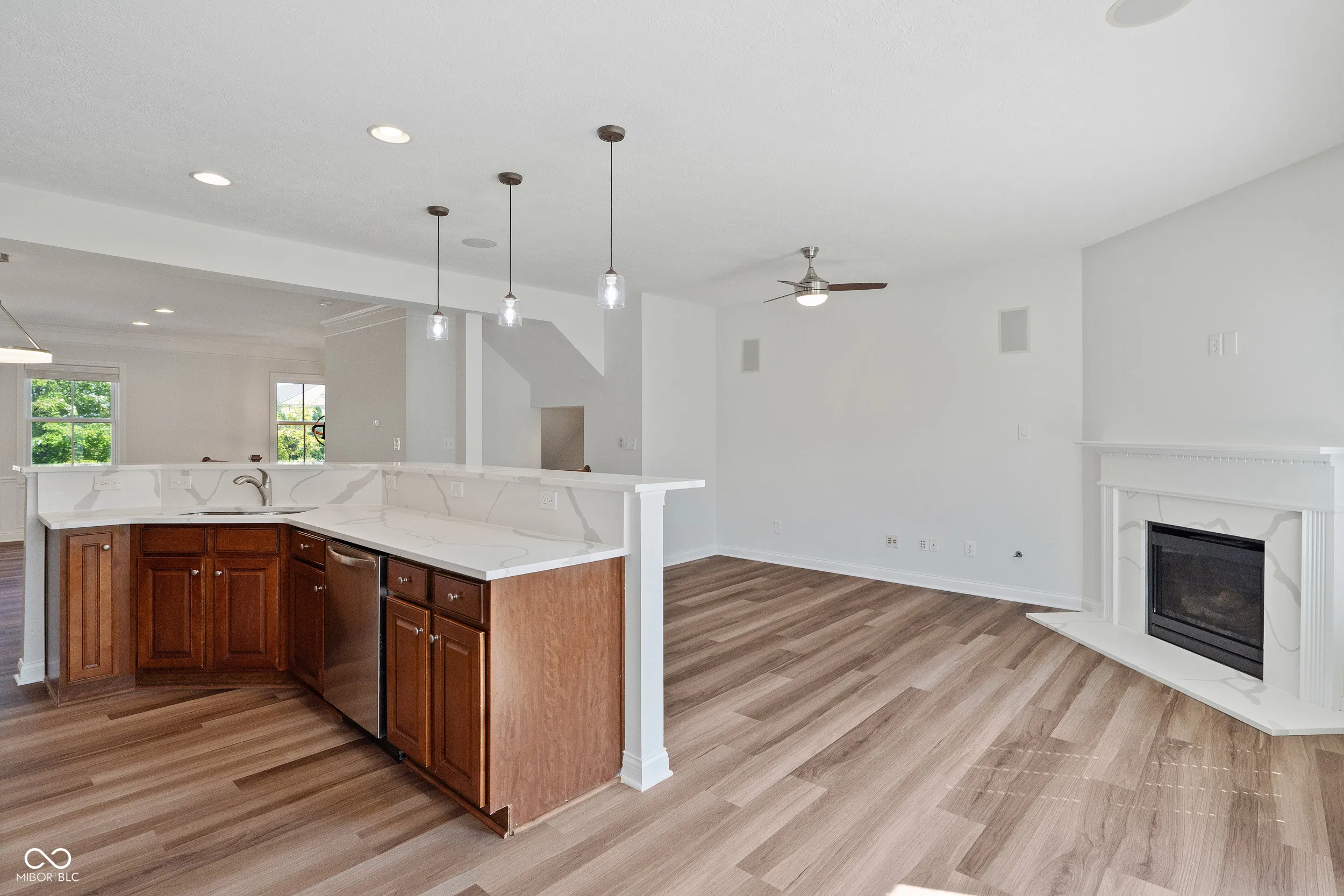 Enjoy great living in one of the biggest Townhomes in the Village of WestClay. New Carpet, Paint, Lighting Fixtures, and Quartz makes it seem better than brand new! Take in the views from the covered Front Porch of Ronald Regan Green site of numerous concerts over the summer and other numerous events. Grand entry through metal double doors with a spacious ground level room that can be used as an office, media room, or even hobby area. The upper main level has nice looking Luxury Vinyl flooring and is open concept living. There are 2 living areas with a gas log fireplace in one and a dining/ living area in the other … however, there are numerous ways someone might configure. The Kitchen has stainless appliances including a full-sized double oven, smooth-top cooktop, Refrigerator, Dishwasher and new Quartz Countertops / Undermount Stainless Sink. Bedrooms are on the upper floor as well as the laundry. The bedrooms have Fans and all new carpeting. The baths have new Quartz Countertops as well. This home is move-in ready and there is no yard work or snow shoveling. Take advantage of the wonderful amenities throughout the Village of WestClay and it’s a short stroll to pool, tennis, pickleball, basketball, baseball and even CVS! Plenty of guest parking in front as well as almost like having your own park right outside your door. Lock and leave your troubles behind and love living in the Village of WestClay.