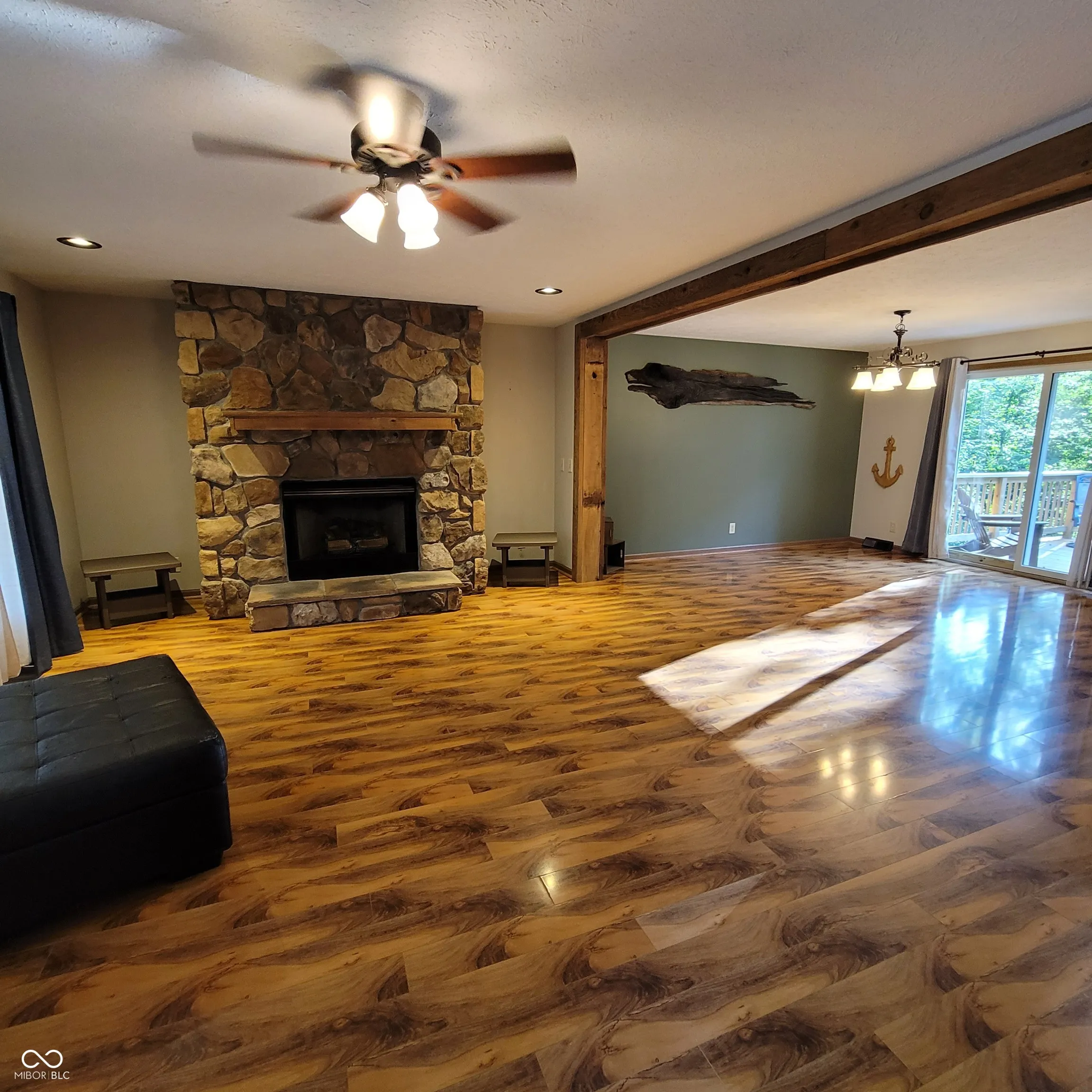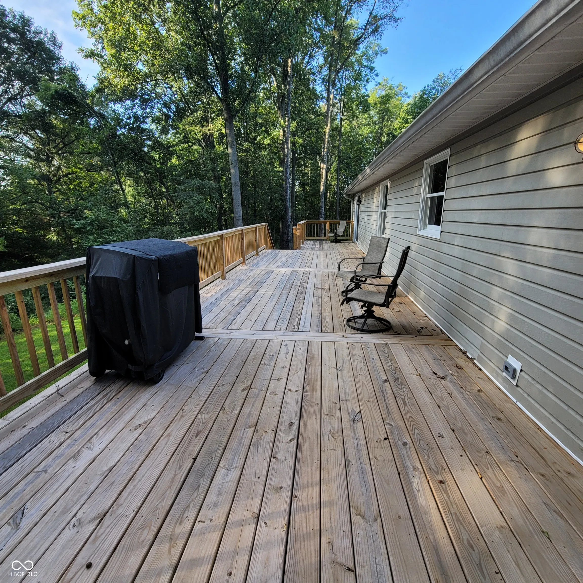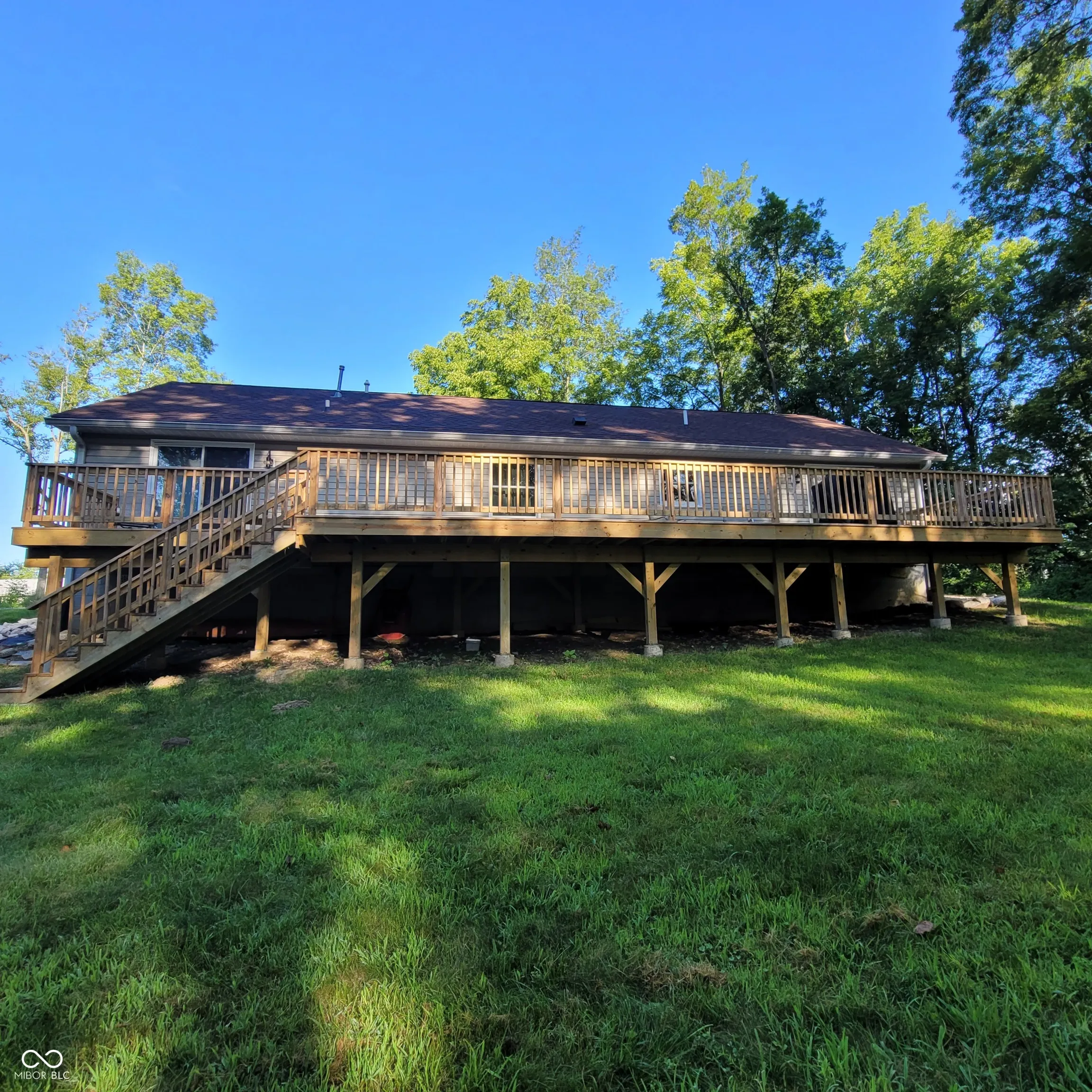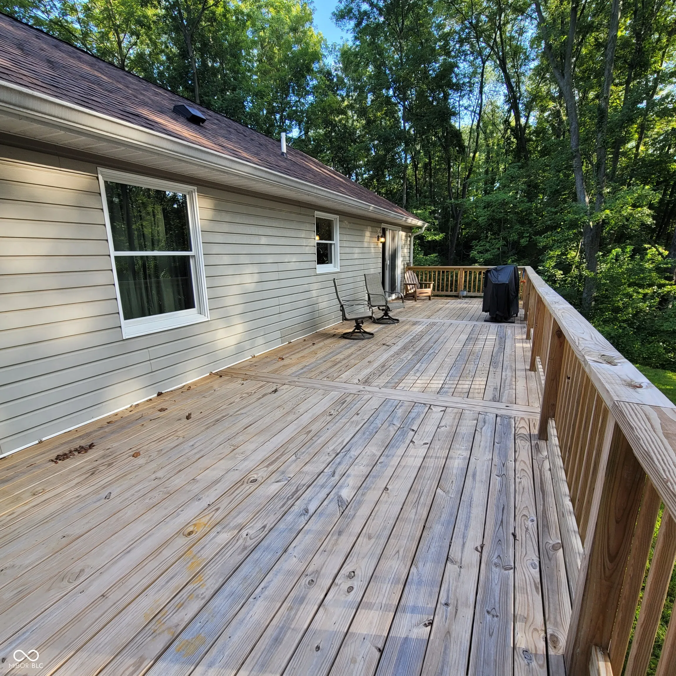 Don’t miss this one! Well maintained 3 bedroom 2 bath home sitting on 2 lots. This location is perfect! Close to the clubhouse and beach. Walk in to the open living and dining room with a gas log fireplace. Primary bedroom suite offers a walk in closet, sliding doors that go out to the large new deck built in 2023, double sinks in the bathroom, jetted tub and separate shower stall. Guest bath updated in 2023. A second set sliding doors in the dining area go out onto the deck with a serene secluded backyard with a firepit area and woods with no one able to build behind you. Heated oversized garage with a rubber tile floor. Large front yard with mature trees and a stamped concrete front sidewalk.