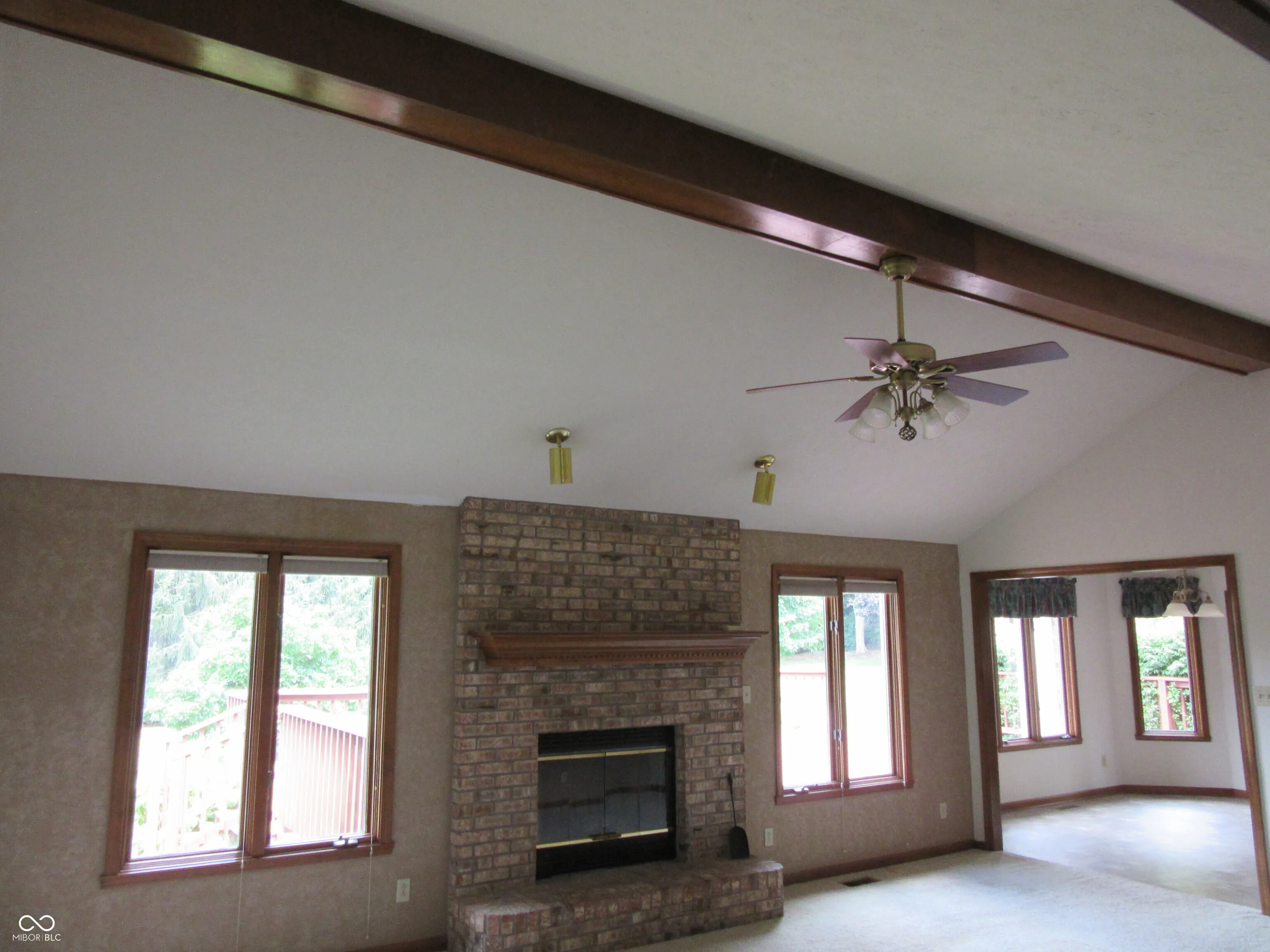 Very desirable Silver Springs Ranch and tucked back in on a large .4 acre lot with beautiful huge maple tree right in the front yard and the super sized party deck is 36 ft. wide by 25 ft. deep in the beautiful backyard. Both covered front porch and a sunroom to relax on. Large 12×7 ceramic entry foyer with elevated wood trimmed ceiling. Great room with beamed cathedral ceiling and a cozy fireplace. Center island kitchen with loads of cabinets which have 8 pull out drawers plus a pantry and newly installed stainless 28.7 LG refrigerator plus new Panasonic microwave. JennAir downdraft cooktop plus built-in oven. Primary bedroom has a cathedral ceiling, ensuite with spa tub 2 separate vanities and shower plus 6×9 walk-in closet. 2nd bedroom has a special ceiling with circle head window and walk-in closet. Nice sized 3rd bedroom with spacious closet. The entire home has beautiful wood trim and 6 panel doors. Oversized garage has 2 spacious storage closets. The 3 bedrooms, great room, dining room, formal entry, and bedroom hallway have all just been painted. The deck has been power washed and restained with 2 coats. New faucets in kitchen and laundry room. New light in laundry room. 3 windows were just professionally rebuilt, caulked and trim painted. The front maple tree was professionally trimmed in 2023. The furnace and air conditioner were replaced in 2019. The garage refrigerator and sunroom tv remain unless excluded by purchaser’s offer.