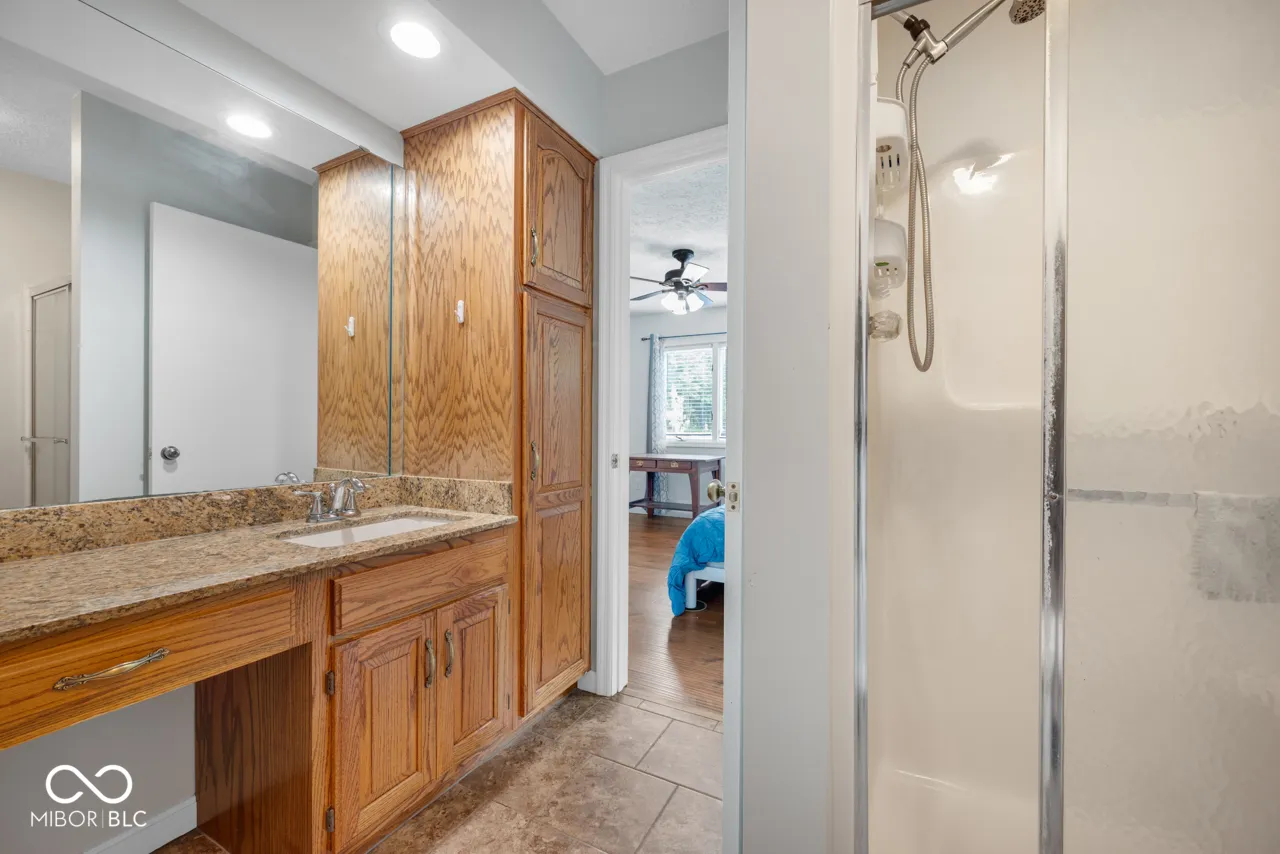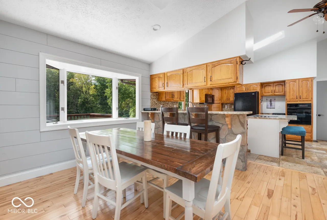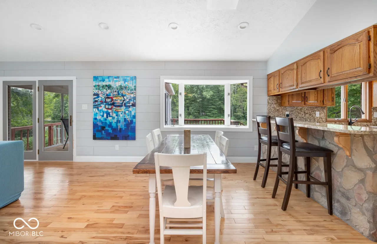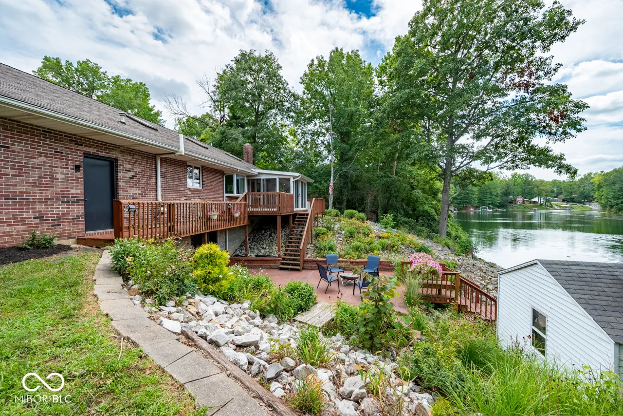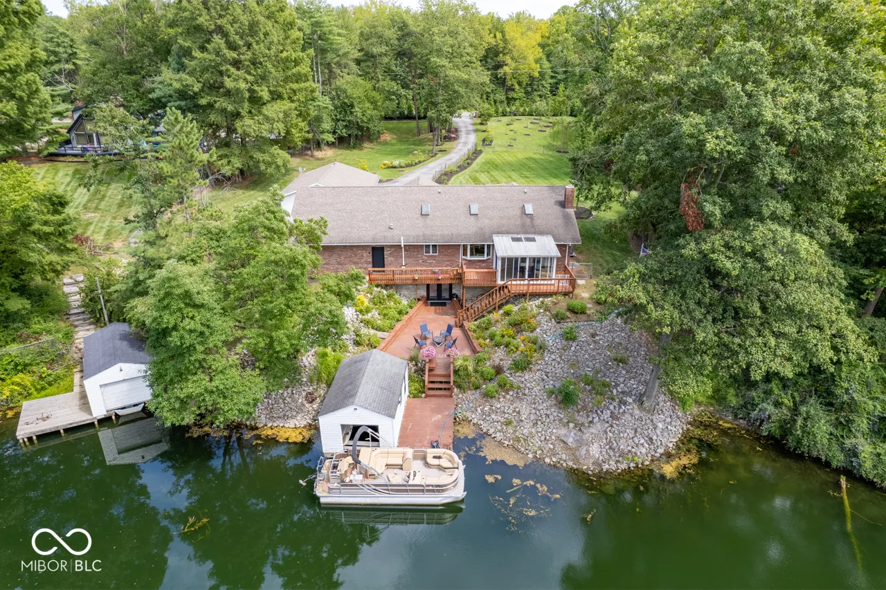 Waterfront home with great views. 2,800 square foot ranch with two bedrooms on the main floor and two bedrooms and a den in the walkout basement that goes out to the lake. The den can be used as a fifth bedroom. The house has vaulted ceilings and beautiful hardwood floors, an electric fireplace, and updated kitchen with granite counters and copper farm sink. There is a second full kitchen in basement, along with a family room. There are two bathrooms on the first floor and one bathroom on the lower with a two car attached garage and two car detached garage with separate workshop. The home has a whole house generator, a brand new water heater, and a brand new furnace and a/c. The sunroom on the first floor and the lower level walkout landing both have 180 degree views of the lake. There is a dock and boat house with plenty of storage. A South Bay fishing pontoon is at the dock and is included. Fox Lake is private and there are no public boat ramps. The owners planted 80 trees and the yard is full of perennials.