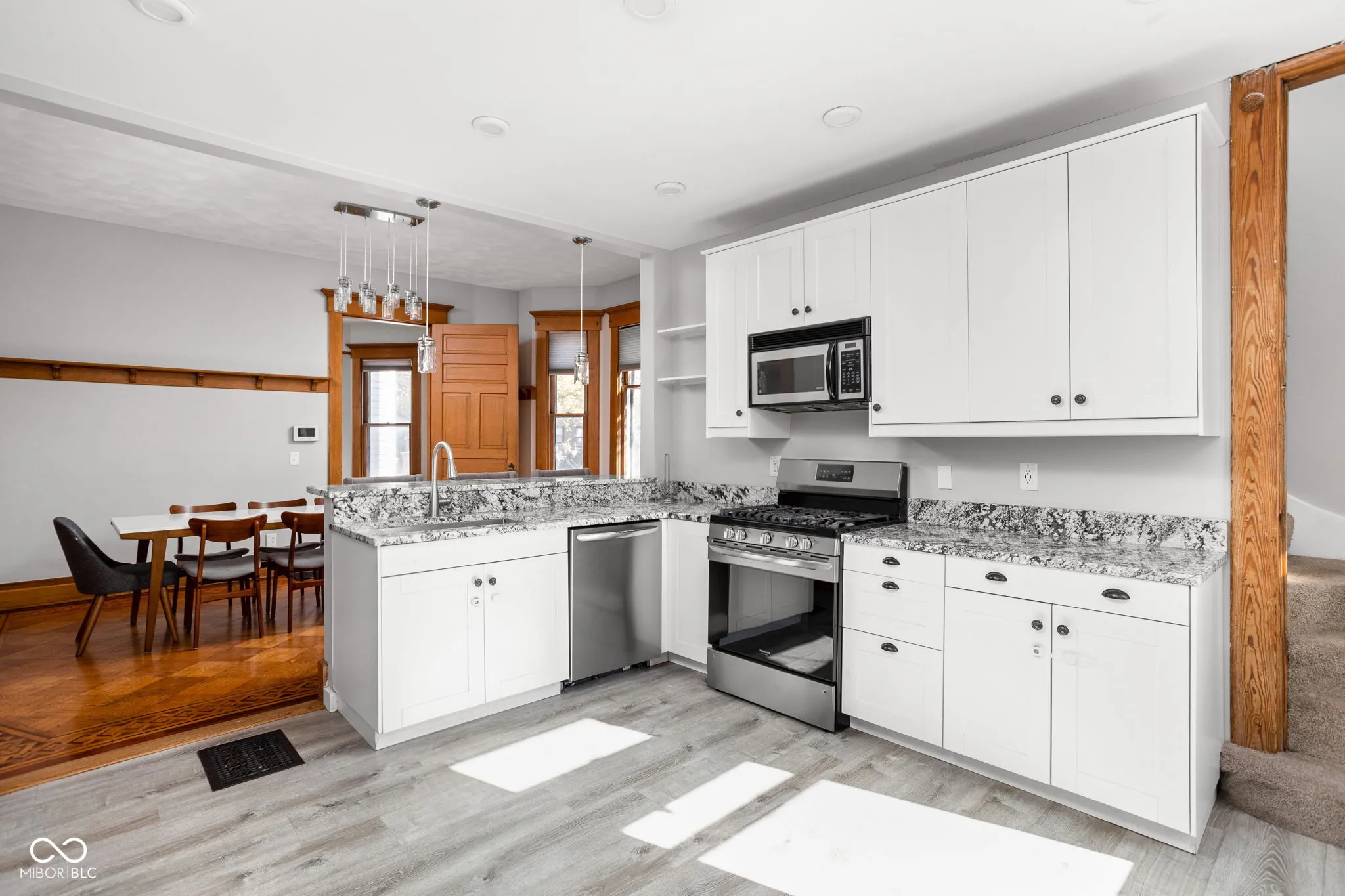 317 – 319 E 13th Street. Oversized Duplex AND Lot available in the Old Northside. Many original historic features remain. 317 E 13th St is 4 bed, 2.5 bath and rented through November 30, 2024 at $2200/mo. 319 E 13th St is 3 bed plus bonus room, 3.5 bath rented through 12/31/2024 at $2350/mo (with tenant option to extend 1 year) Tenants rights in place. 317 has similar features, an additional bedroom, but has not been renovated aside from the 2nd floor full bathroom. Each unit is ~3100 sqft. To be sold with the adjacent lot at 1248 N New Jersey St, BLC #21995884