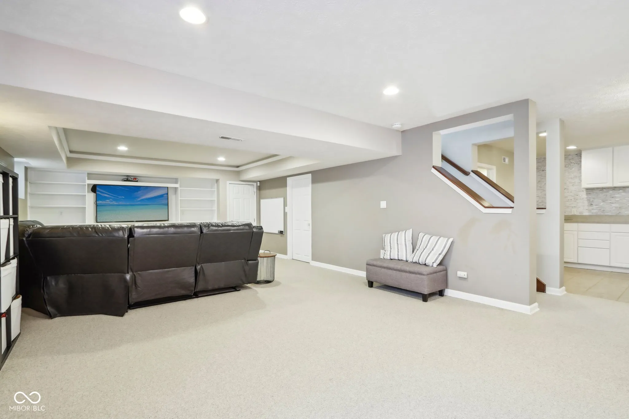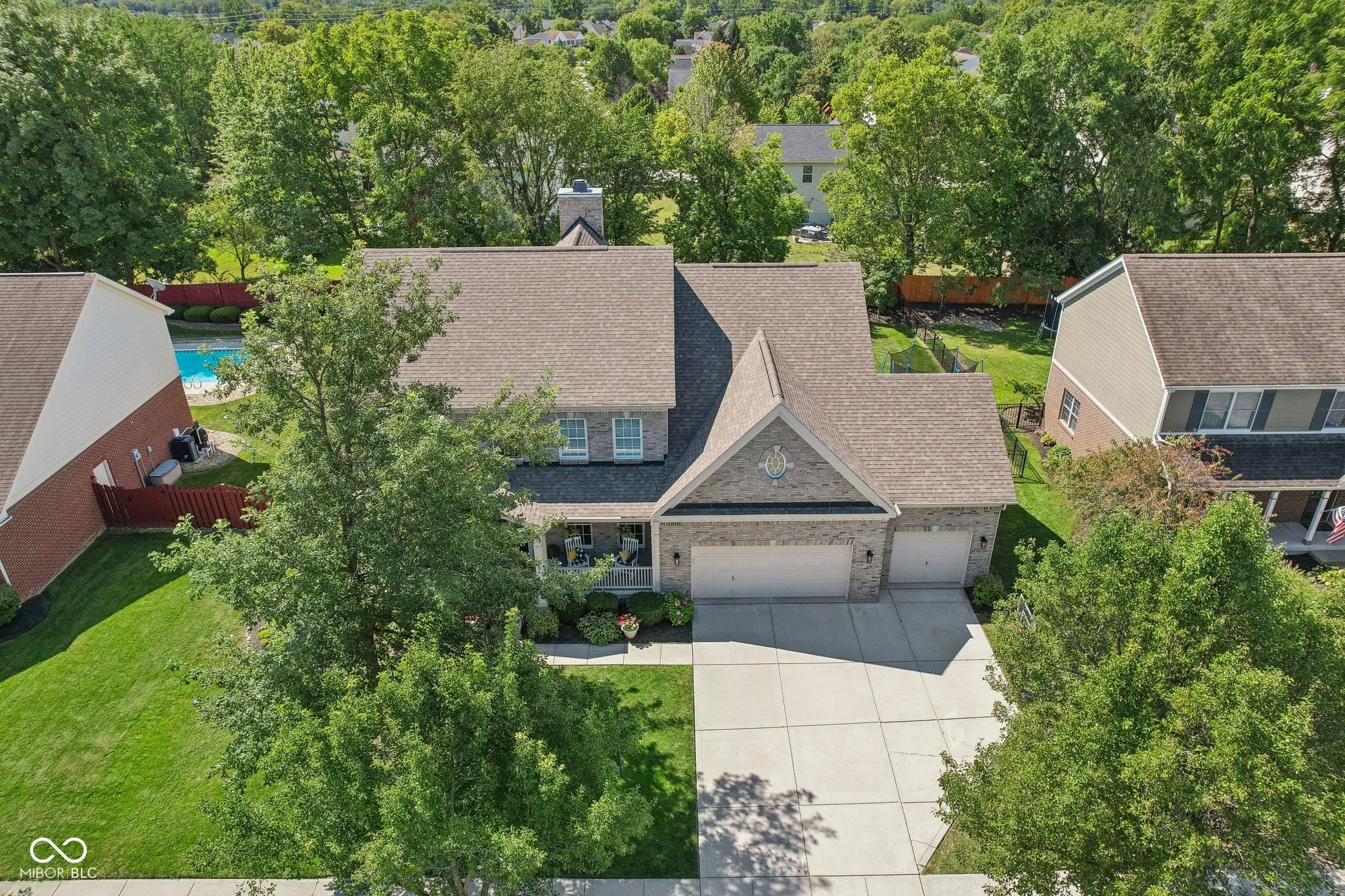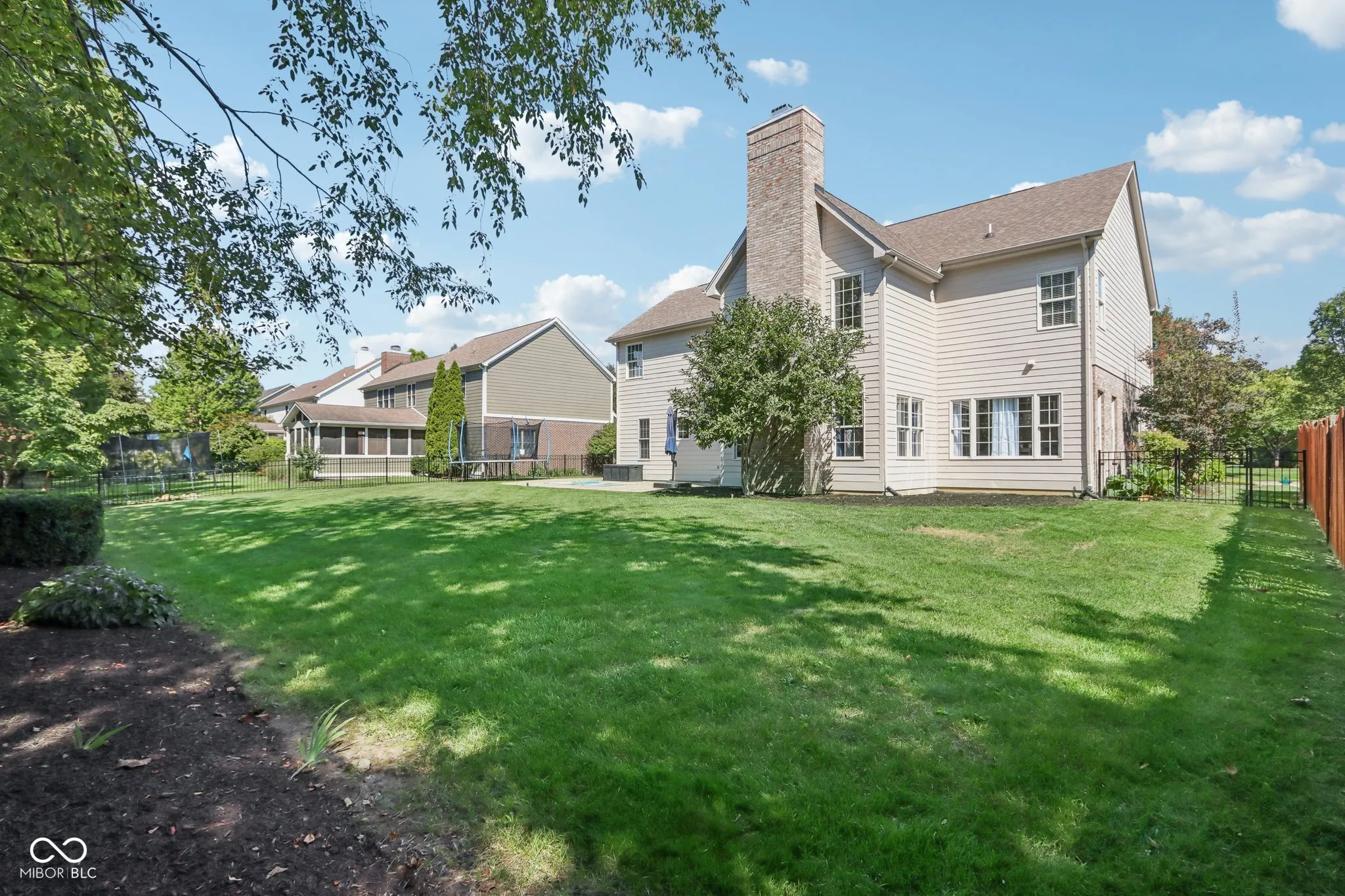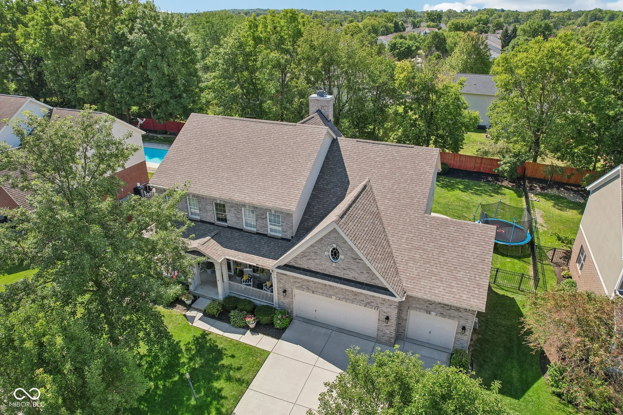 Welcome to this stunningly updated and well maintained home situated on a quiet cul-de-sac lot facing a park like common area in highly sought after Sandstone Woods of Fishers! The quaint covered porch welcomes you to an open concept main level featuring new luxury vinyl plank flooring, a spacious 2-story great room with remote controlled gas fireplace, a main level bedroom and full bath, a home office with French doors and the centerpiece of the home – the fully remodeled kitchen featuring custom cabinets to the ceiling, quartz counters, a center island, coffee bar/wine bar, new stainless steel appliances and TWO pantries! The breakfast nook opens to a large stamped concrete patio, perfect for enjoying your morning coffee or evening cocktail, plus a fully fenced backyard with plenty of space for activities, and even a pool 😉 A large laundry room and a formal dining room put the final touches on this fantastic main level. Upstairs, the primary bedroom suite is a true retreat featuring vaulted ceilings, a garden tub, newer vanities and fixtures, and a massive walk-in closet with an island. You’ll also find three secondary bedrooms with generous closets and a full bath with dual sinks to keep the peace. The finished basement is an entertainer’s dream, complete with a wet bar, full bathroom, and a home theater area with custom built-ins and tray ceiling with rope lighting. The large finished 3 car garage offers ample space and unique storage opportunities. Updates include: New Roof (2020), New Carpet (2020), New LVP (2023), New Tankless water heater (2023), New Anderson sliding door (2024). Located in the highly regarded Hamilton Southeastern (HSE) Schools district, the neighborhood offers quick access to popular Brooks School Park, Geist Reservoir, Gray Eagle Golf Course and many shopping, dining and recreation spots.