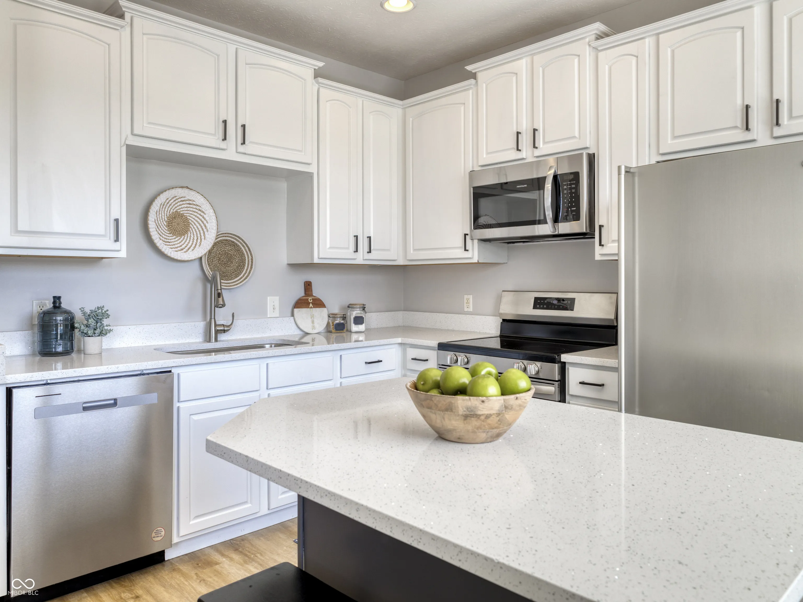 WELCOME HOME to this fully remodeled property in the beautiful community of Townhomes at Hazel Dell! This home has 3 levels and over 1800 square feet of living space. Pride of ownership shines as it has been recently renovated ands updated TOP TO BOTTOM! Upgrades include ALL new paint, flooring throughout, lighting, kitchen cabinets, countertops, stainless steel appliances! Gas water heater just replaced in 2022. The ground floor level includes a 2 car attached garage with keyless entry, laundry room, a spacious bedroom and a full bath…perfect for so many unique living situations! The main level includes a large family room with a cozy gas fireplace that opens up to the very functional dining room. The kitchen includes a center island and brand new EVERYTHING!! Primary bedroom and second bedroom occupy the upper level…each having it’s own private full bath! Ample storage and closets throughout makes organization a breeze! This gorgeous townhome has it ALL and offers maintenance free living at it’s finest. Directly across the street from Founders Park and minutes from all things Carmel has to offer! This one will NOT last long so book your private viewing today!!
