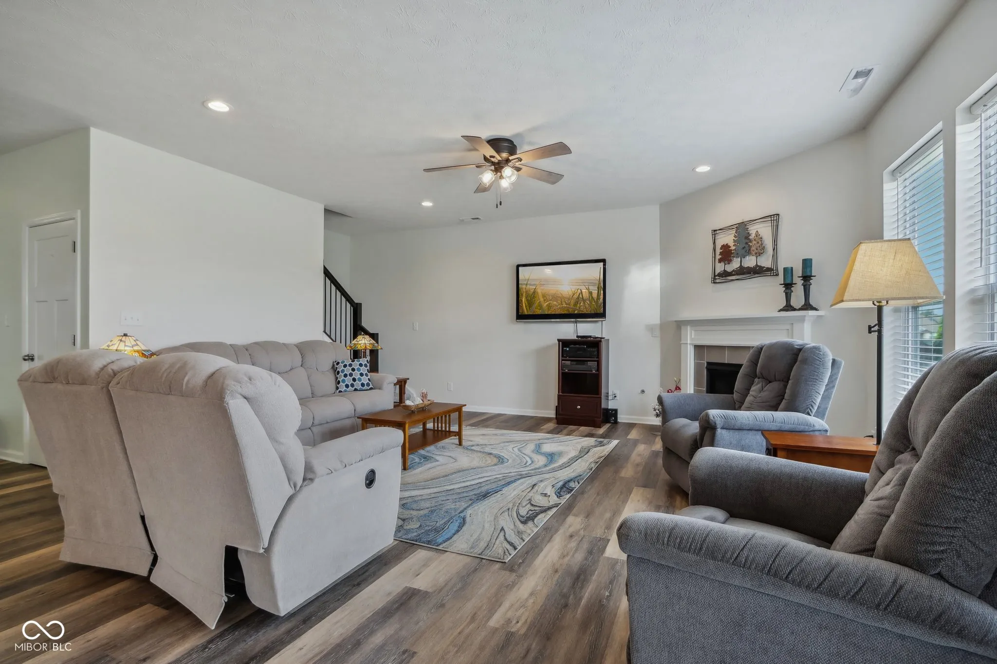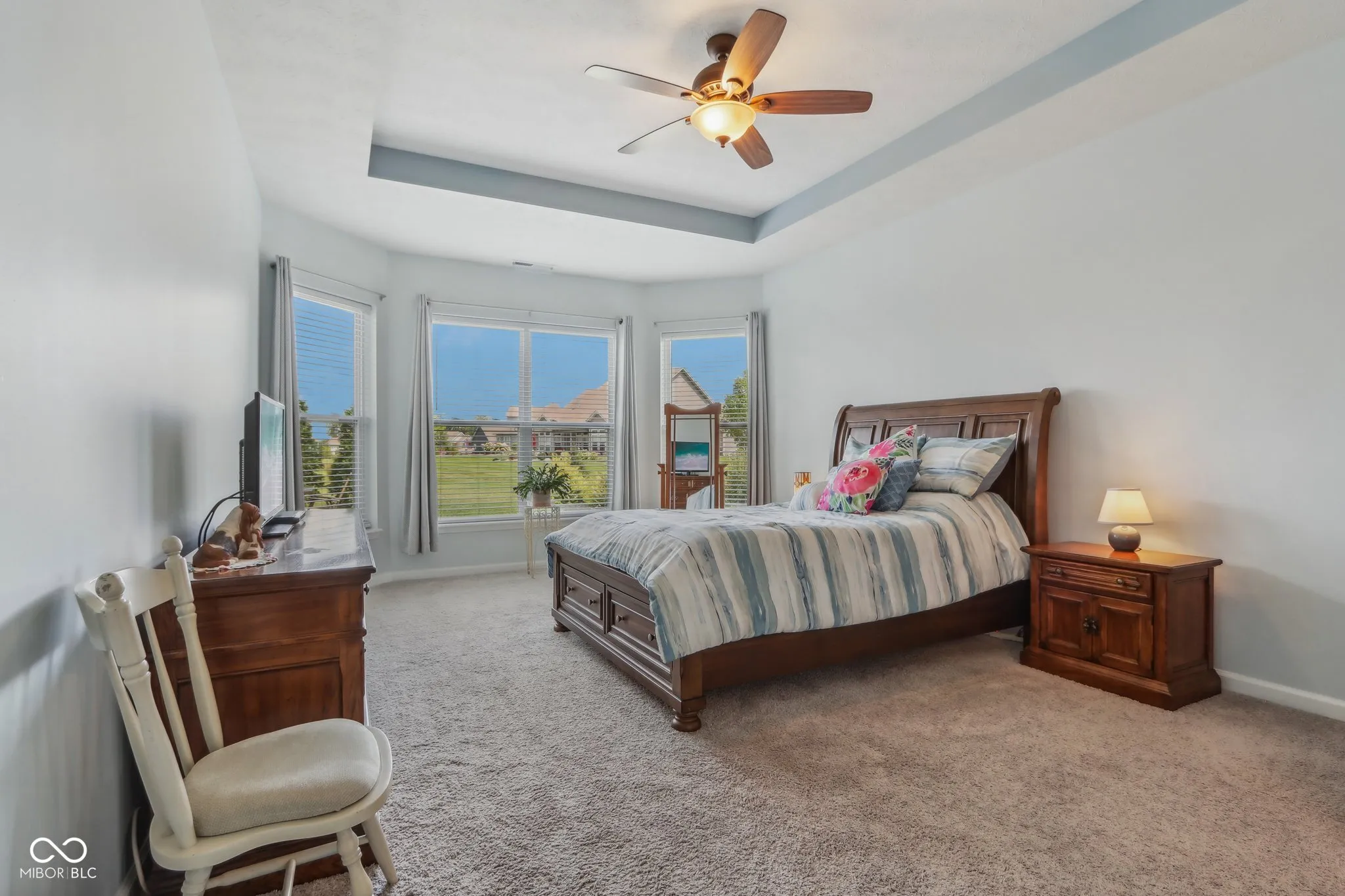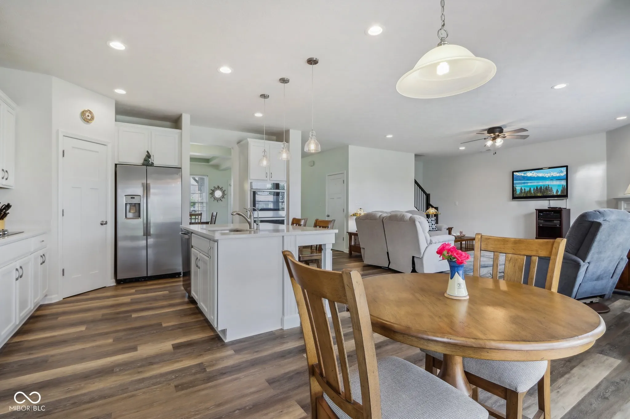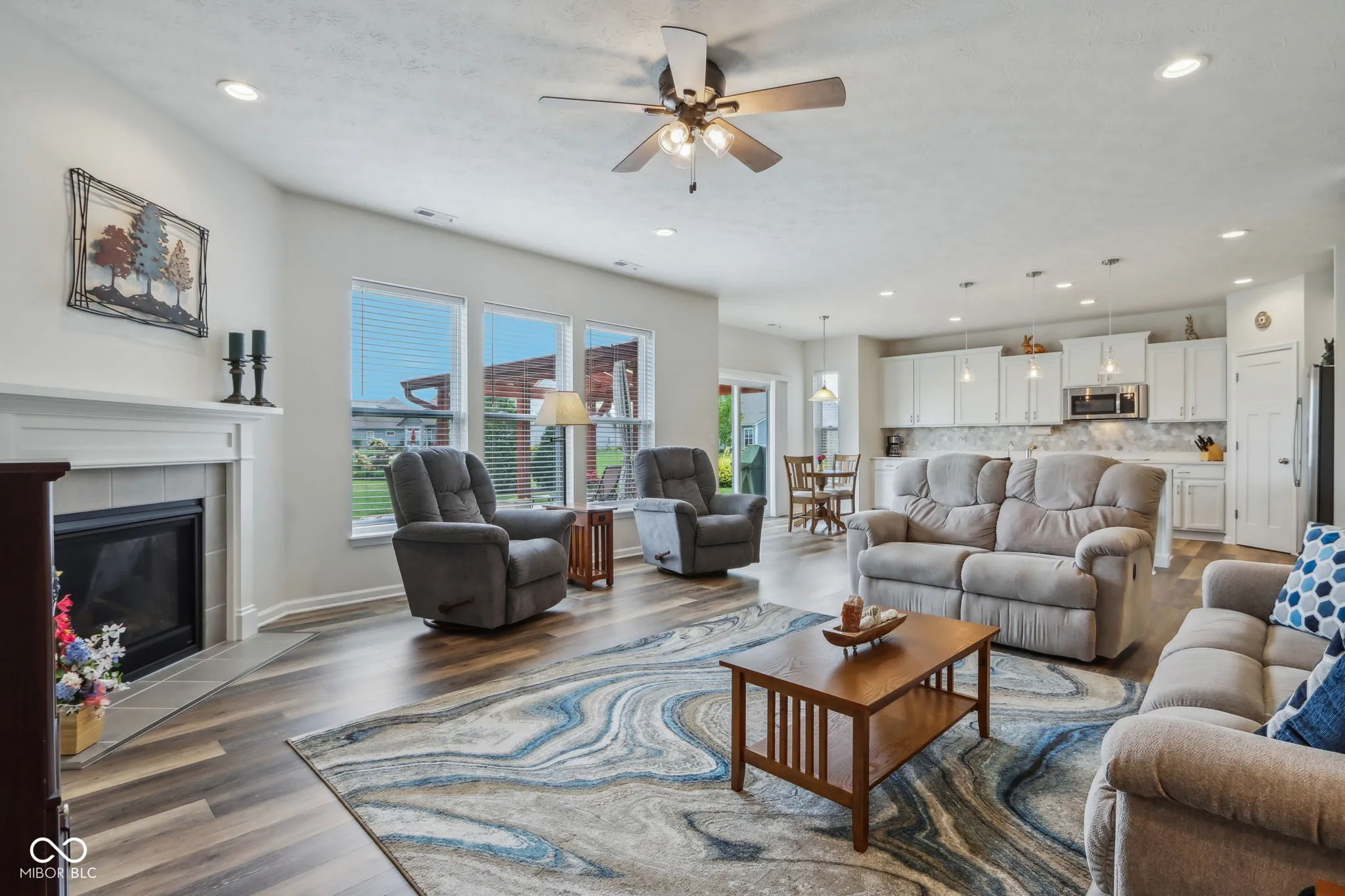 Welcome home! Beautiful 3BR/2 BA Ranch home featuring 9′ ceilings w/ luxury vinyl plank flooring and a generous loft in popular Saddle Club. Tastefully landscaped yard, brick/stone elevation, and covered front porch provide excellent curb appeal. Spacious Split bedroom floor plan including a roomy office or formal dining room w/ tray ceiling. Open concept Gourmet Kitchen displays quartz Countertops, multiple cabinets w/ pull out drawers, marble tile backsplash, Stainless Steel appliances, Double ovens, huge breakfast bar/island, walk in pantry & a bump out breakfast nook. Sun soaked Living room w/ large windows showing gorgeous views of the Lake and flower gardens offers a gas fireplace for cooler nights. Large Owners suite w/ tray ceiling & bay window includes Primary bath spotlighting a Walk in tiled shower, dbl sinks, and walk in closet. Huge Upper level loft/multi purpose room could be utilized as a 4th BR. Custom designed covered stamped patio highlights superb lake views. Finished insulated garage w/ bump out and a daylight window have space for extra toys. New irrigation system added 2023. Enjoy the community pool or playground, plus rest easier as Lawn care & snow removal are provided by the HOA. Highly rated Center Grove schools. Close to restaurants, shopping & Kephart Park(splash pad, pickleball courts & playground).