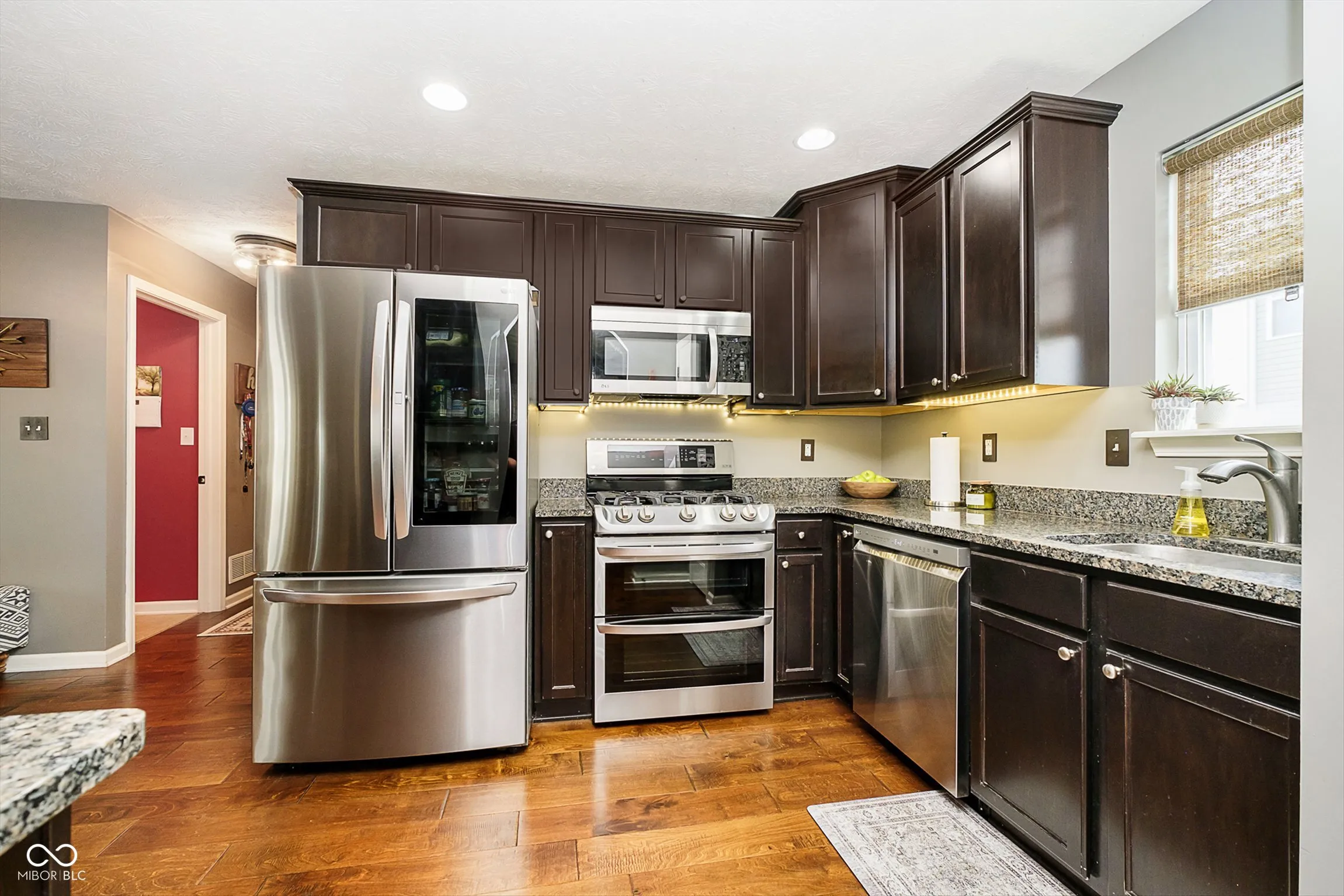This is it! The one you have been waiting for with a FULL FINISHED BASEMENT with a full bath (heated tile floors!), egress window and storage room. This craftsman style home sits on a corner lot with a side load garage in poplar Huntzinger Farms and has so much to offer. Hand scraped hardwood floors run throughout the open concept Great Room, Dining and Kitchen with stylish, updated stainless appliances (gas stove & double oven!) and granite countertops. Updated fixtures throughout. Upstairs you will find the primary bedroom with beautiful built-in bookshelves, craftsman style doors, full bath, walk-in closet and updated fixtures. Additional bedrooms are good size with nice closet space and fresh carpet. Enjoy the front porch and paver patio and gas firepit in back!