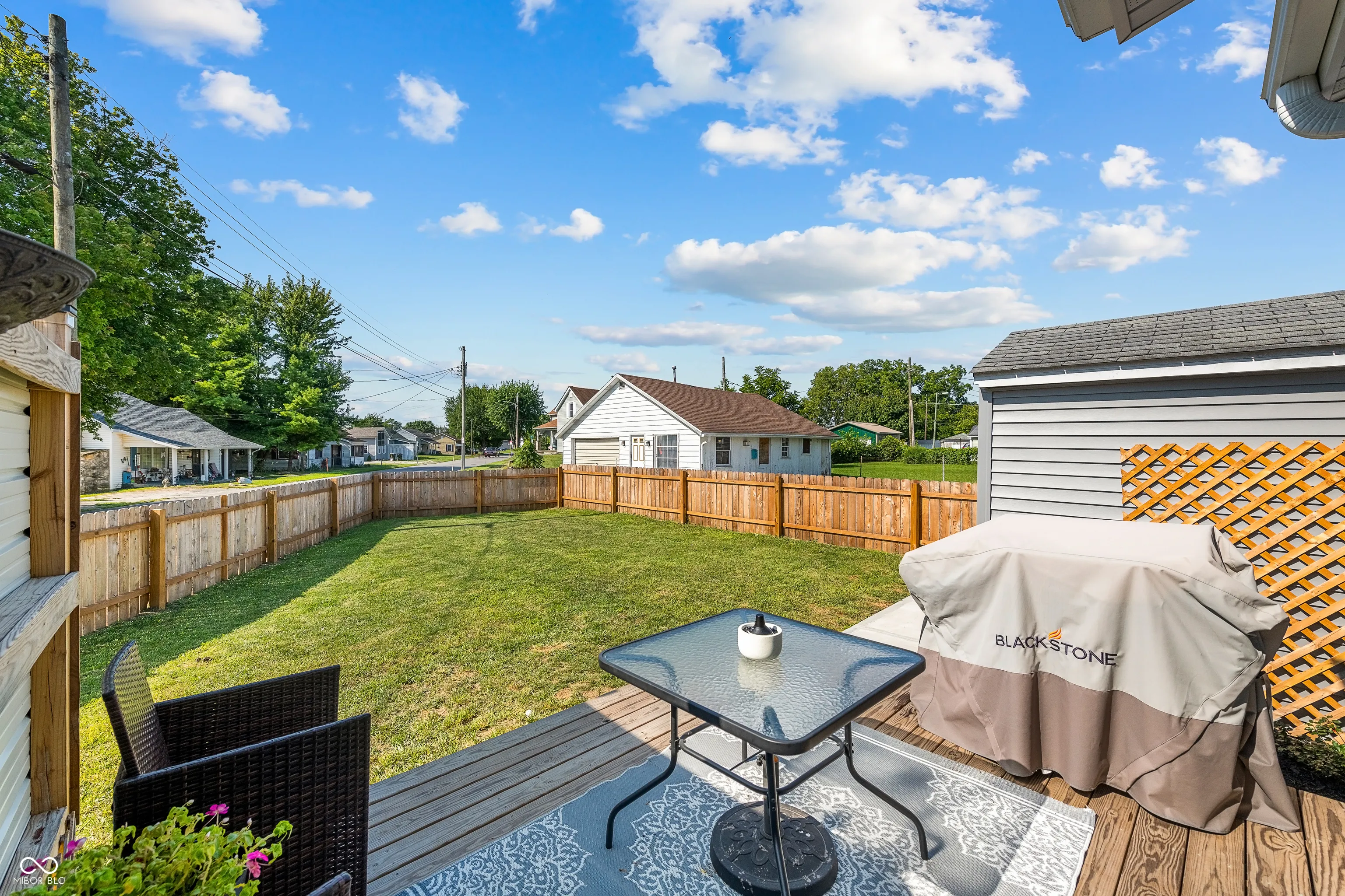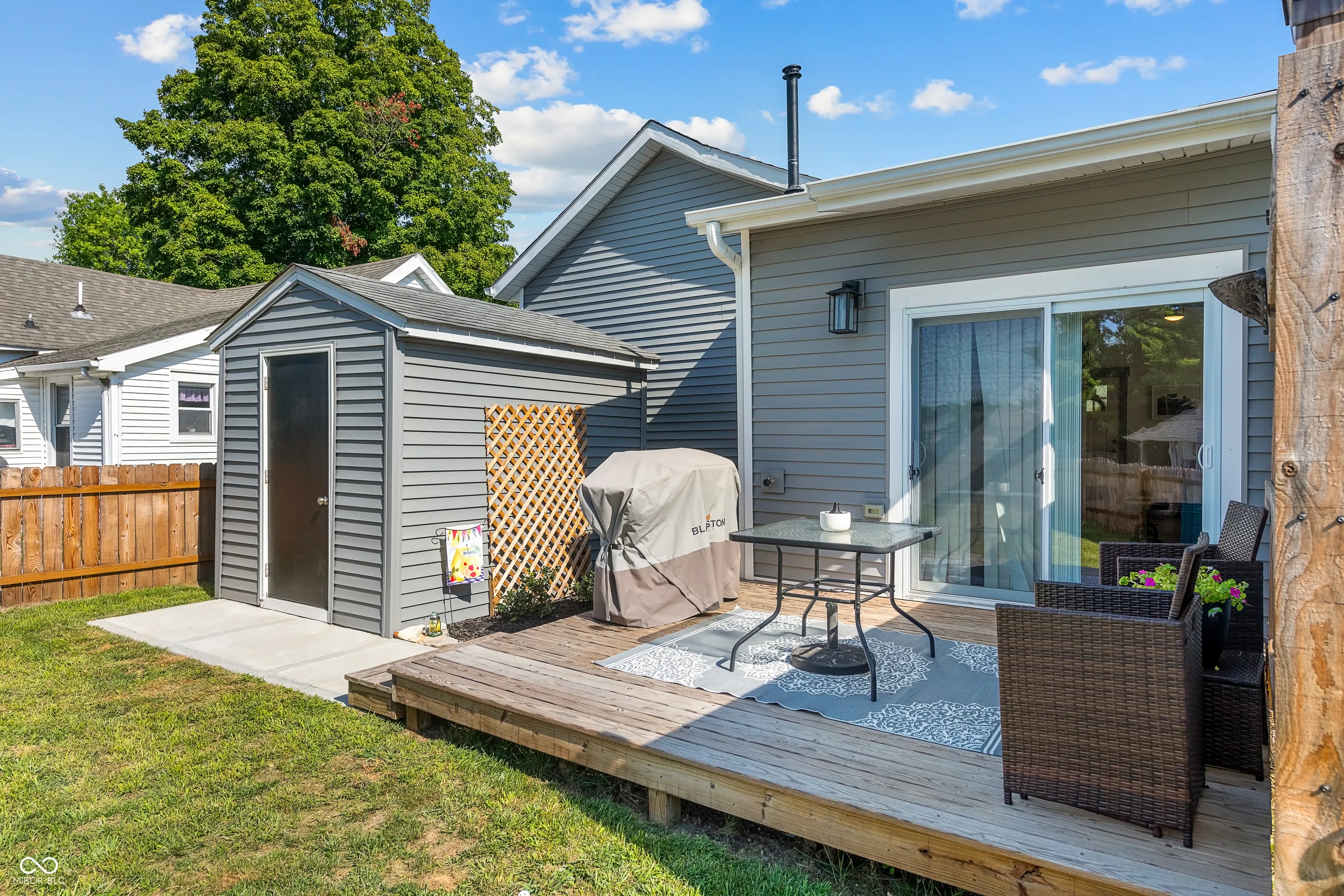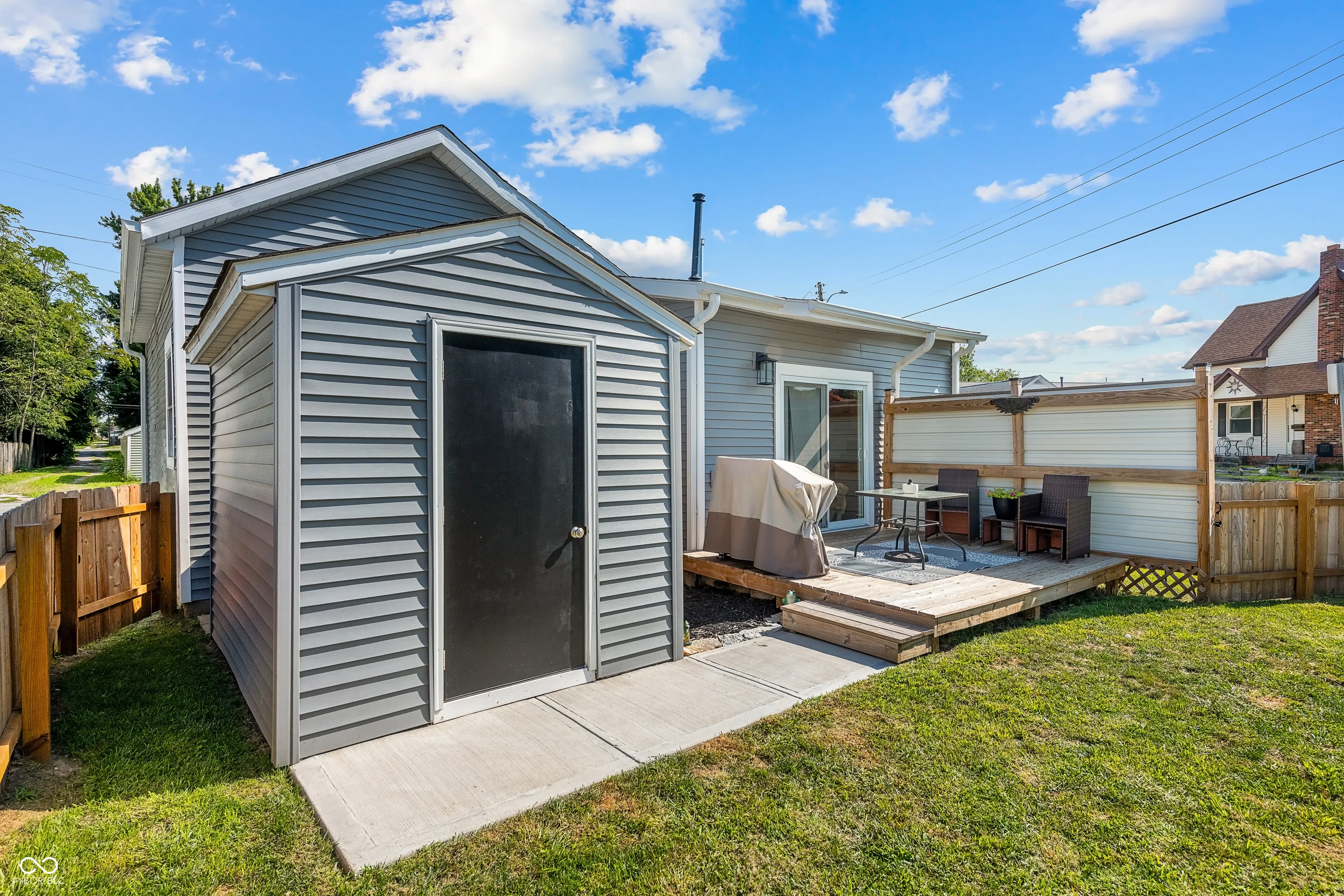 Adorable and nicely updated easily describes this 2 bedroom, 1 1/2 bath home. The curb appeal will absolutely make you want to stop and check this gem out. As you walk up to the large covered front porch you will notice the charm with the beautiful porch swing and inviting front door but that is just the beginning because when you walk in you will fall in love with the open concept living area and the updates will be noticed all over the home. The kitchen has a nicely laid out floor plan that includes a center island and high-end appliances. Off the kitchen you will find a pantry for extra storage and patio doors leading out to a nice deck and new fully fenced yard as well as a storage shed. In addition to many updates that took place in 2023 this home also had a new furnace installed last year and central A/C added this year. This home is move-in ready and is waiting for you!