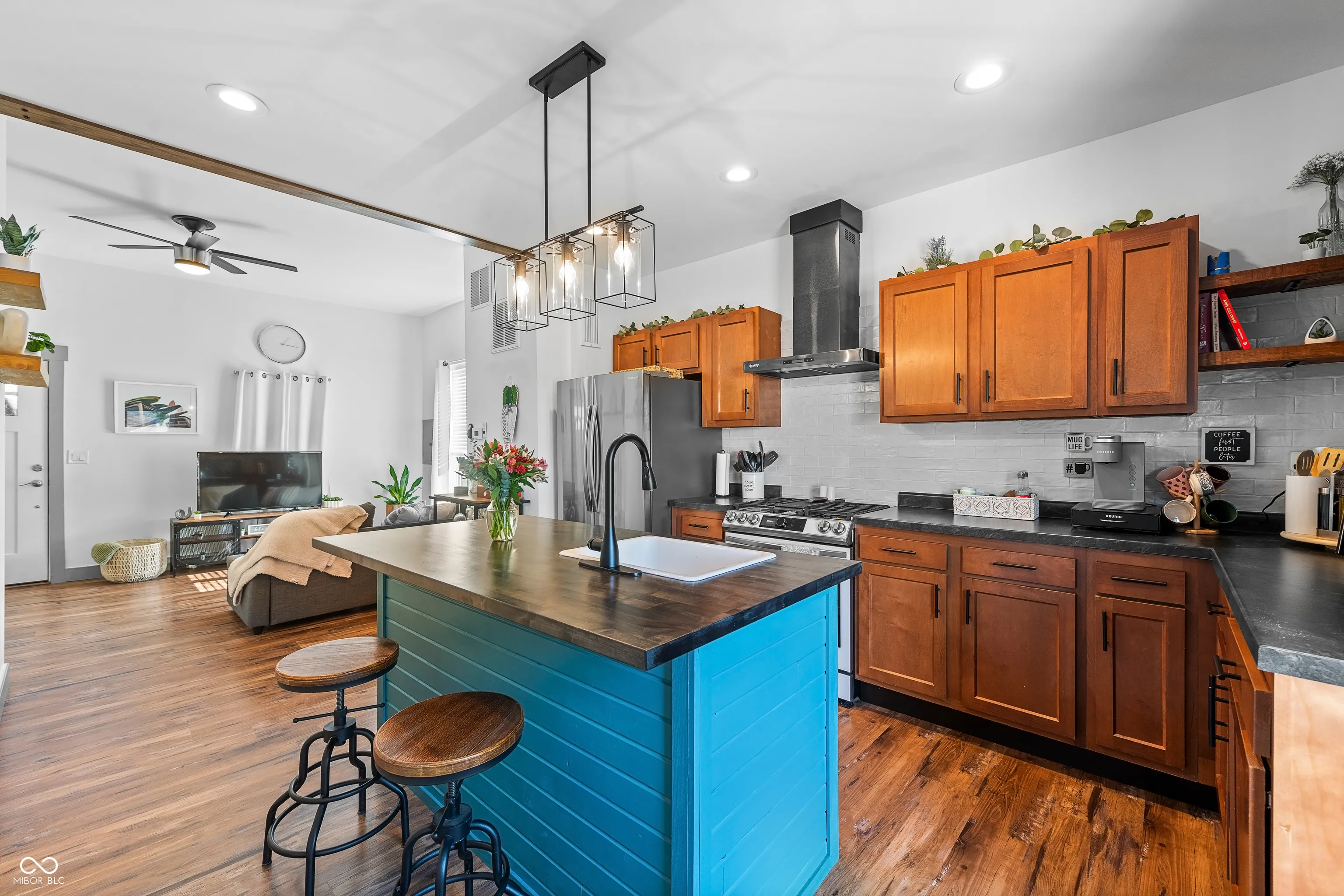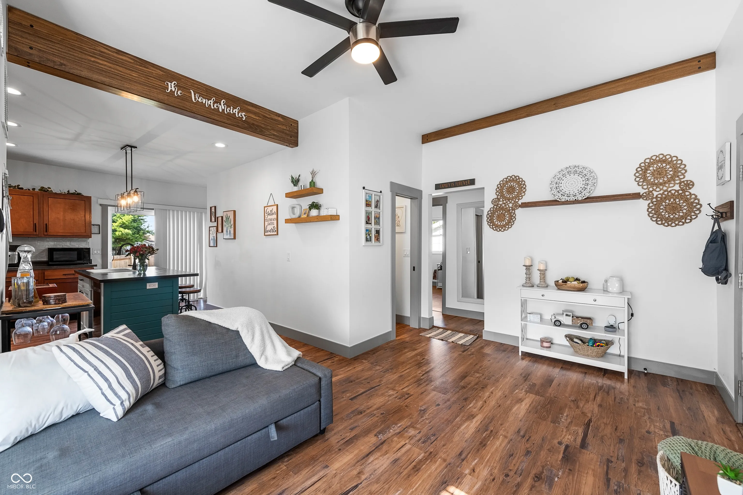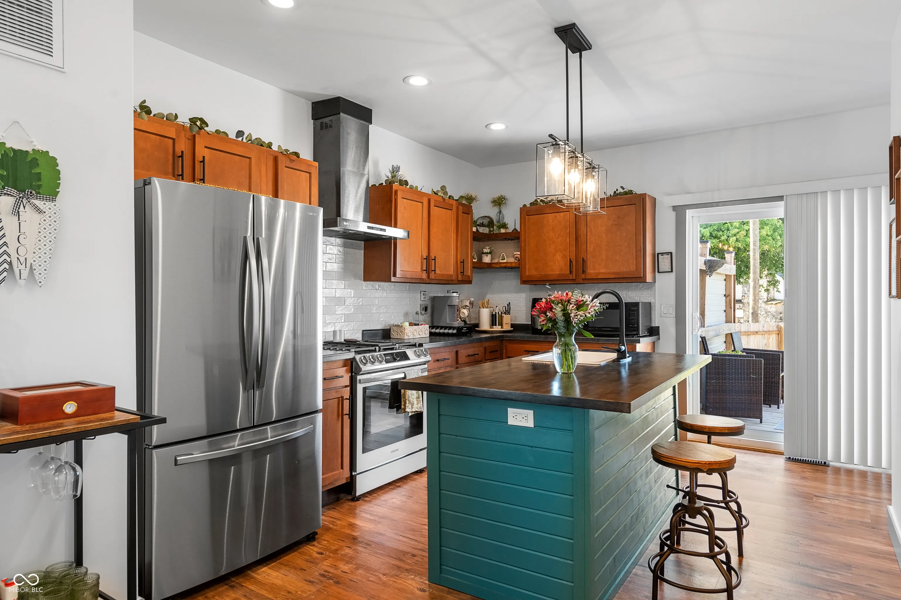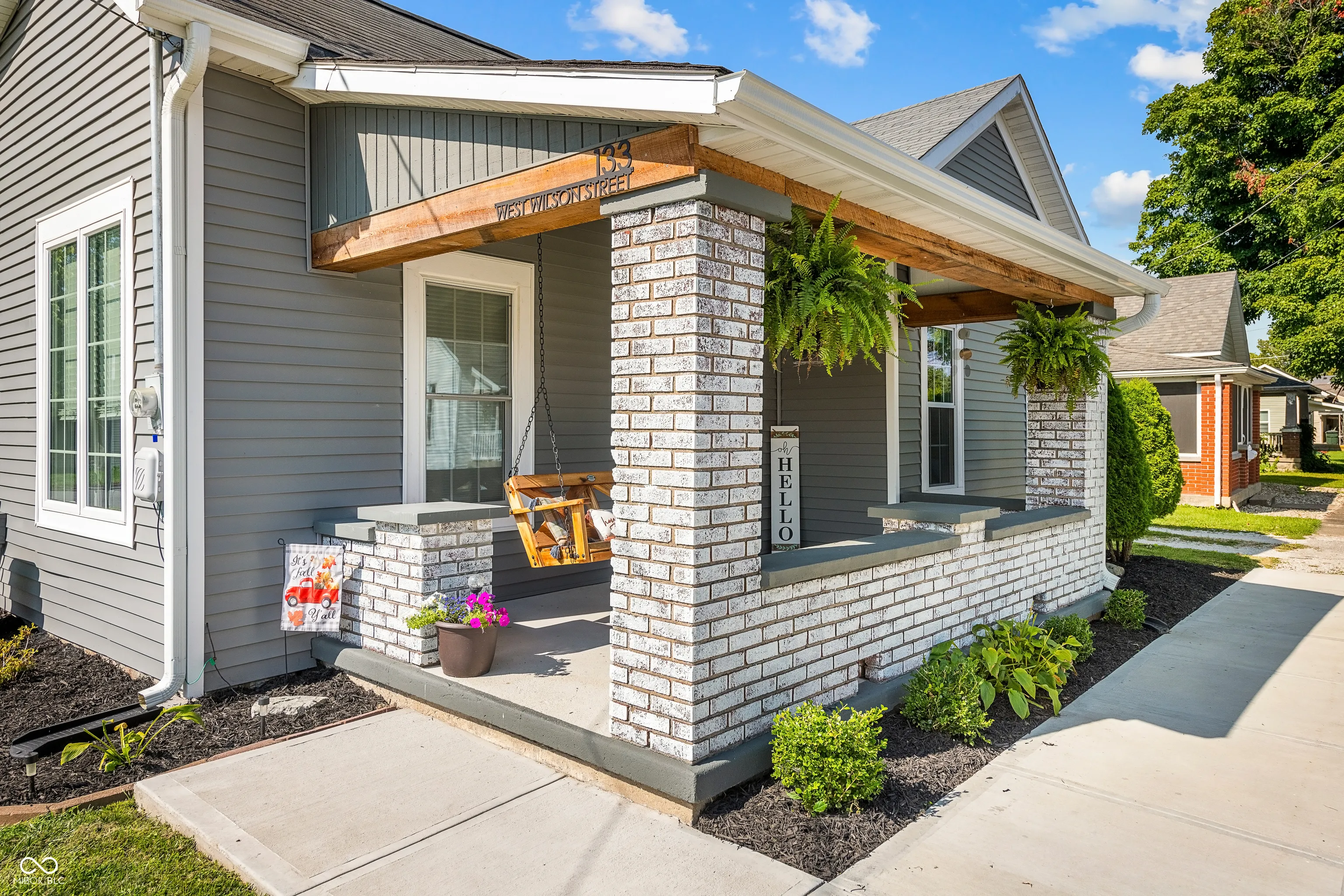 Adorable and nicely updated easily describes this 2 bedroom, 1 1/2 bath home. The curb appeal will absolutely make you want to stop and check this gem out. As you walk up to the large covered front porch you will notice the charm with the beautiful porch swing and inviting front door but that is just the beginning because when you walk in you will fall in love with the open concept living area and the updates will be noticed all over the home. The kitchen has a nicely laid out floor plan that includes a center island and high-end appliances. Off the kitchen you will find a pantry for extra storage and patio doors leading out to a nice deck and new fully fenced yard as well as a storage shed. In addition to many updates that took place in 2023 this home also had a new furnace installed last year and central A/C added this year. This home is move-in ready and is waiting for you!
