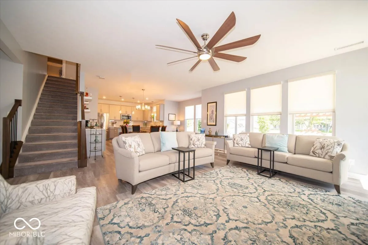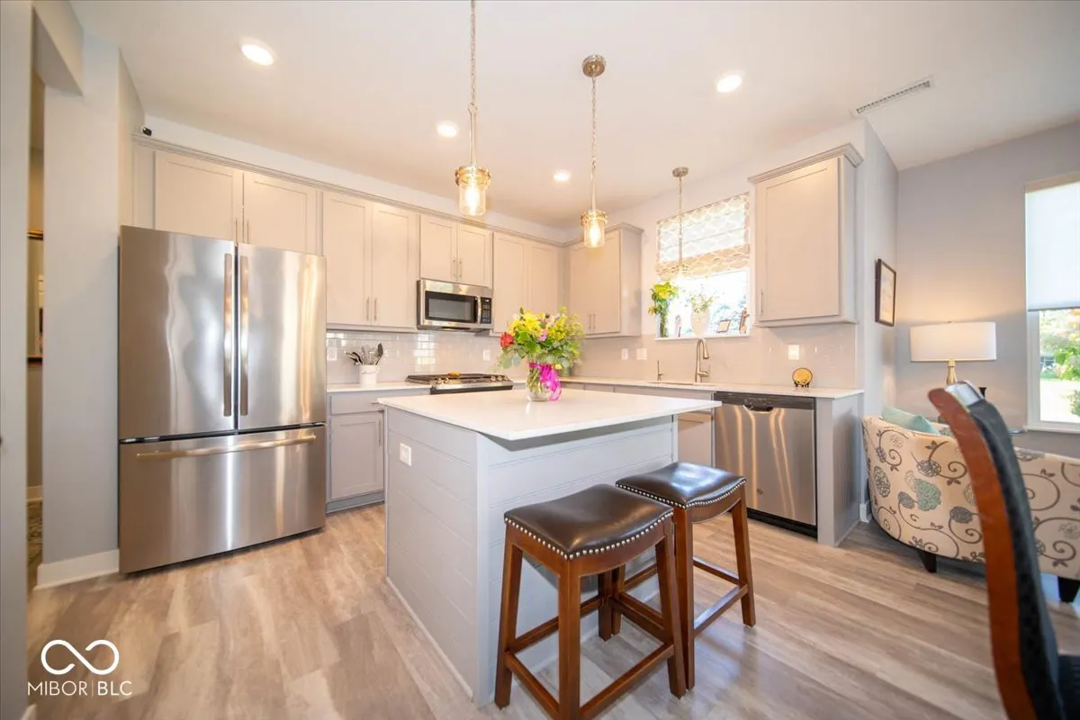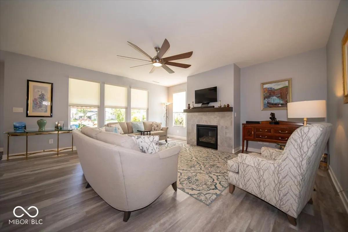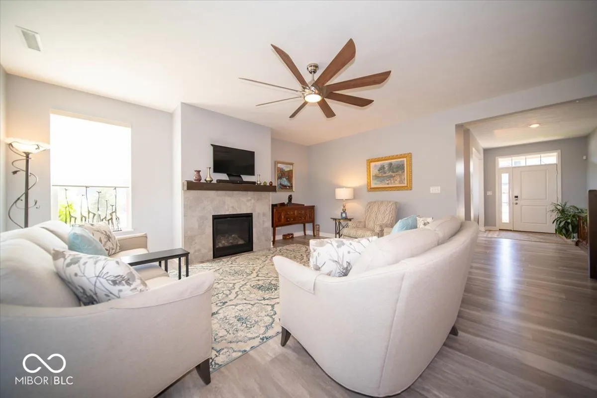 Discover a gem in Morningside, where luxury meets comfort in this exquisite five-bedroom, three-and-a-half-bathroom residence. As you step through the front door, a grand foyer welcomes you, setting the tone for the elegance that awaits. The heart of this home is undoubtedly the gourmet kitchen, a culinary enthusiast’s dream. It boasts a gas stove, gleaming stainless steel appliances, a stylish backsplash, and a center island that complements it. The grey cabinets add a touch of timeless charm, while the adjacent breakfast area, complete with a coffee bar and wine fridge, is perfect for casual dining. The great room, with its gas fireplace and remote-controlled blinds, is bathed in natural light, creating an inviting atmosphere for family gatherings. An office provides a quiet space for work or study, while a conveniently located drop station near the garage helps keep things organized. A fifth bedroom on this level offers an ensuite full bathroom, offering privacy and convenience for guests or family members. Upstairs, the primary bedroom is a true retreat, featuring a spacious walk-in shower, raised vanity with double sinks, and a generous walk-in closet. Three additional bedrooms, each with walk-in closets, share an updated bathroom. A loft area with a ceiling fan offers versatile space for various uses. Outdoor living is just as delightful, with a covered porch, a built-in grill station, and a picturesque concrete patio surrounded by beautiful landscaping-your personal oasis for entertaining or quiet contemplation. A 3-car garage rounds out this incredible offering, ensuring space for storage and vehicles. Don’t forget the sophisticated outdoor lighting! This property’s location is a bonus, with a playground and community pool just next door. Center Grove High School is within easy reach, and nature enthusiasts will appreciate the proximity to Kephart Park. Experience the best of modern suburban living in a home that truly has it all!