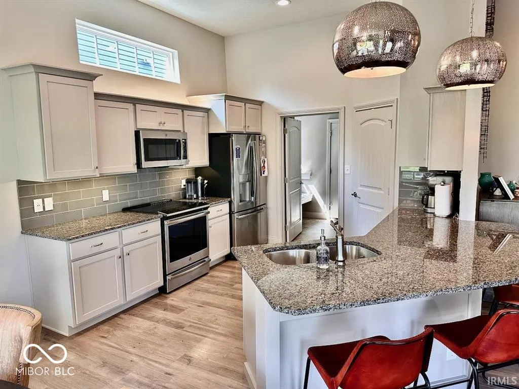 Trademark Construction at Pineview at Riverside! This home is called the Kirkwood model and is a 3 bedroom, 2 bath home with 1948 SF which includes 275 SF located on the 2nd floor. 2-car attached finished garage. Built in 2017, this home has a ton of updates that others don’t! Included are the refrigerator, oven/range, dishwasher, microwave, and granite and solid surface countertops. You’ll love the attached screen porch and outside of this is an expanded concrete patio — perfect for entertaining and grilling. Monthly HOA fees are $200/mo which includes all yard care and snow removal. Just minutes from Ball State and The Hospital, this is located in the popular Westview Elementary District which is now managed by the nationally acclaimed Ball State Teacher’s College. Full building plans and specifications on what is included in this new build are available upon request. Other notables: all freshly painted inside, walk-in closets, twin sink vanity, upgraded hardware and lighting throughout, higher-end appliances, and custom shelf lighting. HOA does allow some fencing and additional landscaping with architectural committee approval.