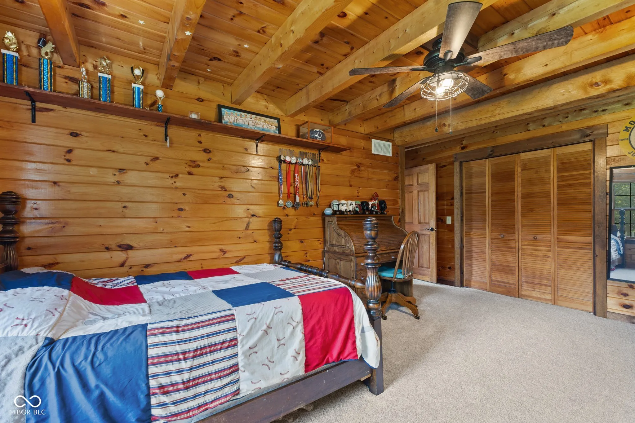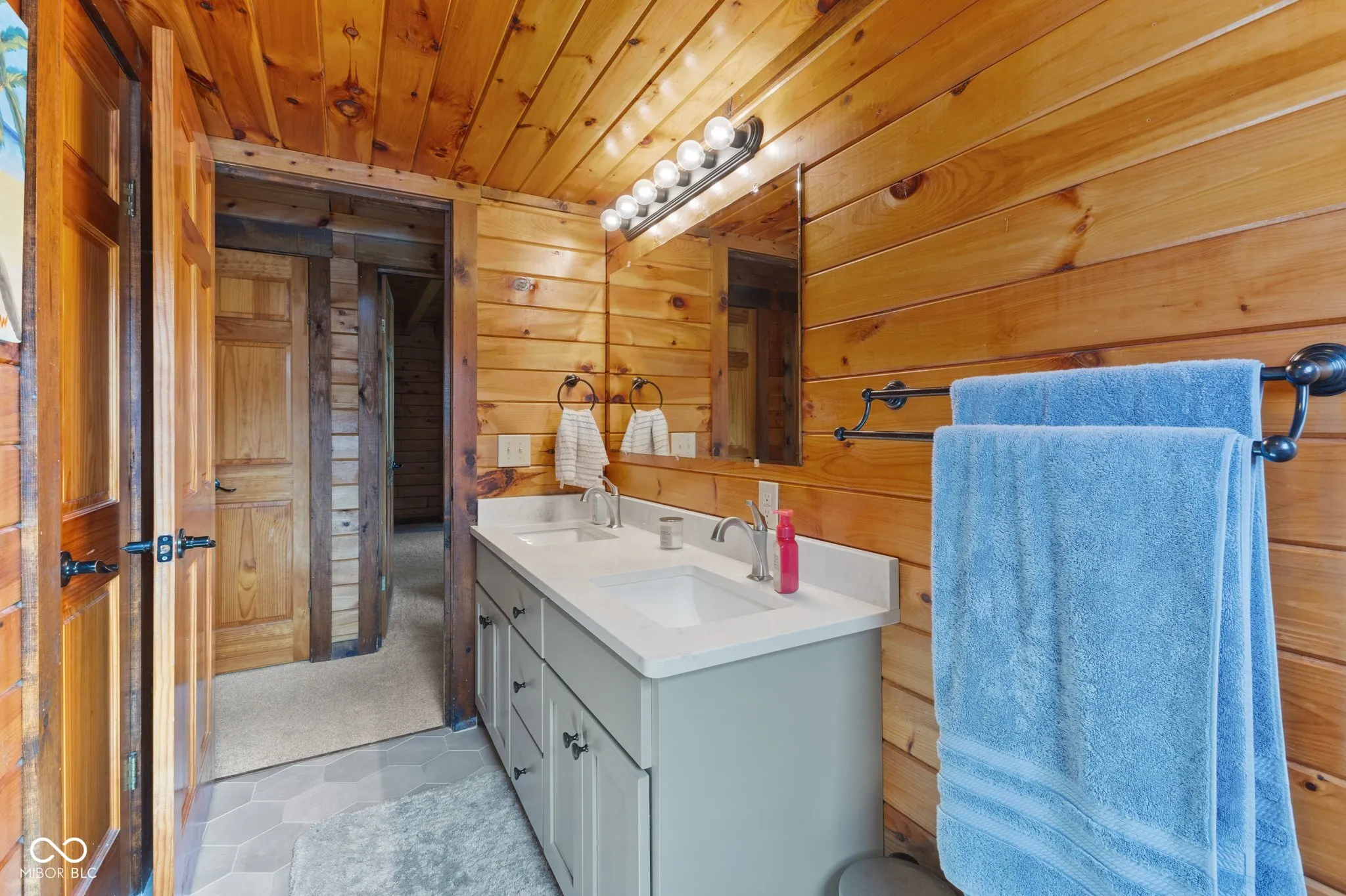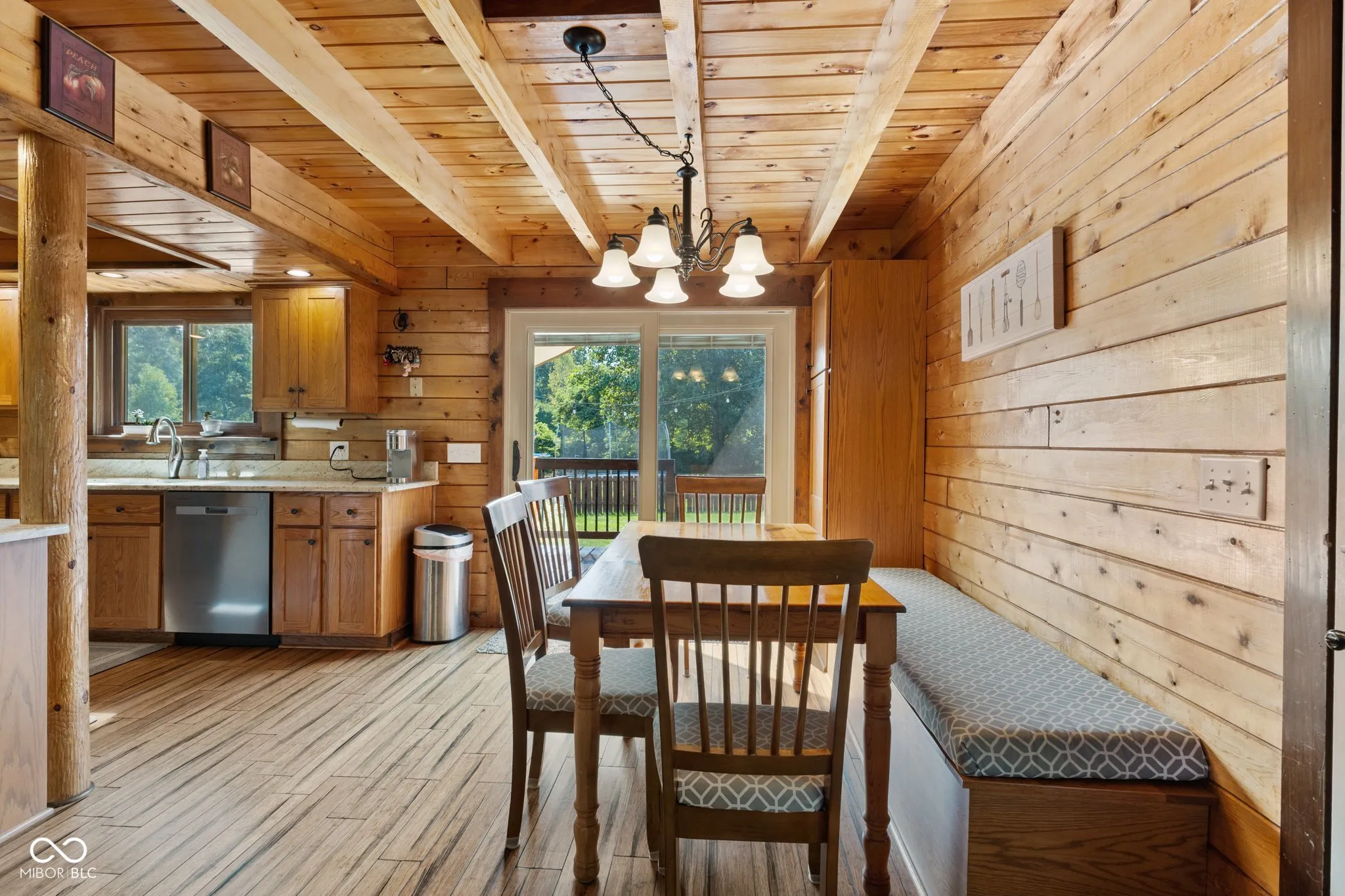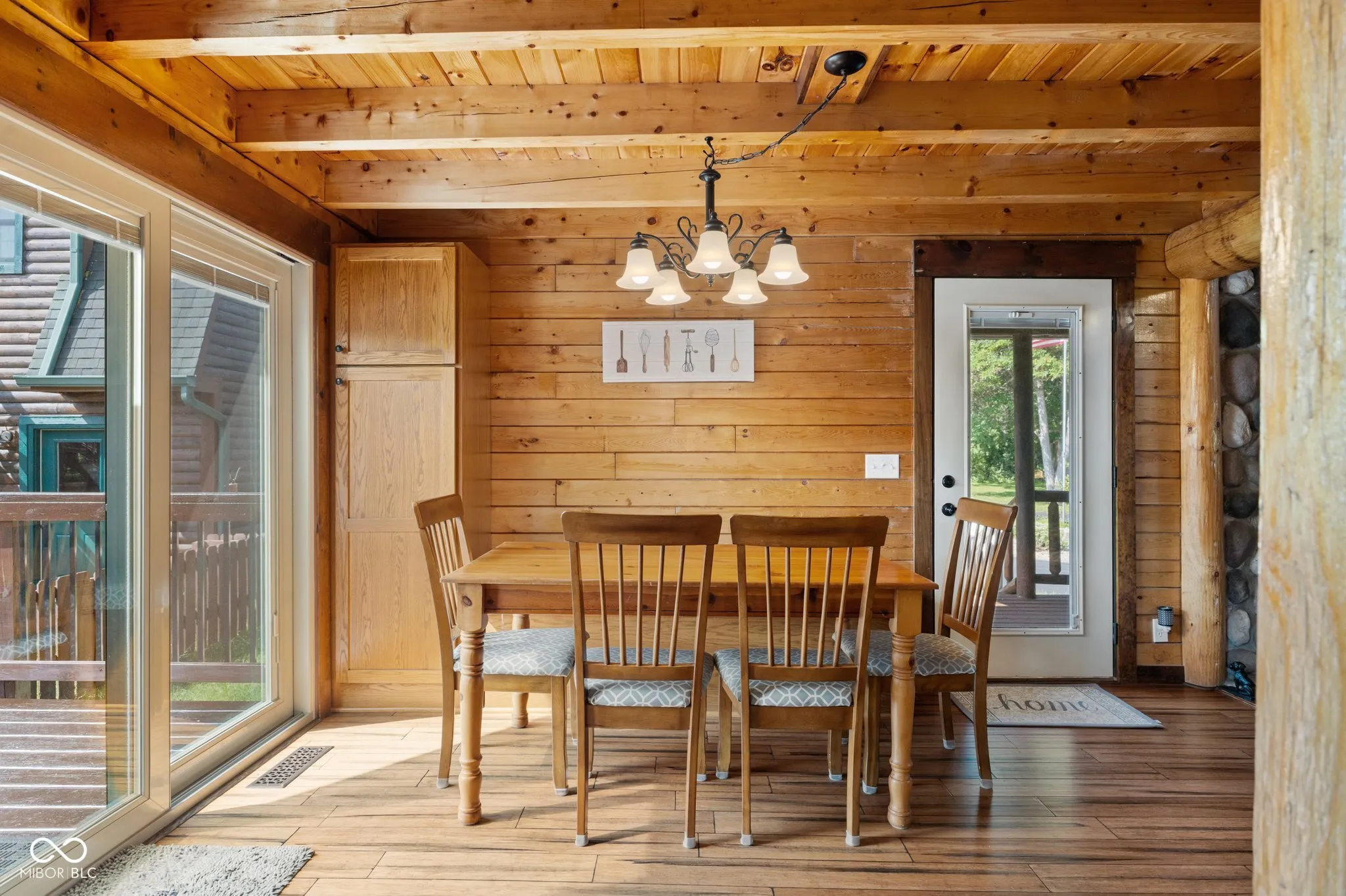 Enjoy country living in this updated modern log cabin with 5 bedrooms and 4.5 bathrooms, all spread out over 3,000 square feet. Set on 5 private acres, the home features a grand two-story living room with high ceilings and a fully finished walk-out basement with a family room, office, and rec room. Updated kitchen with granite counter tops and bamboo flooring that runs through the living room. Relax in the primary bedroom upstairs with its renovated bath, or take advantage of the two additional bedrooms on the main level. The walk-out basement offers easy access to a patio with a hot tub, where the main floor deck leads to an above-ground pool, trampoline and plenty of space, perfect for outdoor fun. There’s also a private in-law suite, over 1,000 sq. ft., above the 3-car detached garage with an open floor plan that includes 1 bedroom, 1.5 bathrooms, full kitchen, dining and living area. In-law suite also includes a deck with stairs leading to the pool and patio. With plenty of recent updates, this home combines comfort and style in a tranquil setting.