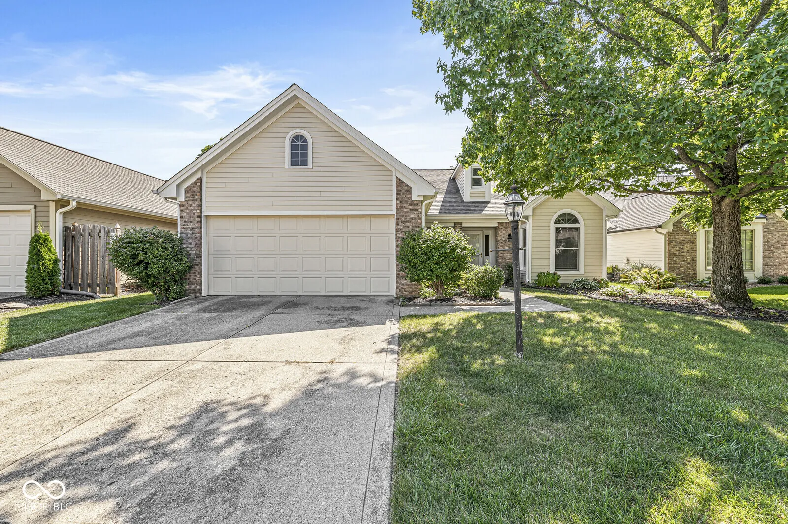 Great 2 bed/ 2 full bath home that provides low maintenance, single level living and MOVE-IN ready. New(2023) Hardie Board for the exterior (21K plus), new (2023), Master bath w walk-in full shower w/ dual shower heads (12K plus, dual vanities. Whole interior painted a neutral color(2023). Home boasts of open floor plan, walk in closets, vaulted ceilings, covered patio overlooking full fenced in backyard (2020) w/ pond and a fountain view. Eat in kitchen area, wood burning fireplace, separate laundry room, finished 2 car garage w large peg board. All appliances included, roof (2019), water heater (2019). Close proximity to Geist Reservoir and Ft. Harrison State Park.