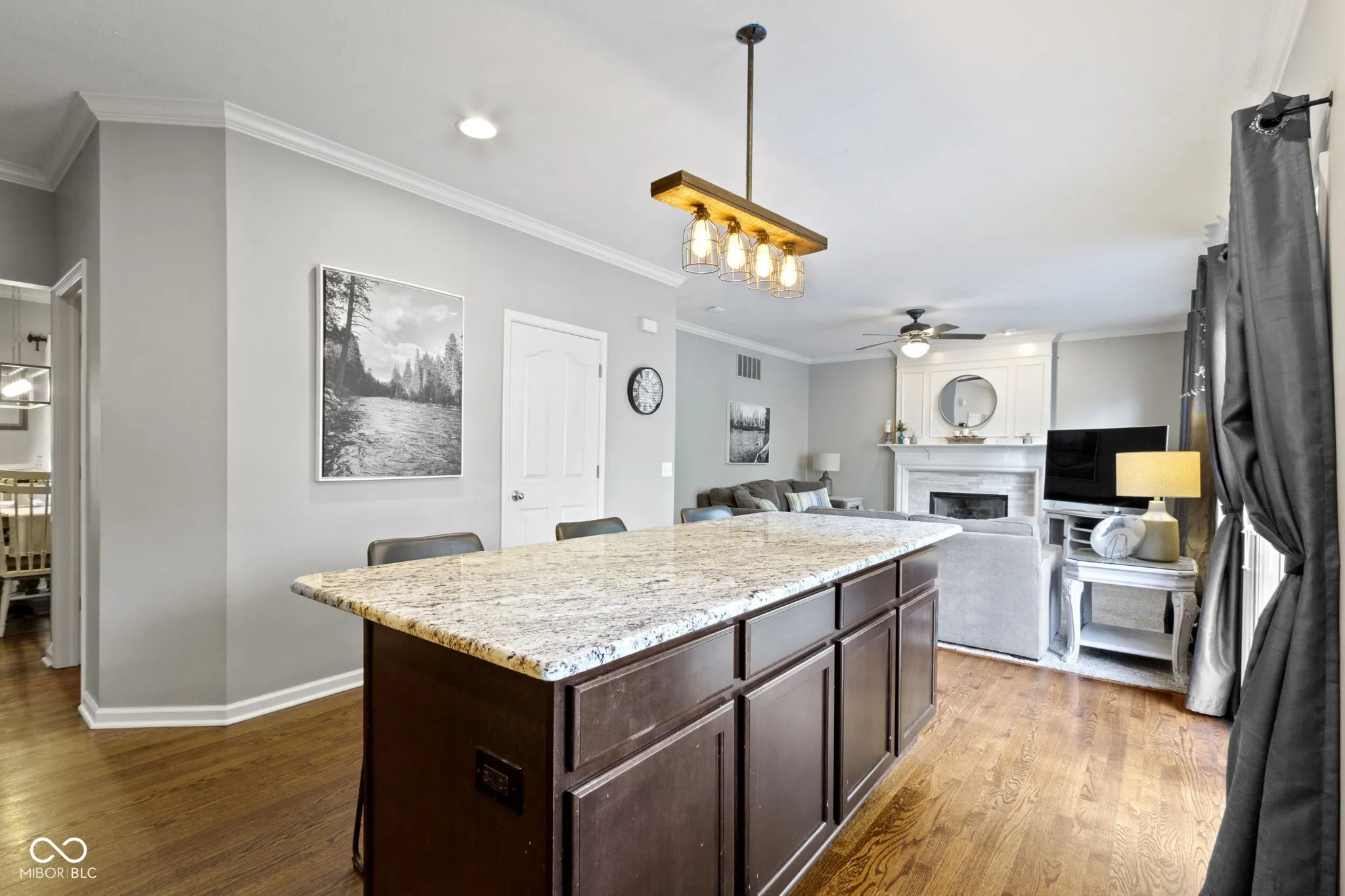 Stunning 4-bedroom, 3.5-bath Pulte-built home where custom details creating an upscale living experience. From the moment you step into the grand two-story entrance, you’re greeted by an abundance of natural light and rich hardwood floors that lead you through every thoughtfully designed space. The main level impresses with a split home office and a formal dining room featuring updated lighting and sophisticated window treatments, perfect for both work and family gatherings. The heart of this home lies in the open-concept family room and chef’s kitchen, seamlessly blending style and function. The kitchen offers sleek white cabinetry, high-end smart appliances, and striking stone countertops, while the adjacent family room is centered around a cozy slate tile-framed fireplace. The Primary suite, features a step-down entry into a serene space with vaulted ceilings, a custom shiplap accent wall, and a calming layout. The updated primary bath includes modern finishes, dual vanities, and a large walk-in closet, all enhanced by elegant lighting and a spa-like ambiance. The finished basement is a haven for entertainment, offering endless possibilities for leisure and relaxation. Enjoy a game of pool (table can stay), challenge friends to darts (board can remain), or settle in for movie night at the pre-wired media center. The space also includes a custom cigar lounge and a wine cellar, both equipped with specialized ventilation systems, along with a double drink refrigerator to keep refreshments handy. Outdoor living is equally impressive, with an oversized deck overlooking a fenced backyard designed for both play and relaxation. The deck features an outdoor television, a covered dining area, and ambient lighting-perfect for hosting family dinners, casual gatherings, or simply enjoying a peaceful evening under the stars.This home is a masterclass in custom craftsmanship and attention to detail, offering a unique living experience. Schedule your showing today!