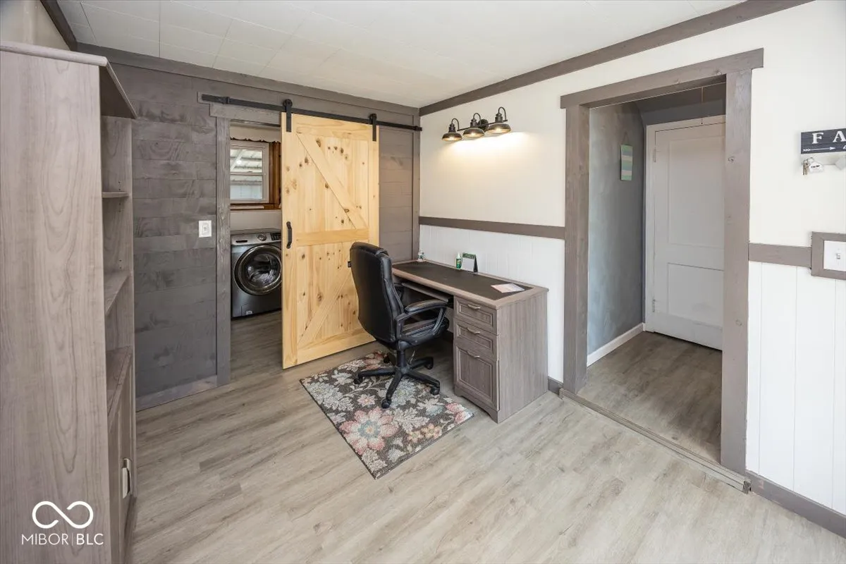 Back on the Market at NO Fault of the property. Buyer’s Financing fell through. Buyer’s loss is your gain!! Welcome to this beautifully updated home, where modern upgrades meet classic charm. As you step inside you’re greeted by a bright and inviting living space with new laminated floors that flow seamlessly throughout the main level. The living room features a stylish shiplap accent wall, and fireplace, creating a warm and welcoming atmosphere. The main floor also boasts a spacious master bedroom, offering comfort and convenience. A second bedroom on this level, also with a shiplap accent wall, is perfect for guests or family. Upstairs, you’ll find a cozy retreat/ bonus room with a third bedroom, complete with new carpeting on the stairs and in the room, providing a private, peaceful space. The heart of the home is the kitchen, thoughtfully updated with new countertops and cabinets, offering both style and functionality. While in a separate area, Practical barn doors cleverly conceal the washer and dryer, maintaining a clean and cohesive look. Need an office area, this home provides an area just for you just off the kitchen. This home is equipped with a brand-new gas furnace (2023) and a newer gas hot water heater, ensuring your comfort year-round. Fresh paint throughout (2023) brightens every room, and updated plumbing adds to the peace of mind that comes with a move-in-ready home. Outside, the versatile garage offers a unique space for relaxation or entertaining-perfect for whatever suits your lifestyle. With three bedrooms, 1.5 baths, a bonus room, an office area, and a spacious laundry room, this home offers plenty of space for living, working, and entertaining. Walking distance to downtown, dining, festivals, schools sporting events or just a hop skip and a drive to the countryside or big city this affordable move in ready home is conveniently located.