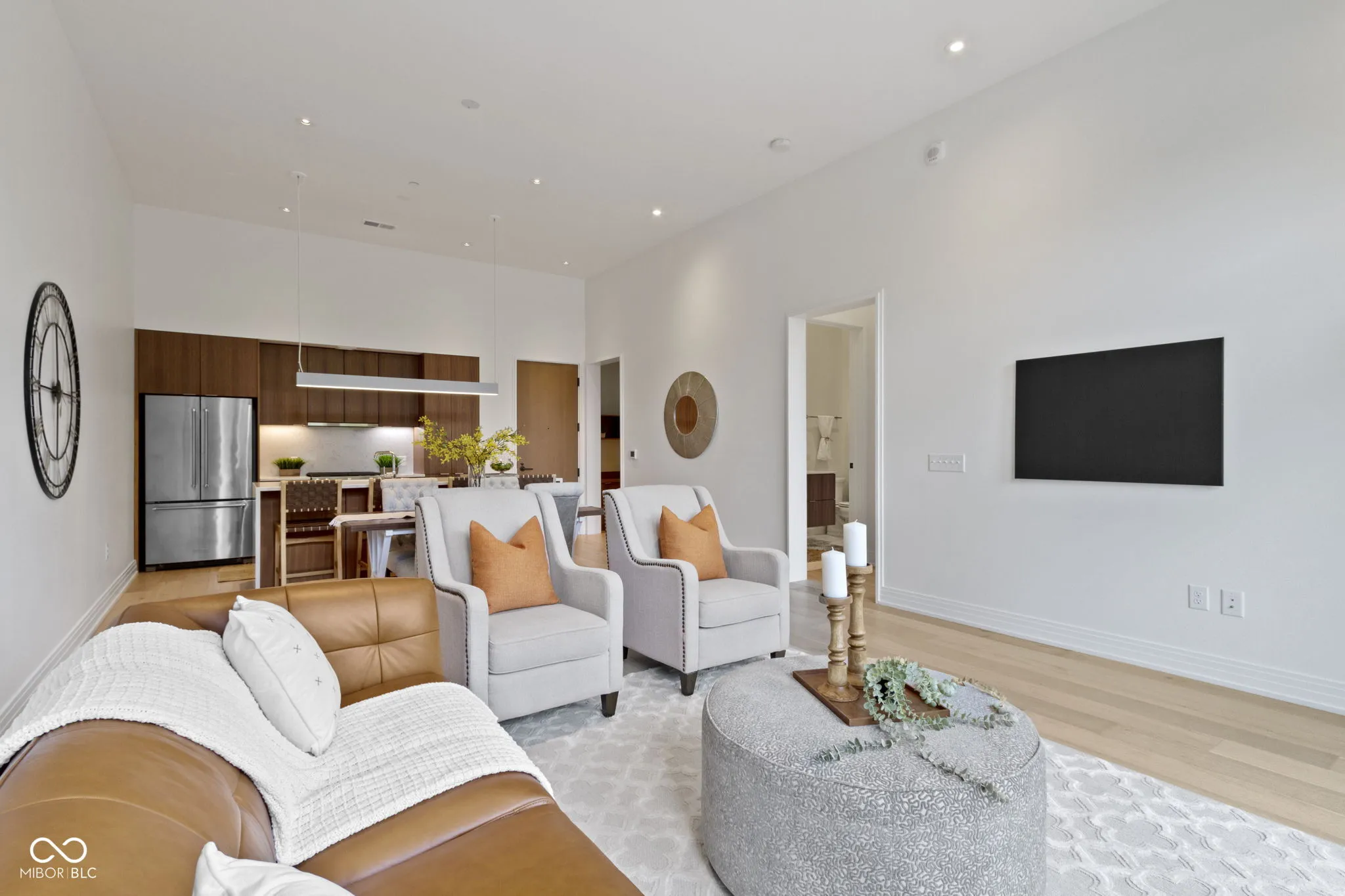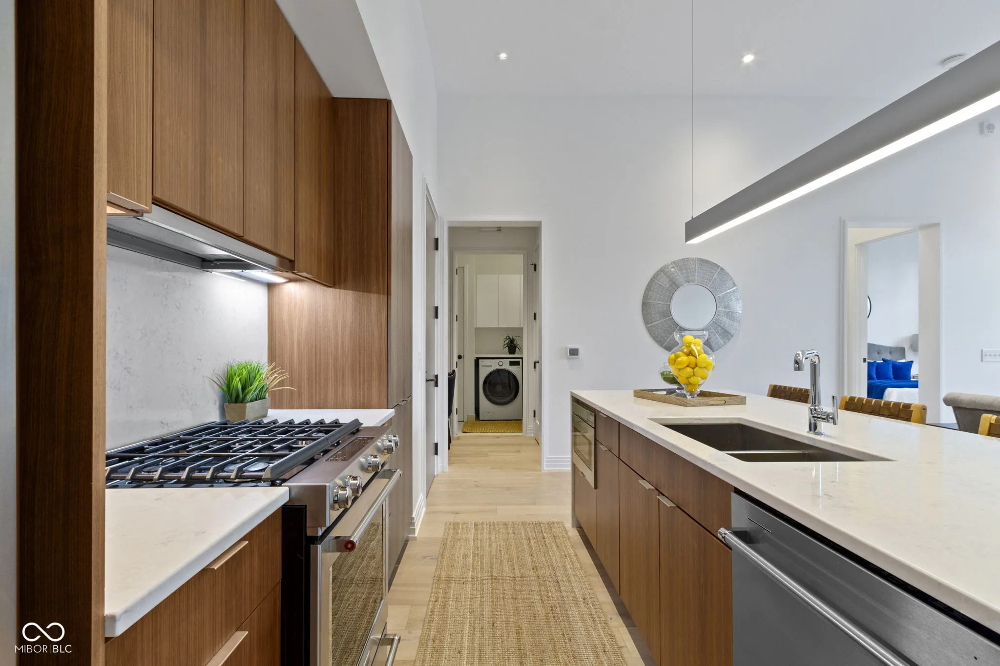 This stunning first-floor luxury condo offers a seamless blend of elegance and modern convenience. The one-bedroom, one-bathroom residence boasts high-end finishes throughout, with an open-concept kitchen that is the centerpiece of the home. The kitchen features custom cabinetry and expert craftsmanship, highlighted by a center island adorned with a Corian quartz waterfall countertop. Equipped with top-of-the-line KitchenAid stainless steel appliances, including a built-in desk area this space is designed for both function and style. Custom Hunter Douglas remote control shades provide privacy and sophistication, while the beautiful oak flooring flows effortlessly through the condo. Residents enjoy exclusive access to a range of luxurious amenities, including a private community library, lounge, and an amenity event space complete with a kitchen. A state-of-the-art fitness center, a serene courtyard, and an outdoor kitchenette with grills and sinks make entertaining a breeze. Relax by the firepit or dine al fresco in the beautifully appointed outdoor dining space. Located just a short stroll from the vibrant Bottleworks District, Mass Ave, and an array of coffee shops, restaurants, and nightlife, this condo offers the perfect balance of urban living and upscale comfort. With close proximity to the Murat Theatre, canal, White River State Park, and museums, Riley and IU/Methodist hospitals as well as Lily and Cummins corporate offices this residence is an exceptional opportunity for those seeking luxury in the heart of the city.