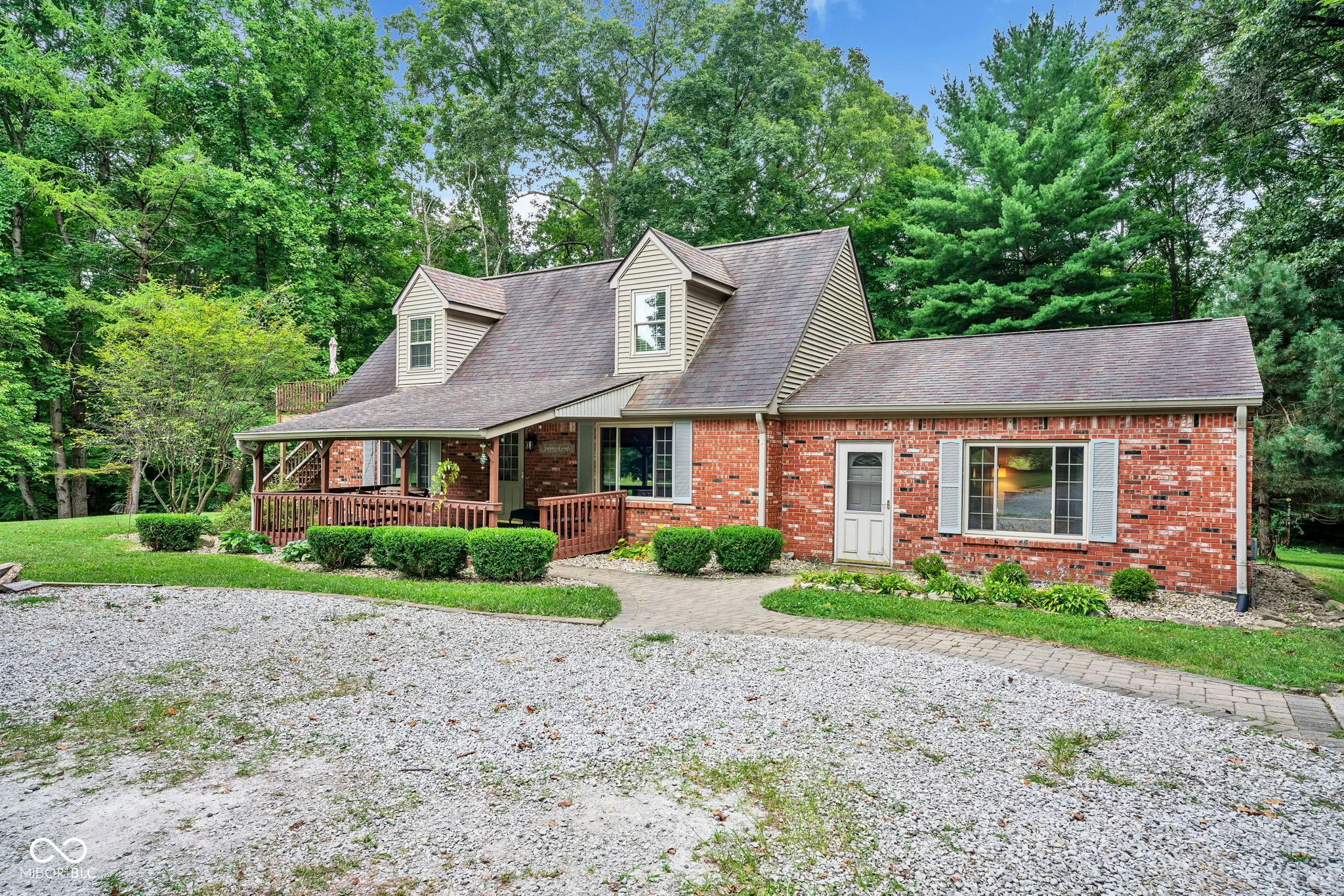 Welcome to tranquil country living in this lovely Cape Cod style home, a perfect blend of classic charm with modern comfort! Set on 3.5 acres, this home features 3 bedrooms, 2 bathrooms, and a 2 car detached garage. The primary suite is a standout feature, offering a respite from the everyday hustle, and includes a walkout deck/balcony that provides serene views of the sizable pond, natural landscape, and wildlife. This home boasts artistic touches throughout, such as new doors, remodeled bathrooms, hardwood floors in dining and living areas, cozy electric fireplace. The modern kitchen features newer appliances that stay, plus a spacious pantry. High speed fiber internet available. Property sits on a dead-end street. This move-in ready treasure is just a short commute to Martinsville, Monrovia, or Mooresville!