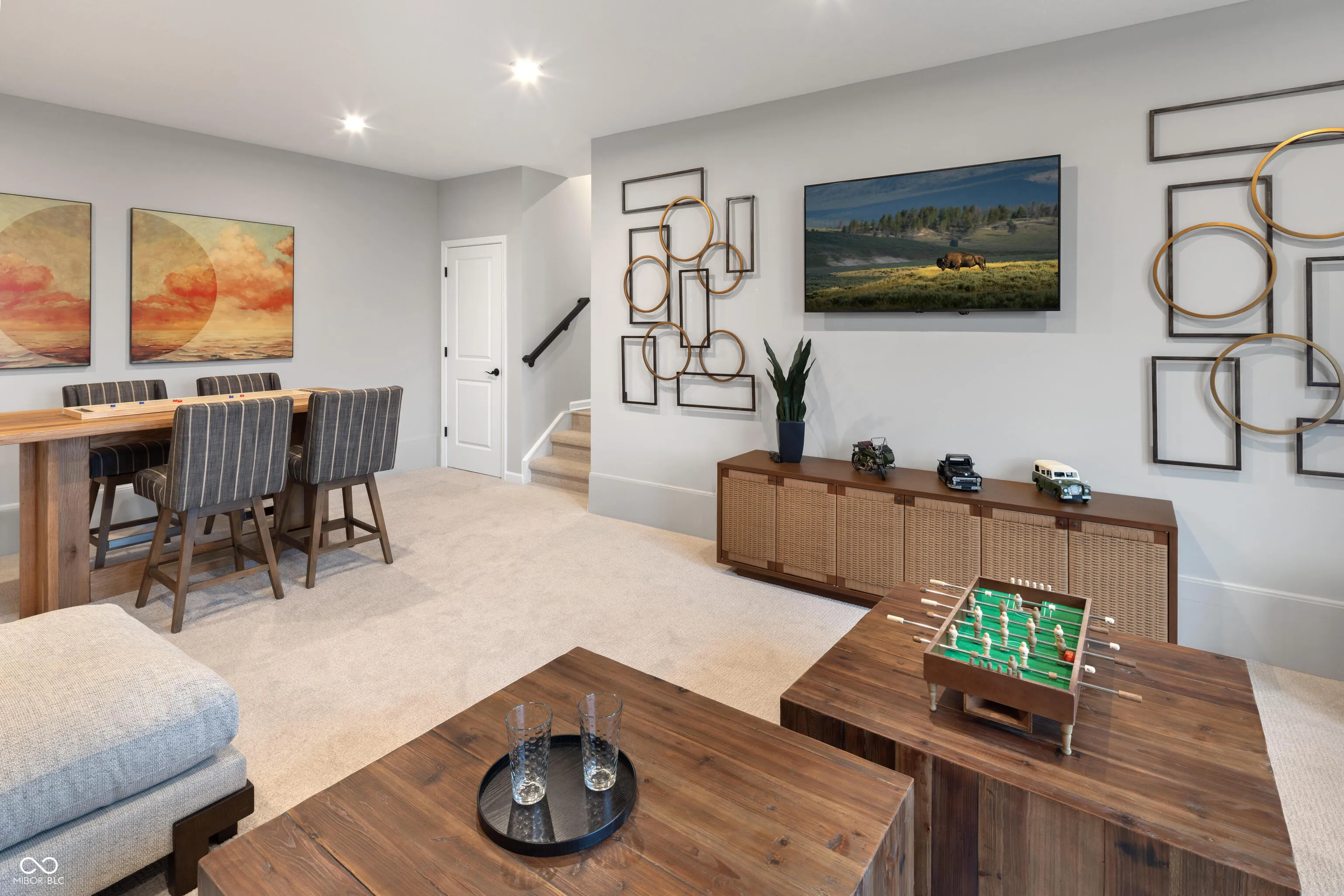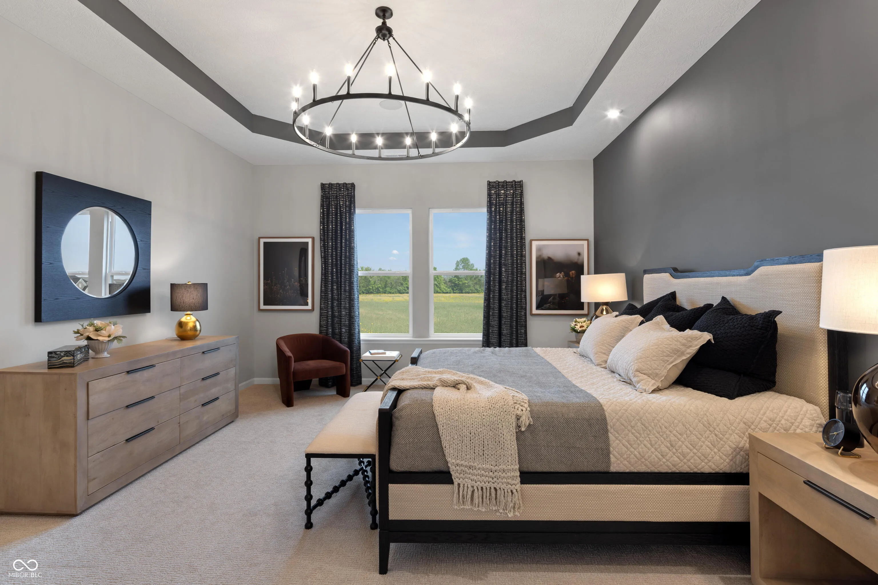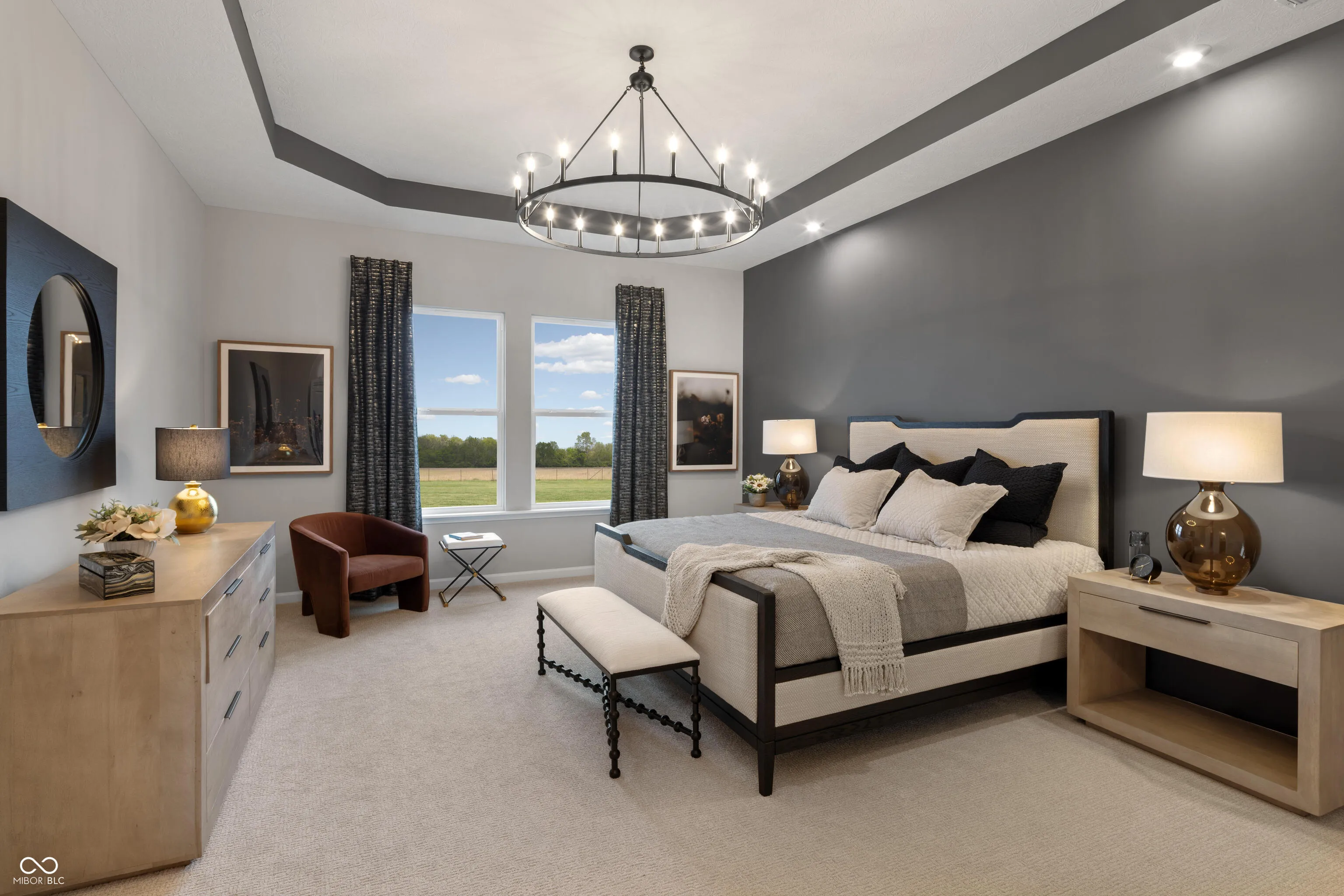 Discover a rare gem in Westfield, Indiana-Our Alden E, a residence that promises to be your ideal abode. This home features a full basement with a finished recreation room boasting 9′ ceilings, in addition to the finished recreation room this floor plan is complemented by a game room adjacent to the family room, perfect for hosting guests. Additional highlights include a gourmet kitchen equipped with double ovens and a gas cooktop, positioning it as the heart of the home. The dining room, with a 4-foot extension, which offers ample space for family gatherings. This floor plan showcases a 2-story living room that bathes the interior in natural light, creating a tranquil sanctuary. This carefully crafted design includes a 4-foot garage side extension, ensuring ample storage. Explore the elegance of the primary suite with stunning tray ceilings, while the first floor features a functional office space complete with enclosed double doors for privacy. The hall bath is equipped with dual vanities and an en-suite attached to bedroom 2. Visit in person to fully appreciate the beauty and functionality of this remarkable property. Photos shown are of the model home and actual selection may vary.