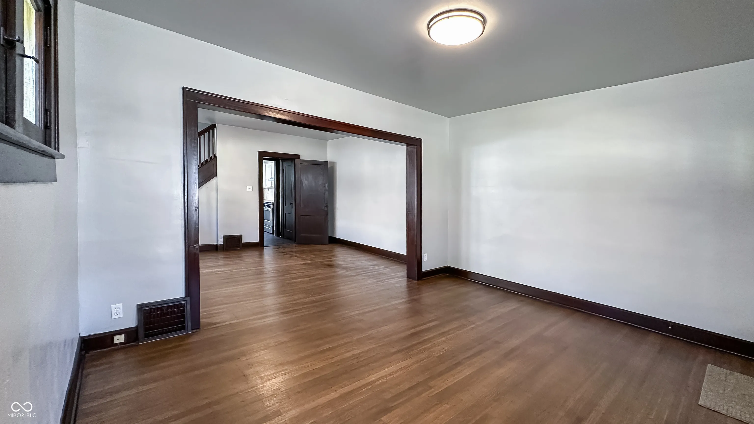 Make this beautiful brick (non-smoking) duplex your next place to rest your head! Original hardwood floors have been refinished, beautiful original woodwork, hardware and features! Very spacious with a living room, dining room and eat-in kitchen as well as an enclosed back porch and covered front porch! Upstairs find 3 well proportioned bedrooms and an updated full bathroom. Fenced in back yard and one-car garage with door opener for easy off-street parking. Also, plenty of on-street parking in the front. House sits between Michigan and New York. Both of these streets are getting revamped currently to be two-way streets with divided bike lanes. They are also both on the bus line. Just a hop, skip and a jump away from the bike trails, all Irvington has to offer, bus routes, interstate access, shopping and dining. NO smoking inside this home. Too much love and work have gone into restoring this beautiful home. Appliances included: Gas Oven/Stove, Refrigerator, Oven Vent/Fan, Washer & Dryer, Dehumidifier. Includes a full basement with daylight windows.